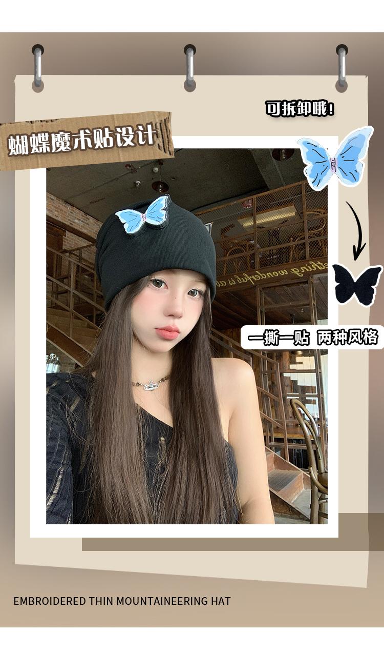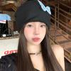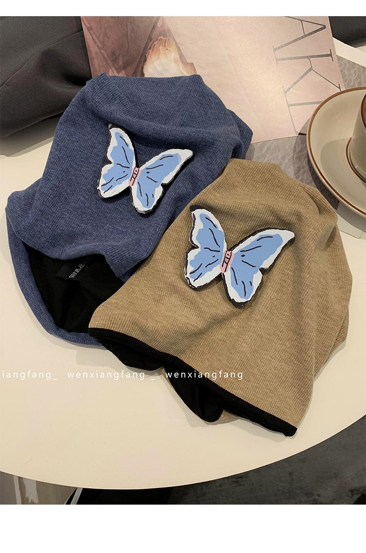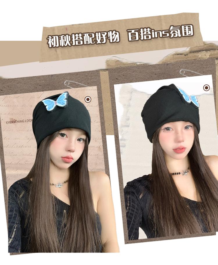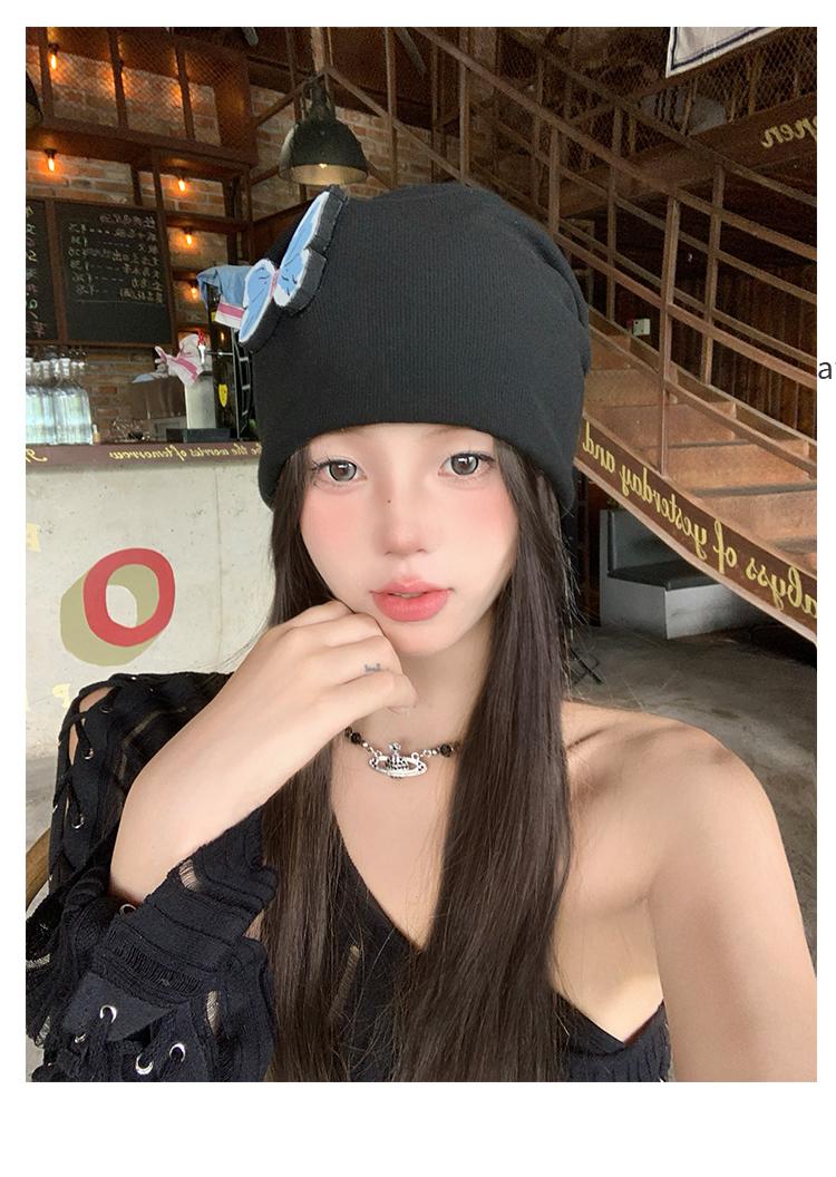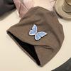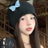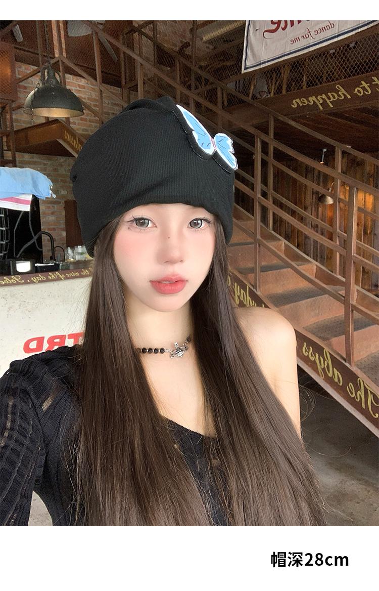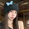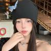 Gorro Frío de Mariposa Tridimensional Estilo Coreano para Mujer Otoño e Invierno Negro Gorro de Montón Combinable Muestra la Cara Pequeña Sombrero de Bolsa Cabeza Grande Wai Sombrero