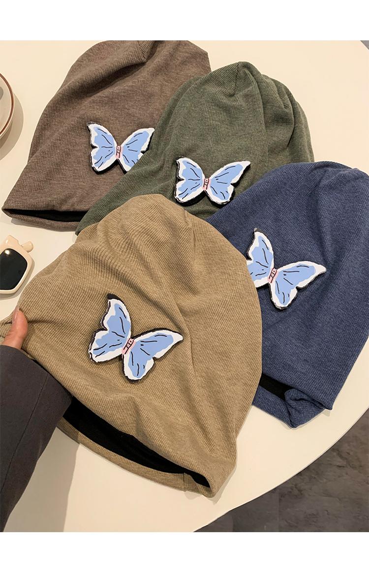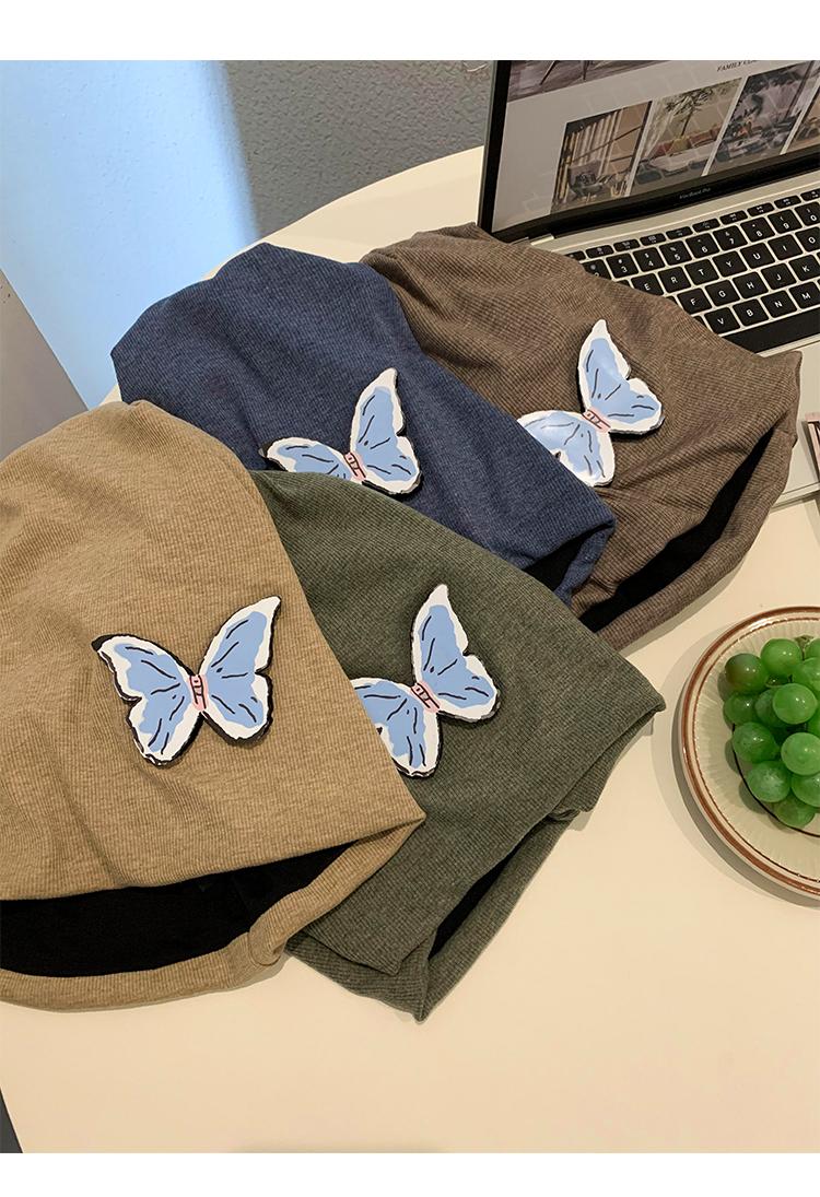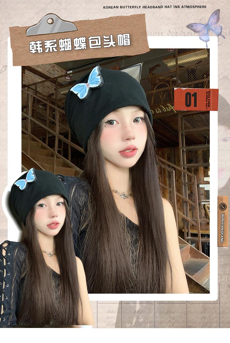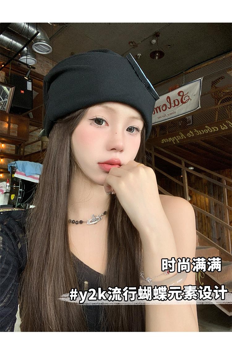 Gorro Frío de Mariposa Tridimensional Estilo Coreano para Mujer Otoño e Invierno Negro Gorro de Montón Combinable Muestra la Cara Pequeña Sombrero de Bolsa Cabeza Grande Wai Sombrero