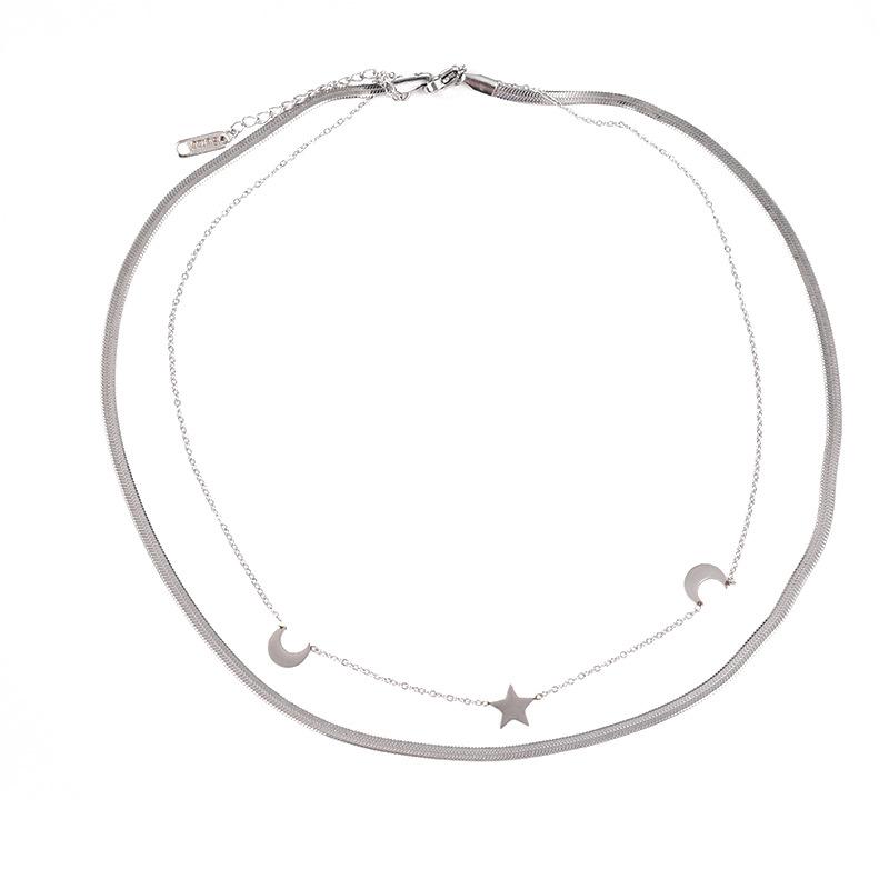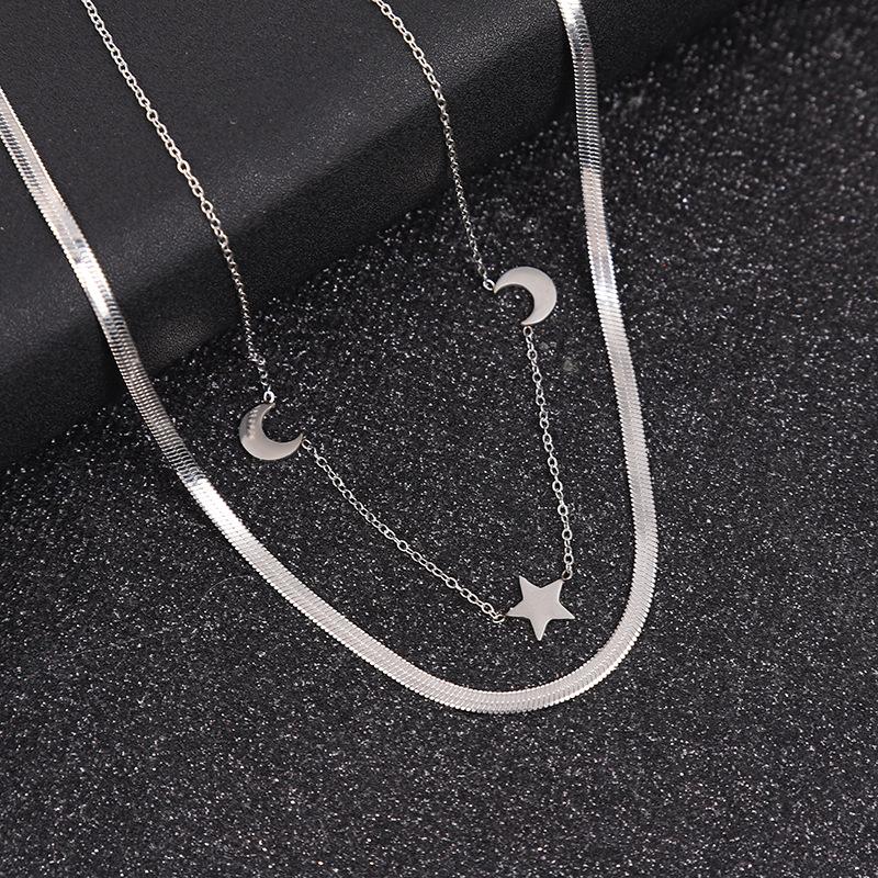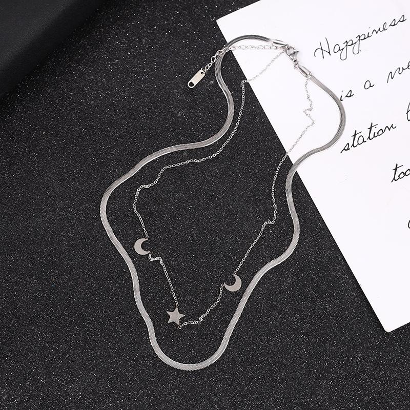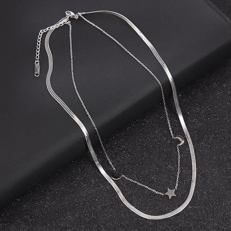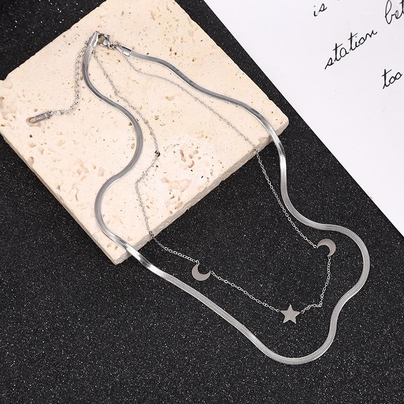 Acero de Titanio Nueva Cadena de Hueso de Serpiente Collar de Doble Capa Diseño Simple Femenino Europeo y Americano de Alta Gama Versátil Cadena de Clavícula Accesorios Hip-Hop