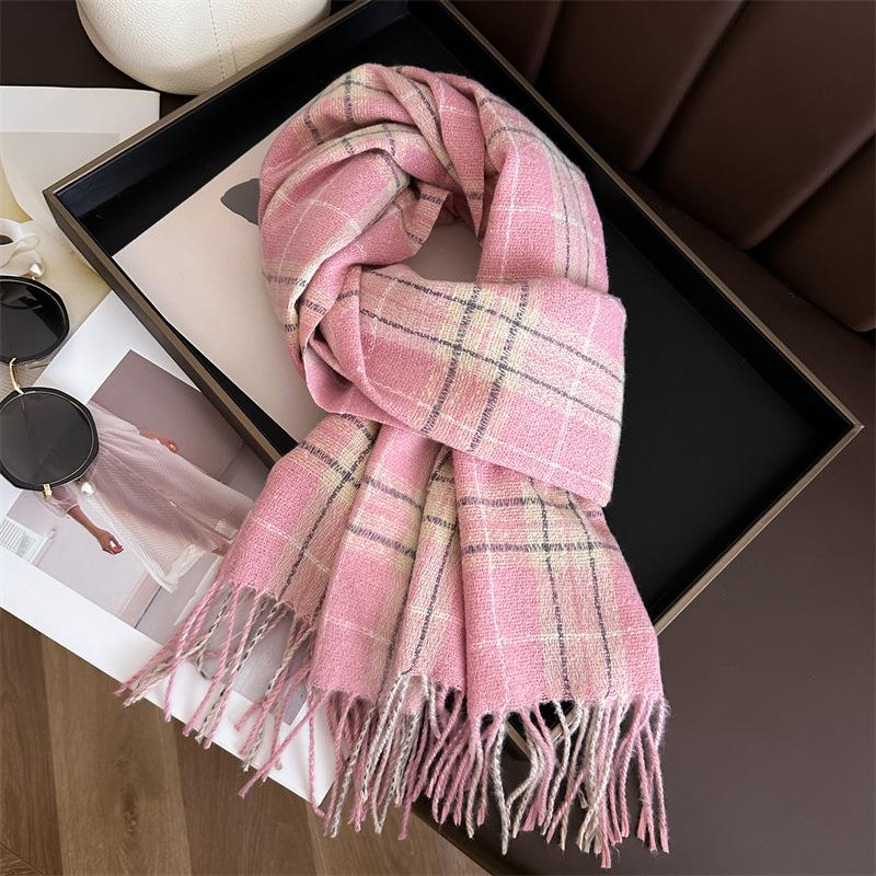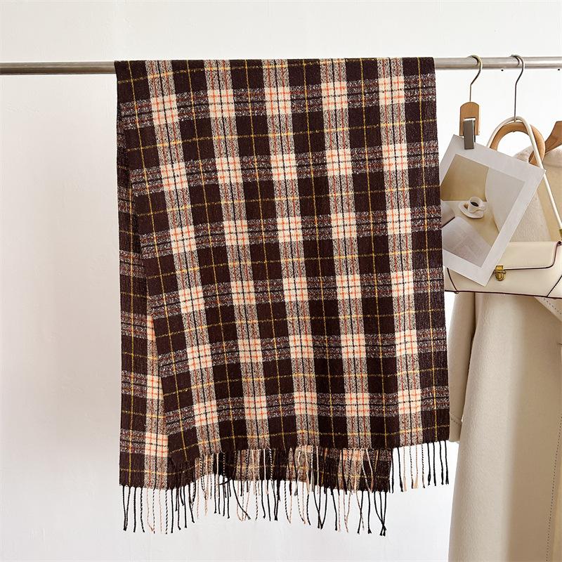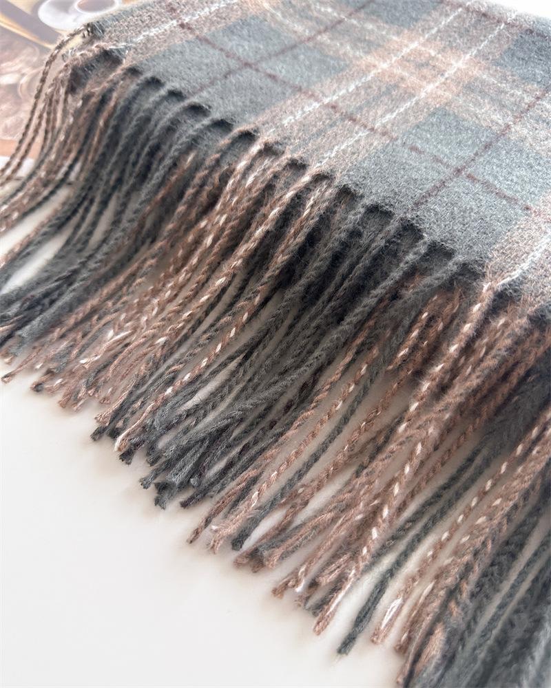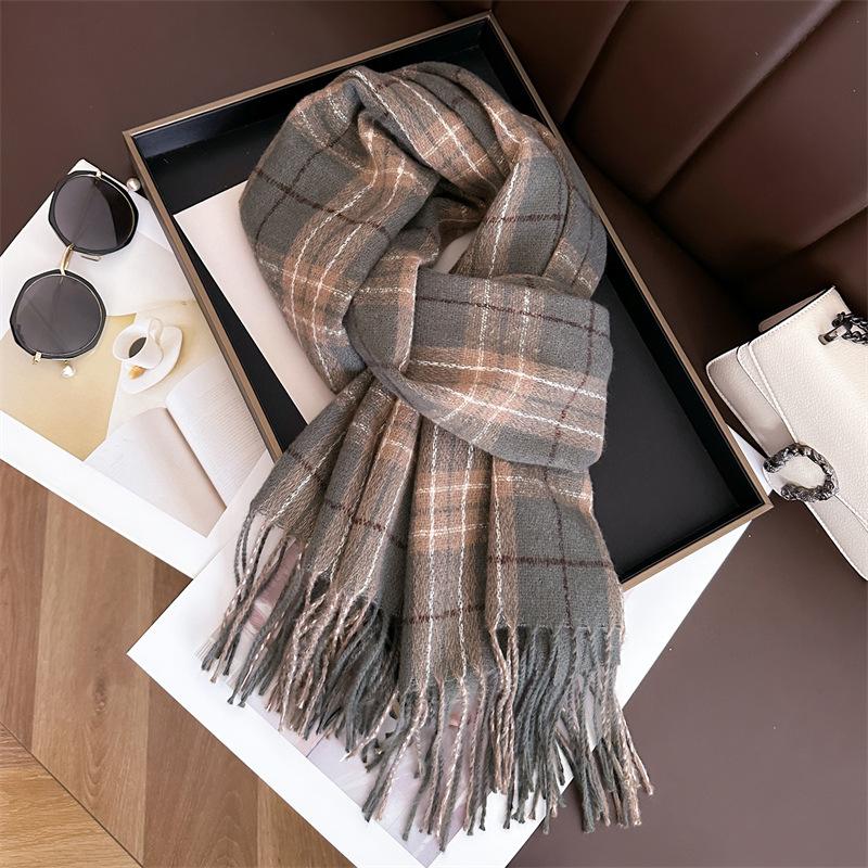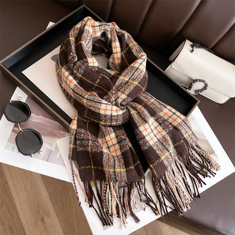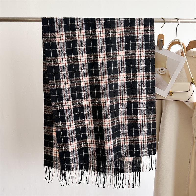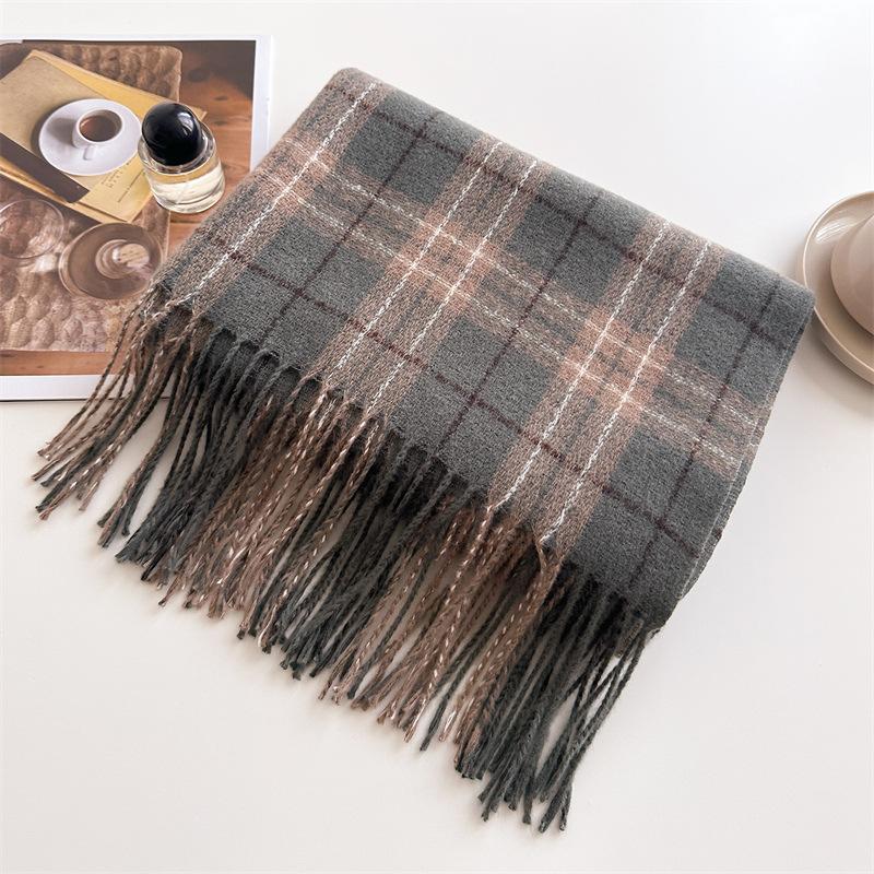Bufanda chal unisex de cachemira fresca, versátil, a cuadros, cálida, con borlas, para otoño e invierno.