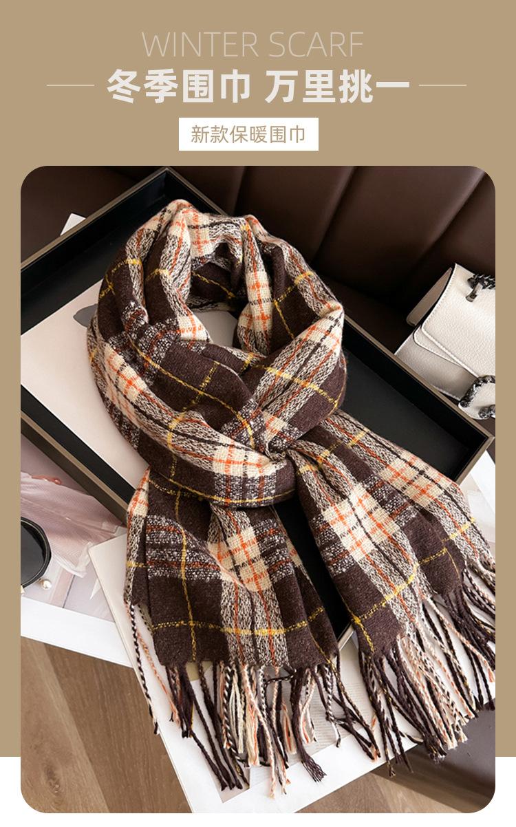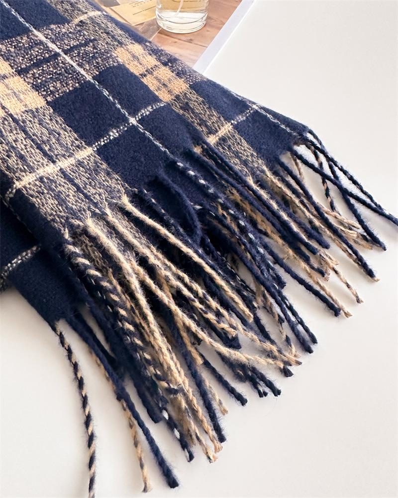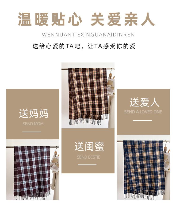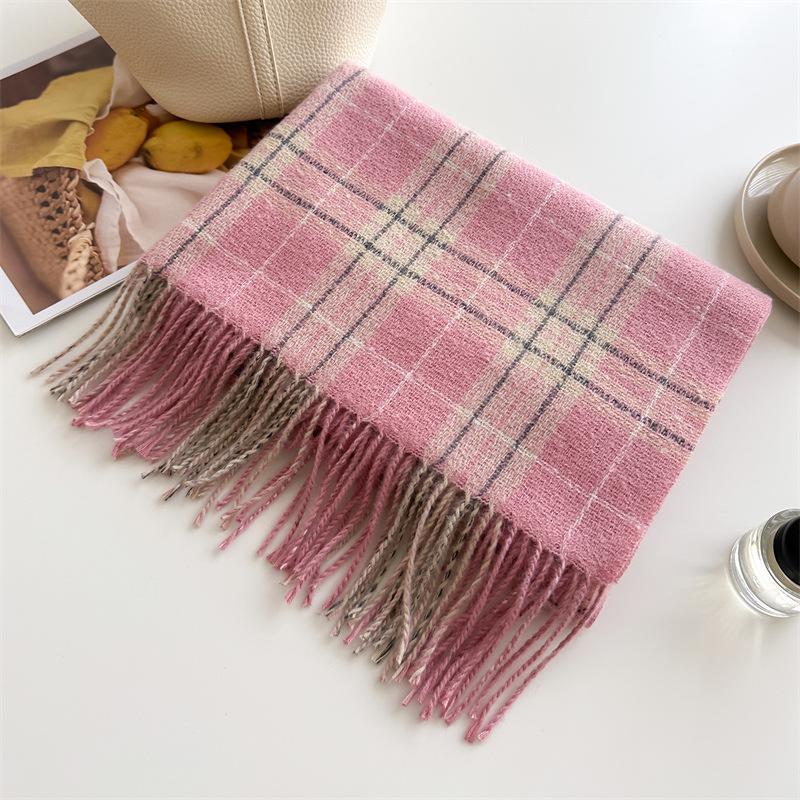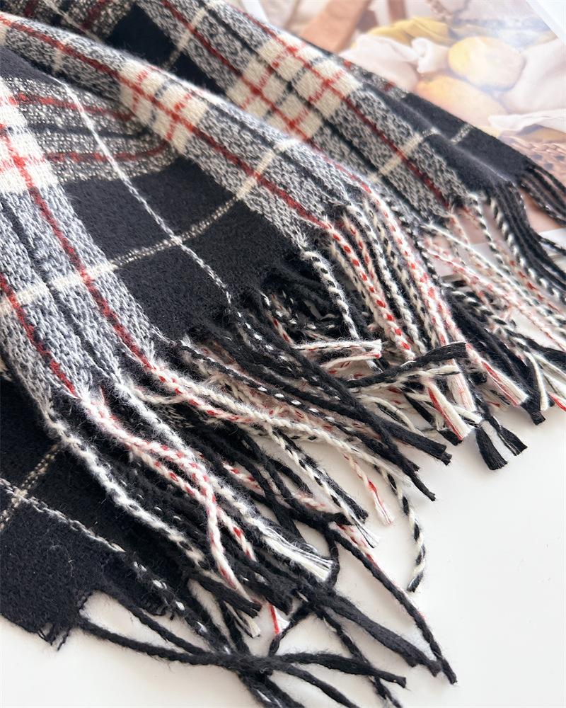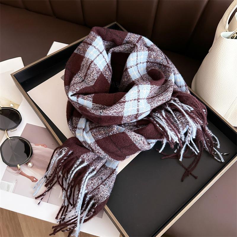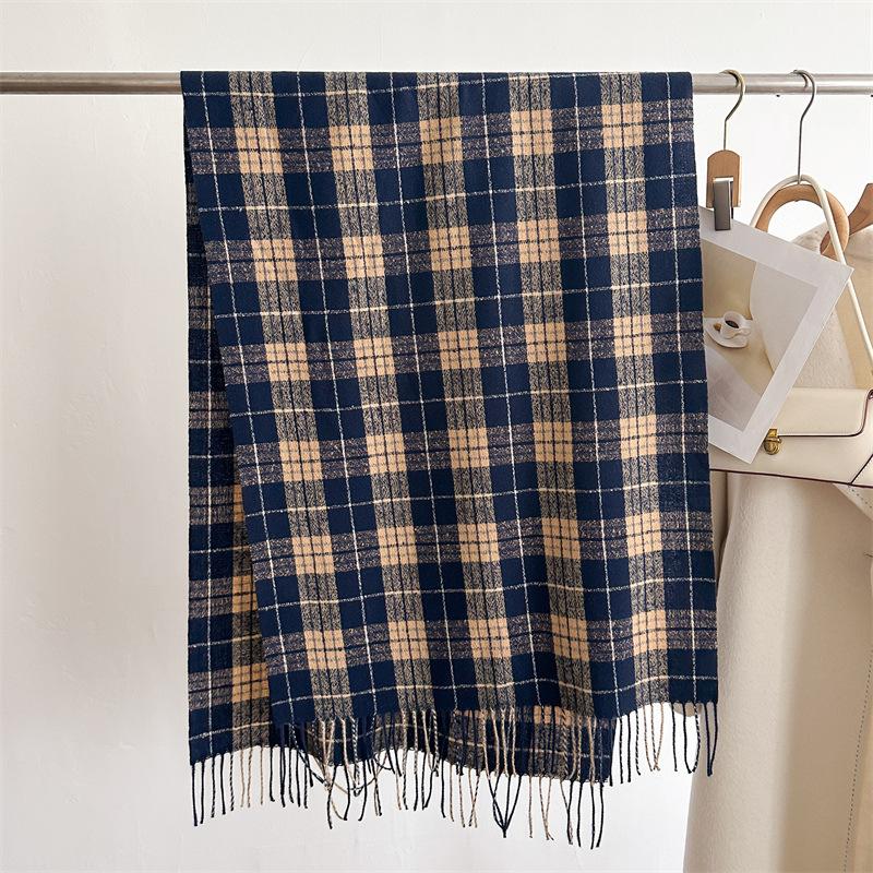 Bufanda chal unisex de cachemira fresca, versátil, a cuadros, cálida, con borlas, para otoño e invierno.