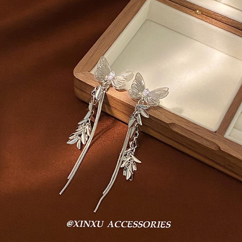 Pendientes vintage de metal con forma de mariposa y borlas de trigo (2024), elegantes, de alta gama y combinables, sencillos y con nicho para mujer.