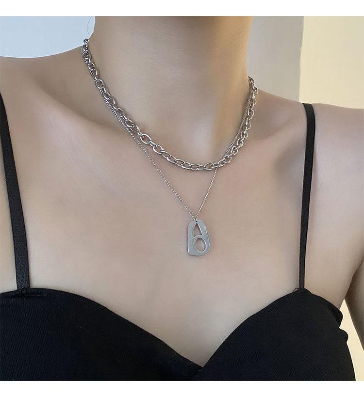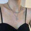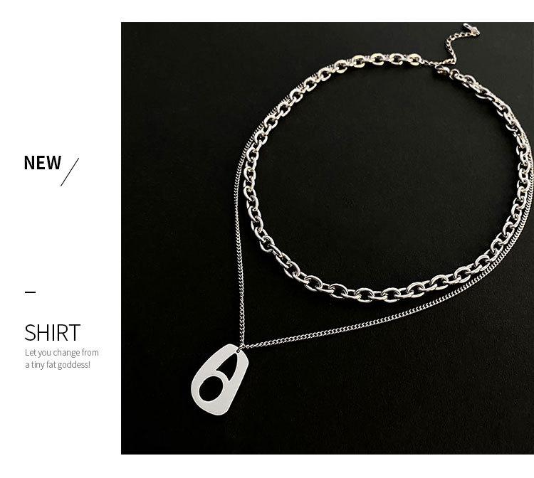 Collar geométrico de doble capa para hombre, estilo hip-hop, personalidad urbana, joyería sencilla, estilo frío, cadena de lana de acero inoxidable de alta gama.