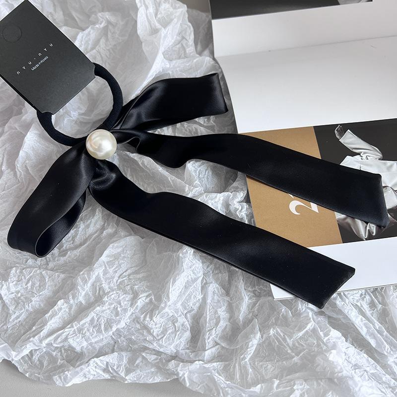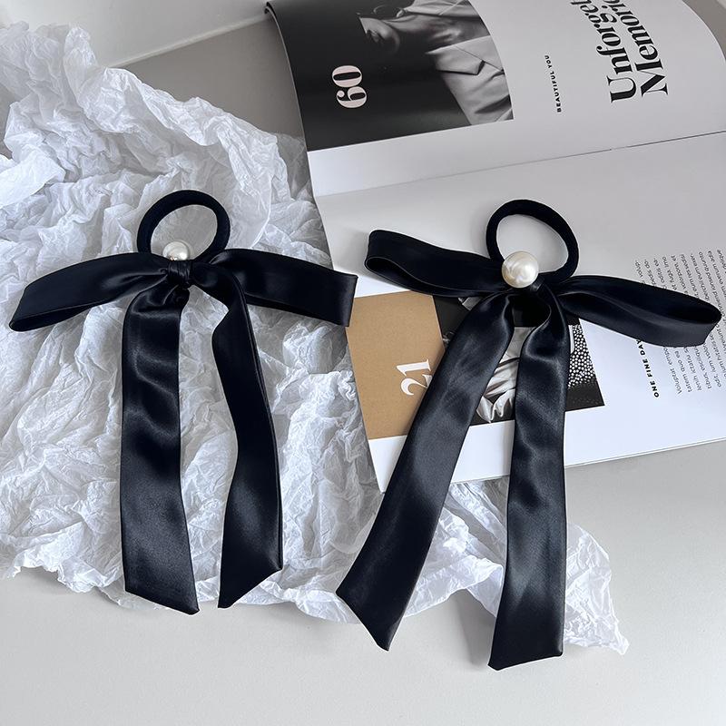 Sensación de alta gama estilo fragancia pequeña banda elástica negra elegante temperamento que reduce la edad simple lazo cuerda anillo para el cabello tocado venta al por mayor