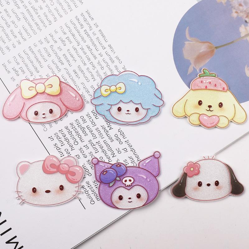Accesorios de Sanrio acrílicos de dibujos animados, horquillas para el cabello hechas a mano, accesorios de joyería, pegamento en crema, parche de material para carcasa de teléfono móvil