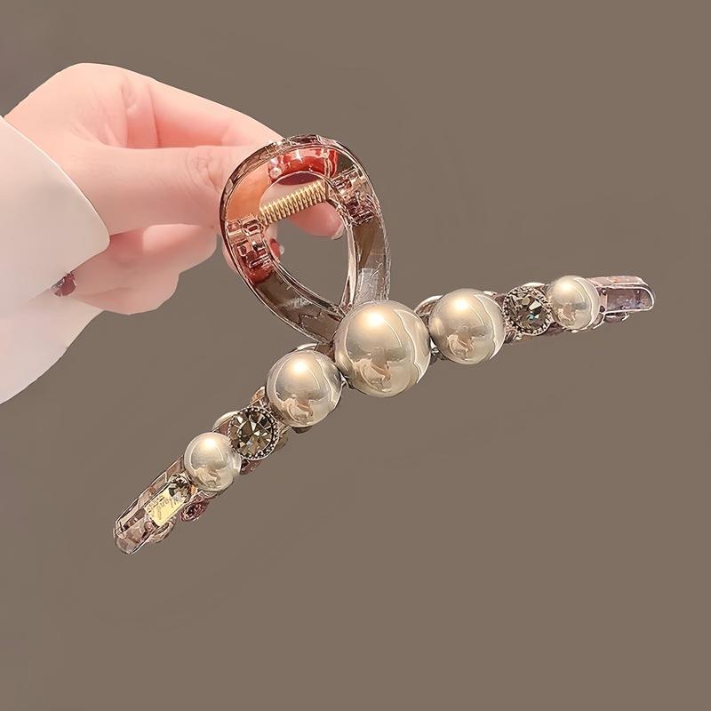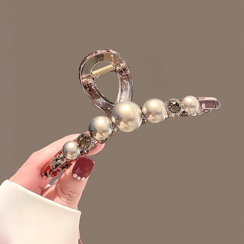 2025 Nueva Moda Perla Acrílico Clip Grande Pinza para el Cabello Elegante Retro de Alta Gama Parte Trasera de la Cabeza Pinza Tiburón