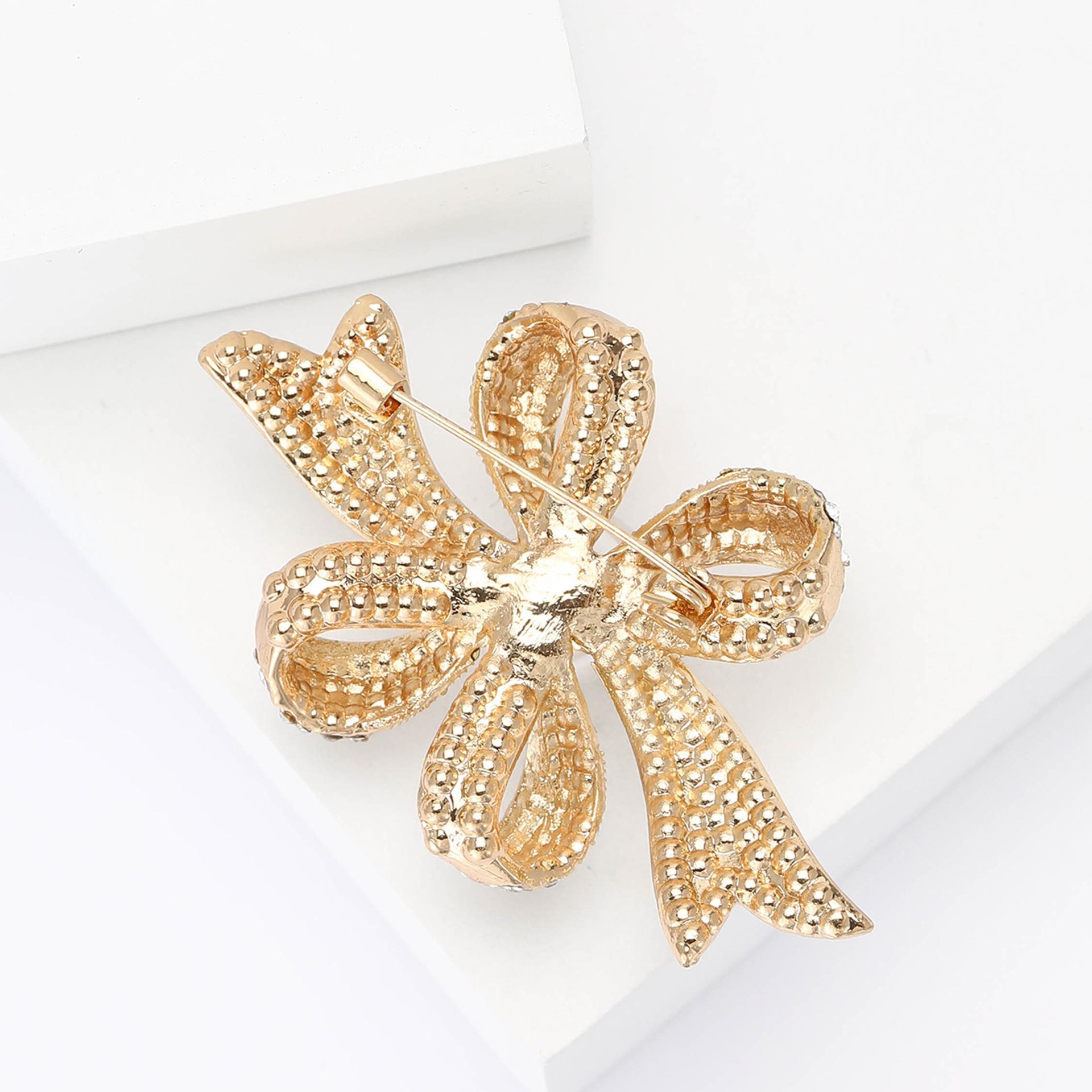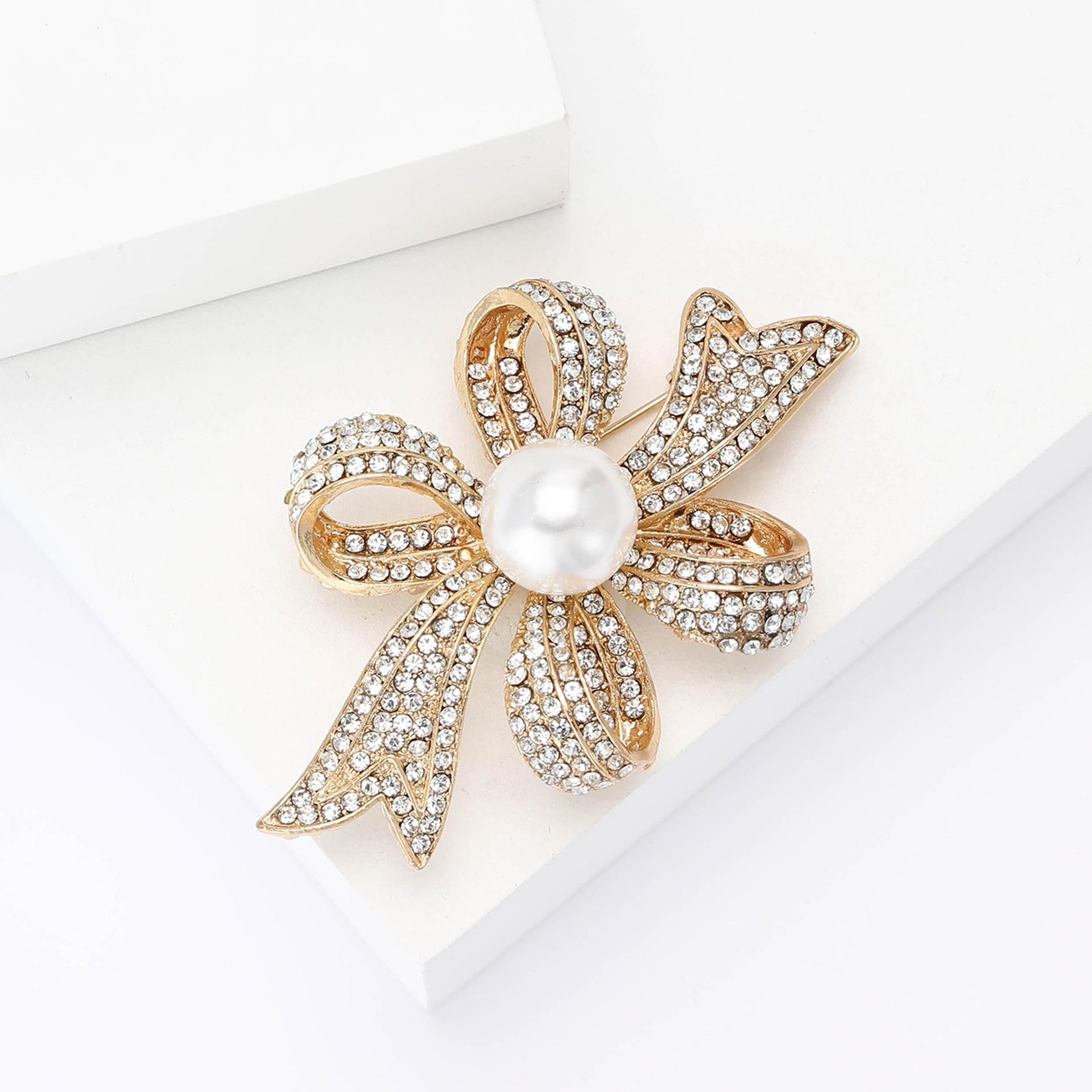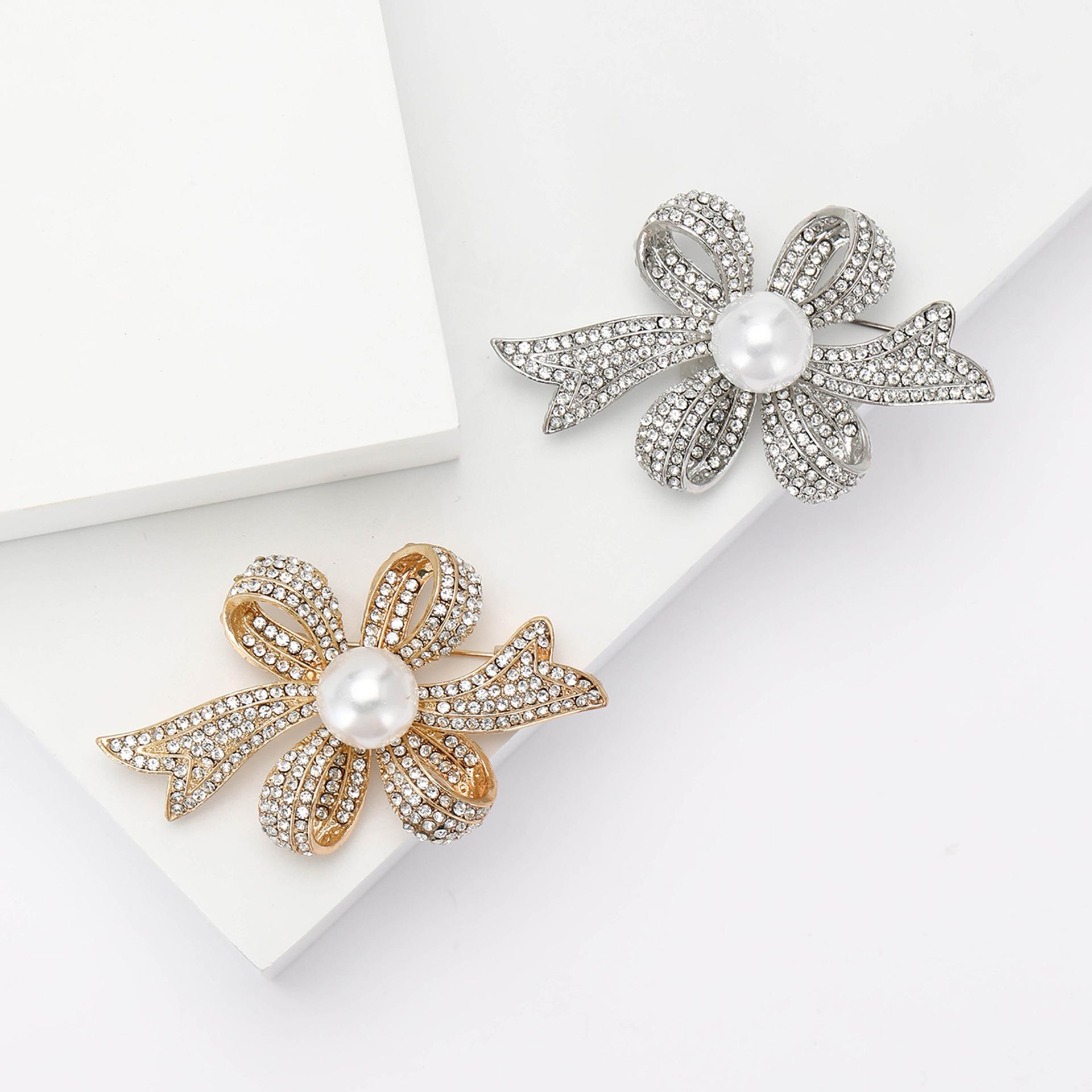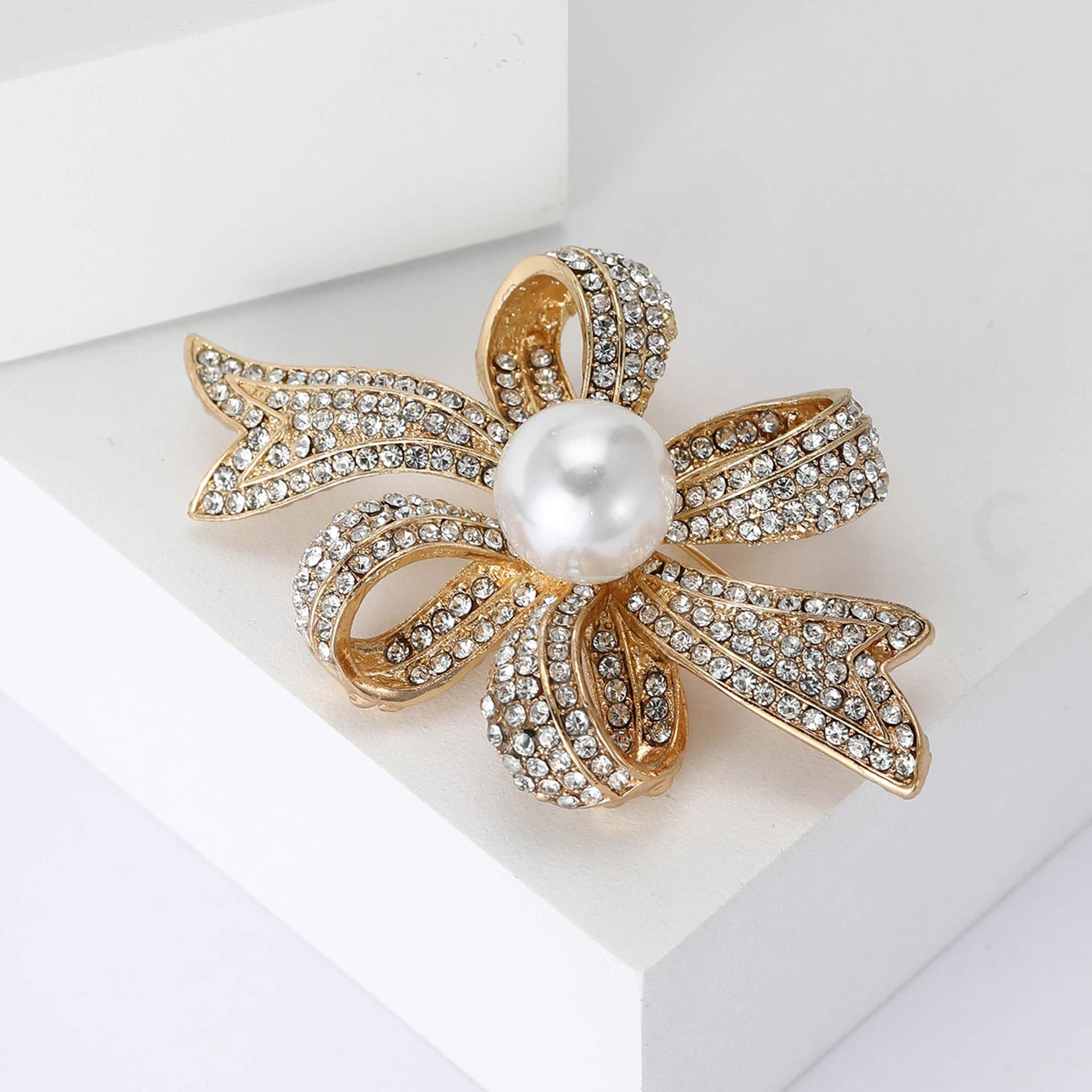 Broche de lazo de cuatro secciones con diamantes de imitación de aleación de moda, exquisito broche de ramillete para mujer, ideal para combinar con todo.