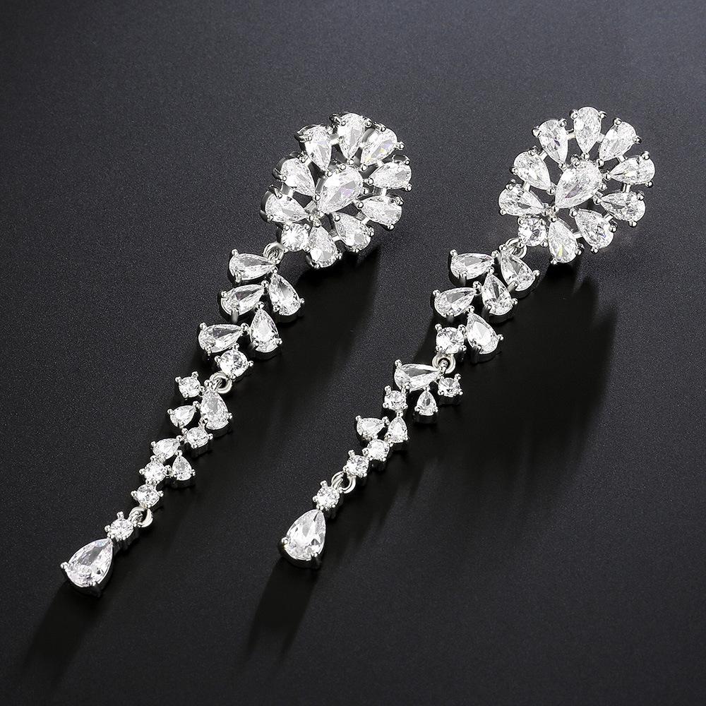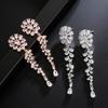 RAKOL - Pendientes pequeños de flores geométricas frescas de estilo europeo y americano para mujer, elegantes pendientes largos de circonita con incrustaciones completas de lujo