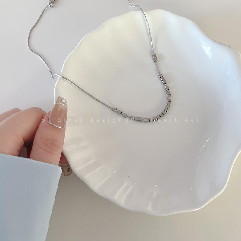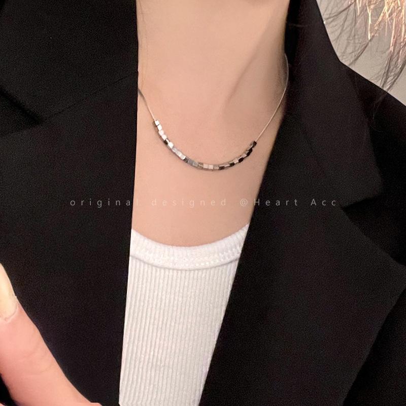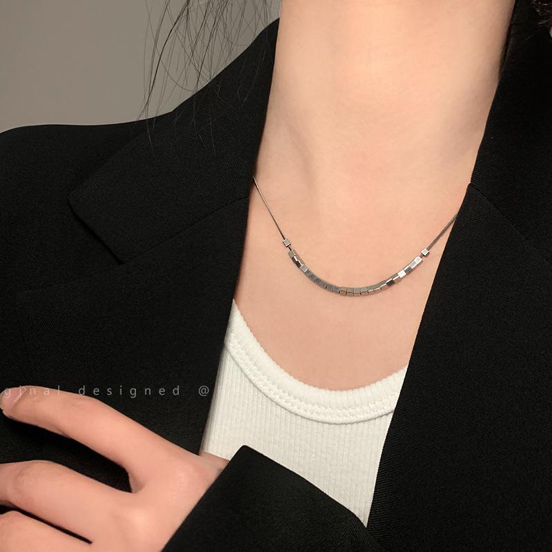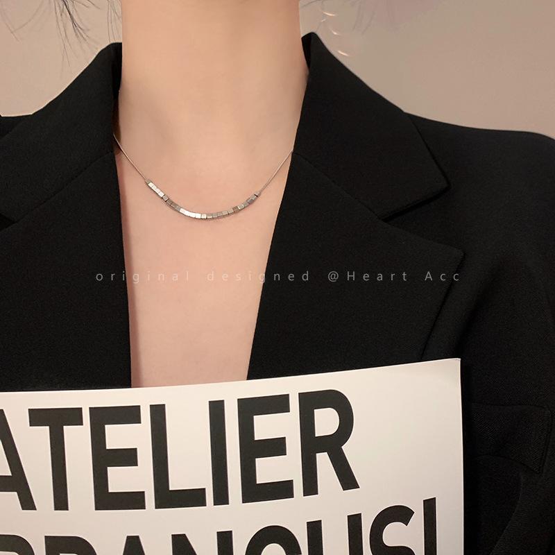 | El collar de acero de titanio no se decolora, el collar con diseño colgante de tubo curvo de estilo de metal frío de alta calidad, es moderno y versátil. |