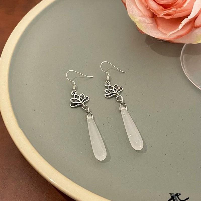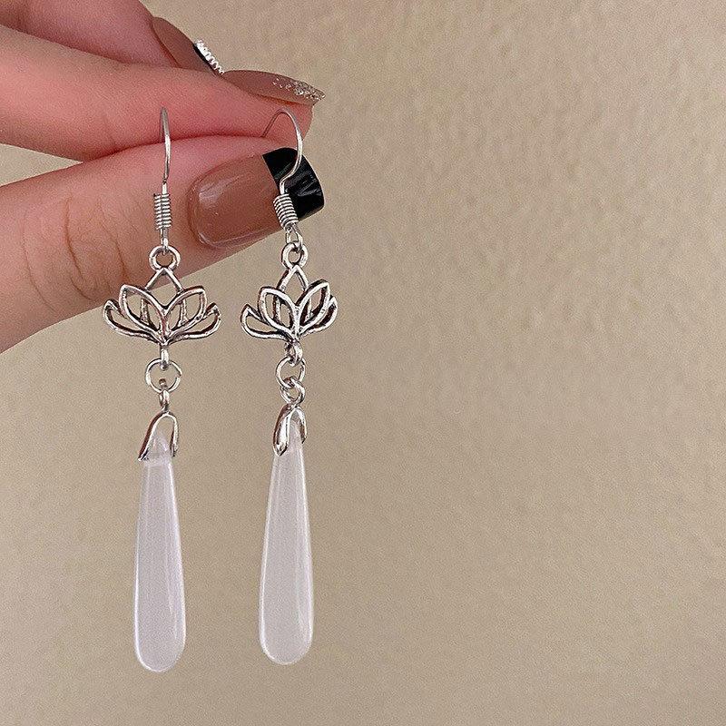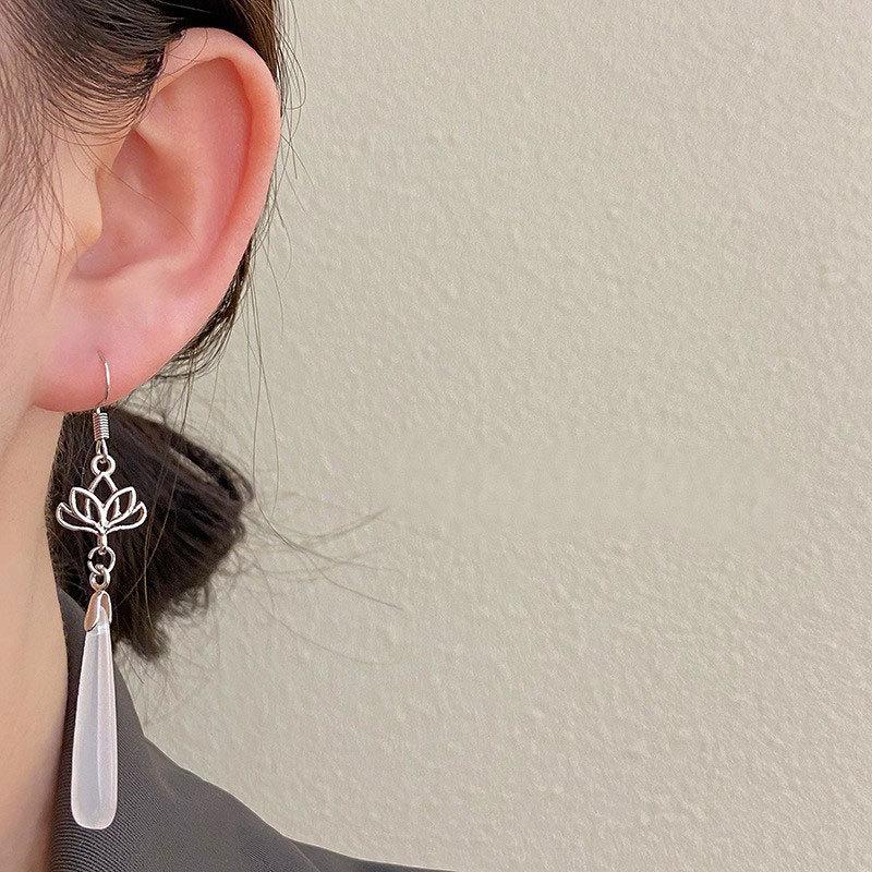 Nuevos pendientes de borla con forma de gota de agua de loto antiguos chinos para mujer, de nicho, ligeros, de lujo, a la moda, combinables, geniales y elegantes.