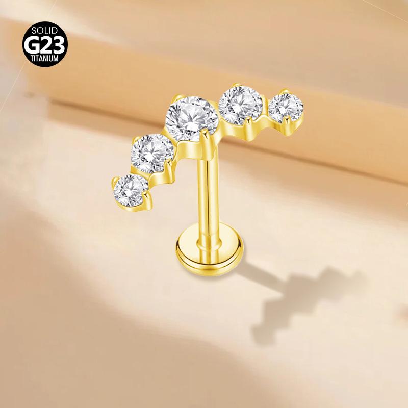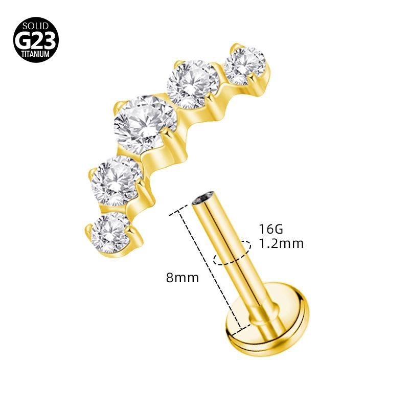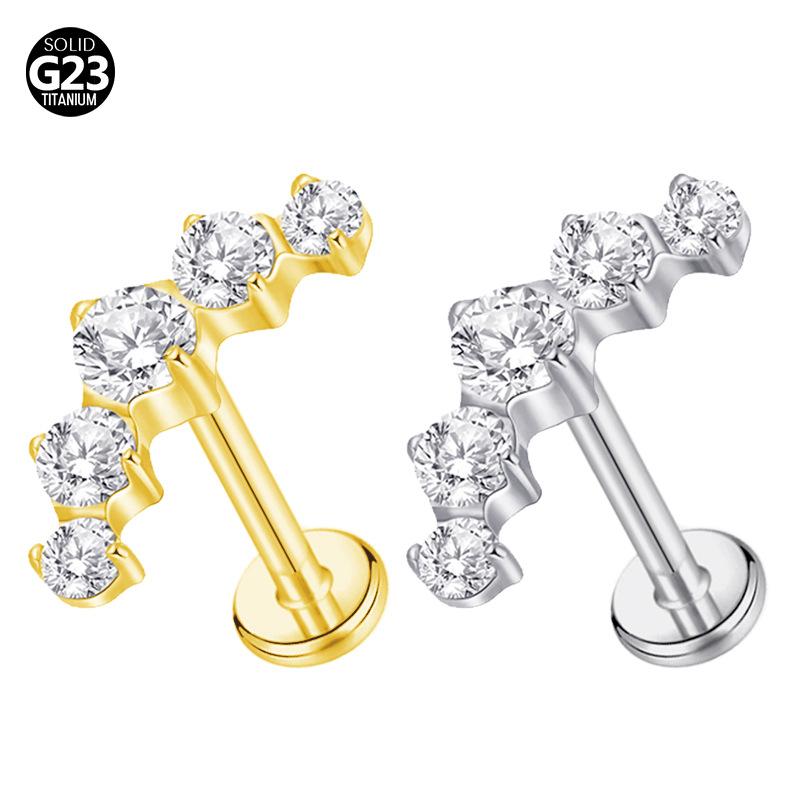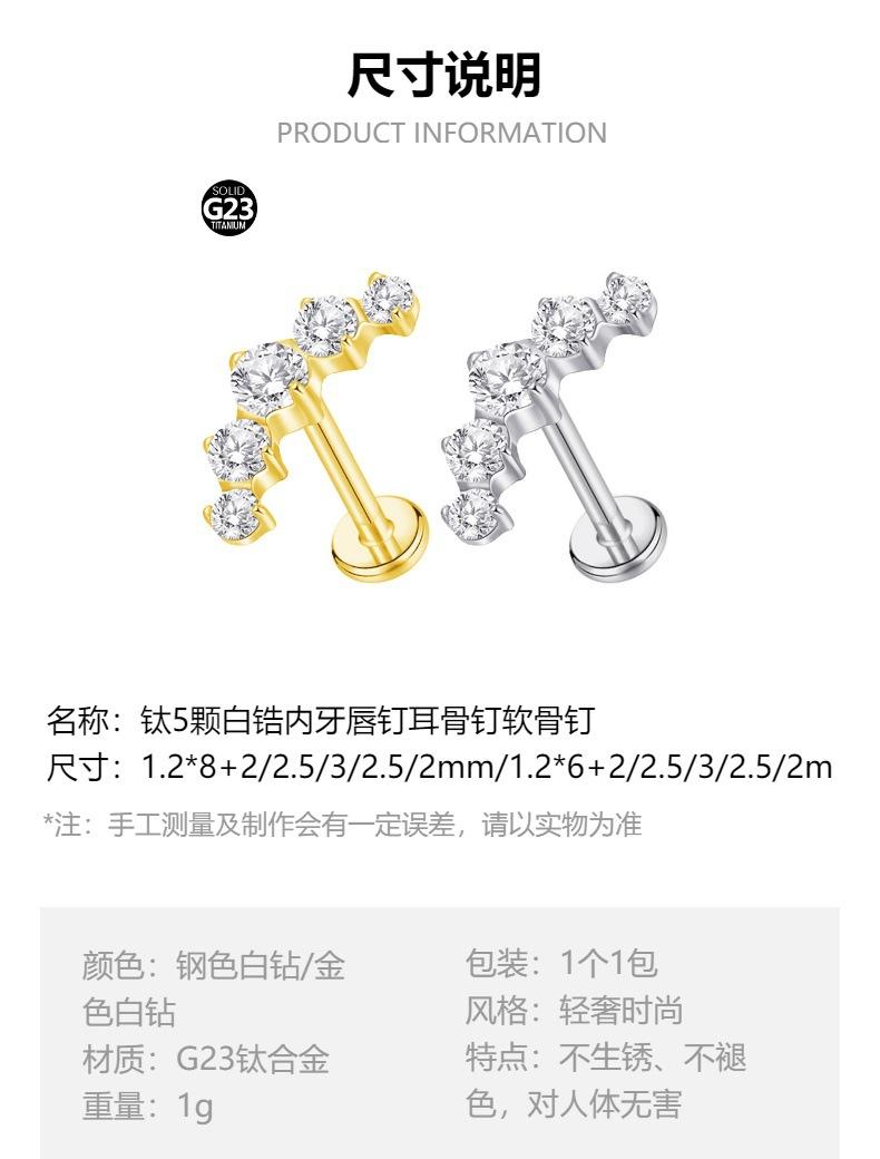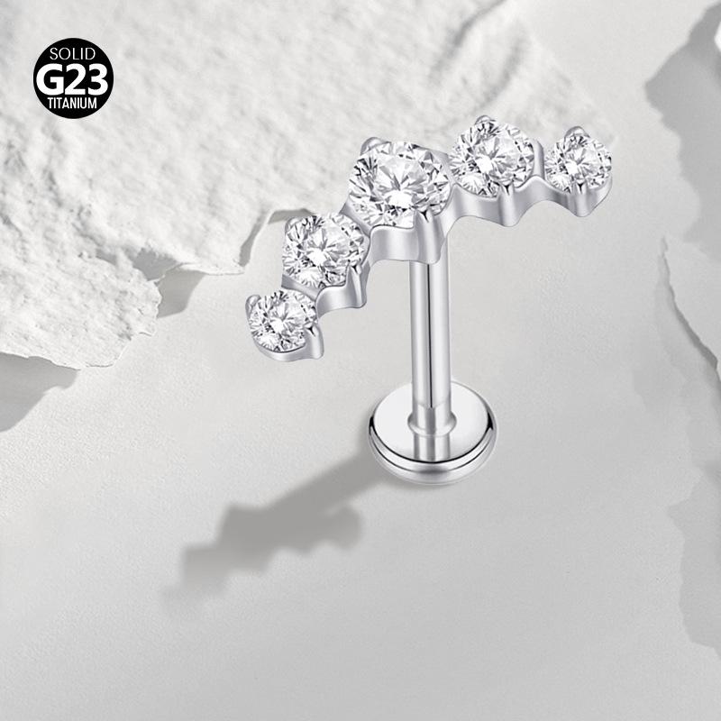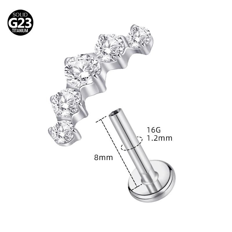 Nuevos Aretes de Aleación de Titanio G23 2024, Clavos para Hueso de la Oreja, Anillos para Labio, Clavos para Labio, Zirconia Dientes Internos Barra Recta Joyería para Piercing Comercio