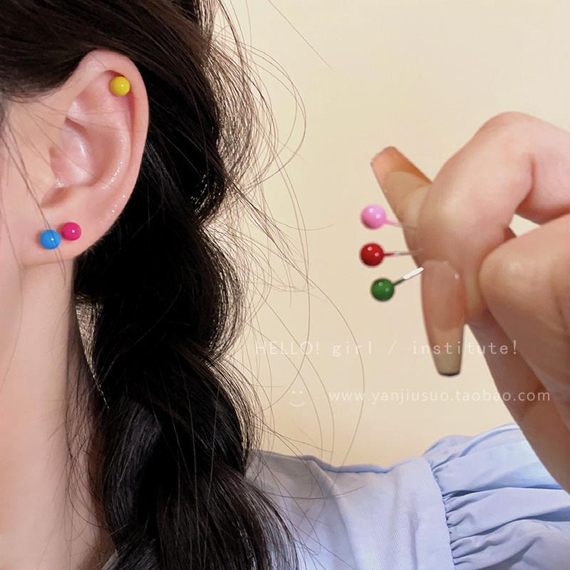 Pendientes de guisantes esmaltados de colores para mujer, conjunto sencillo, pequeño y elegante, con aguja de plata S925.