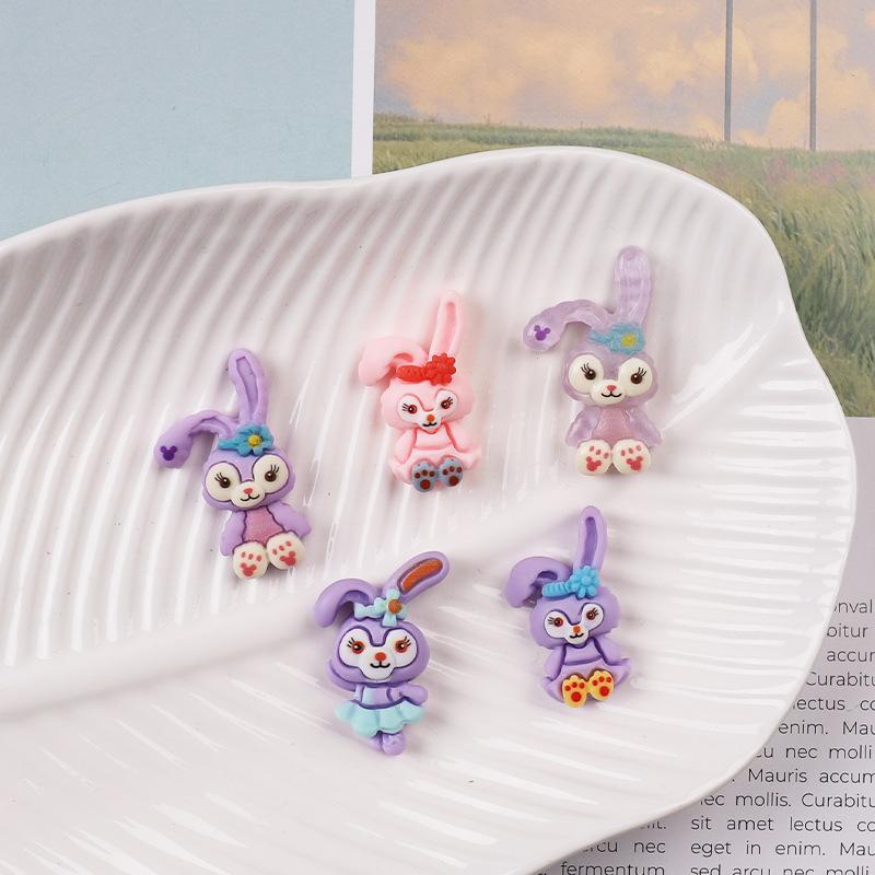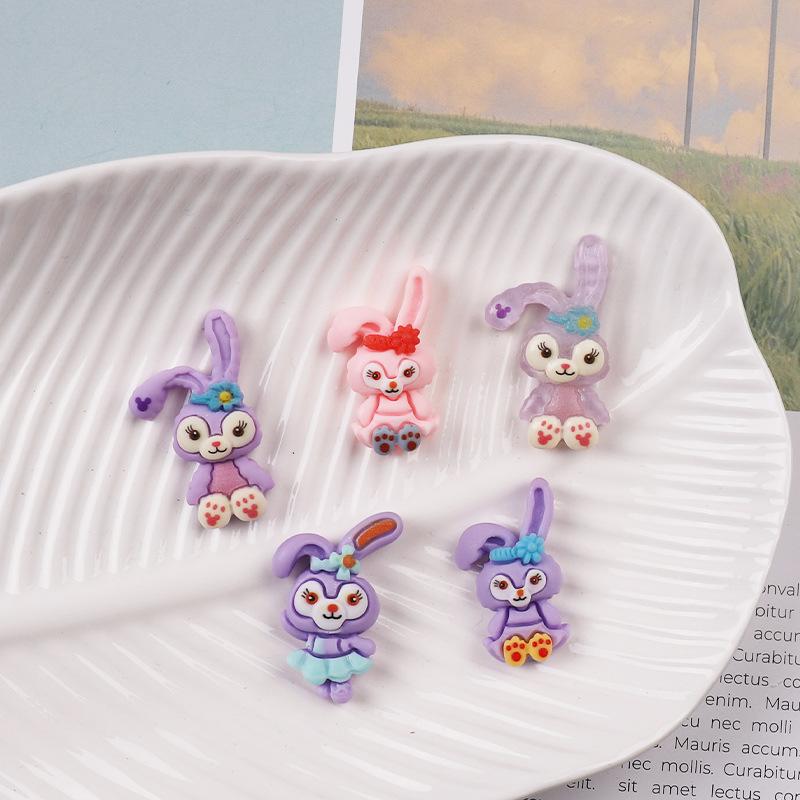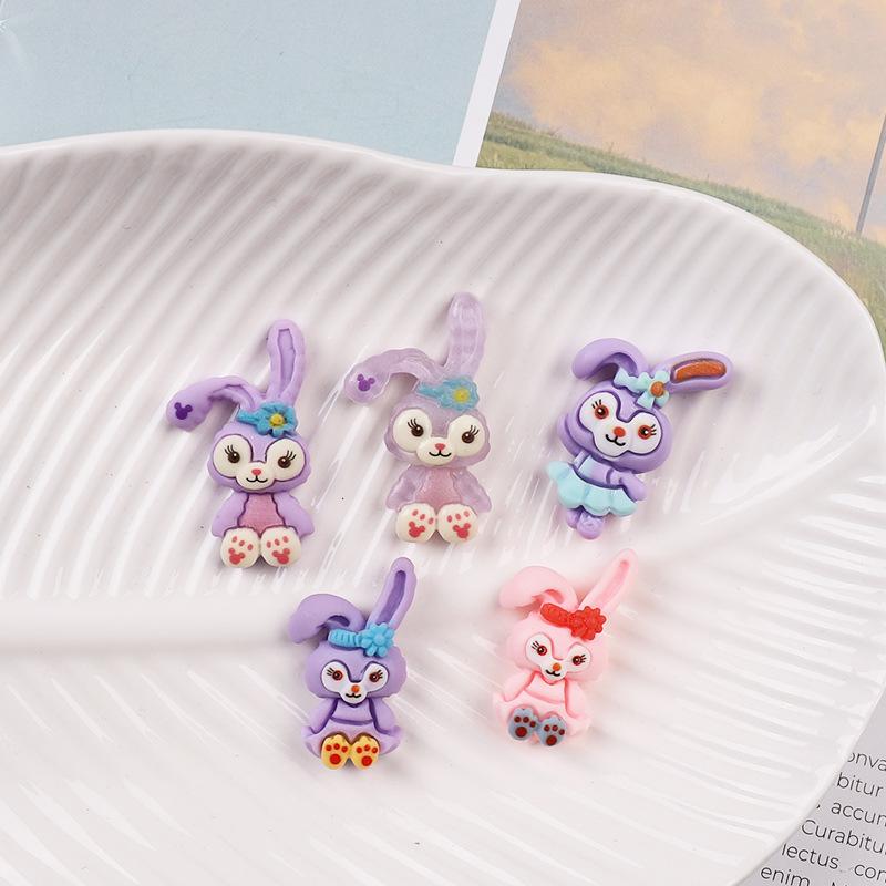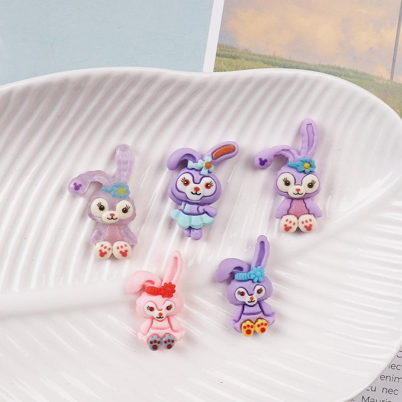 Accesorios de resina de conejo morado de dibujos animados, horquilla para el pelo, cuerda para la cabeza, pegamento en crema para bricolaje, funda para teléfono, parche para taza de agua, accesorios de resina
