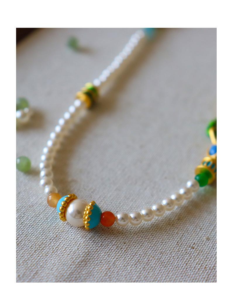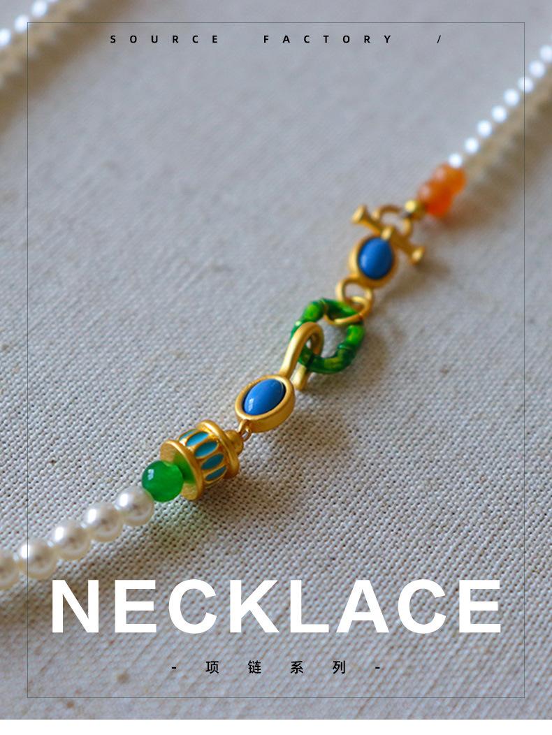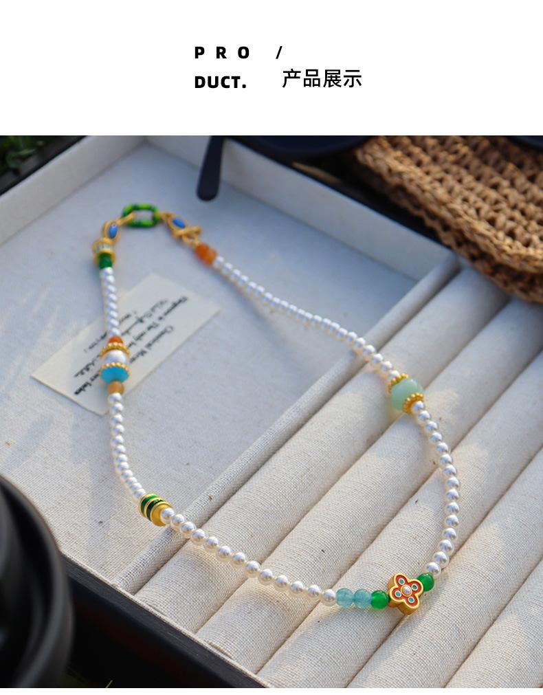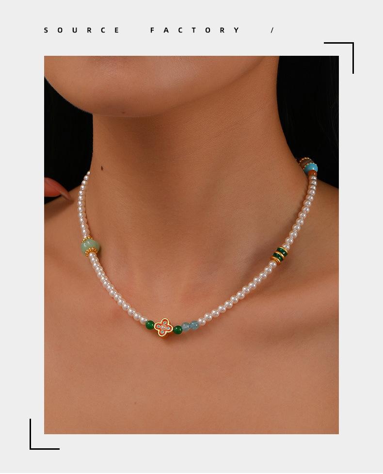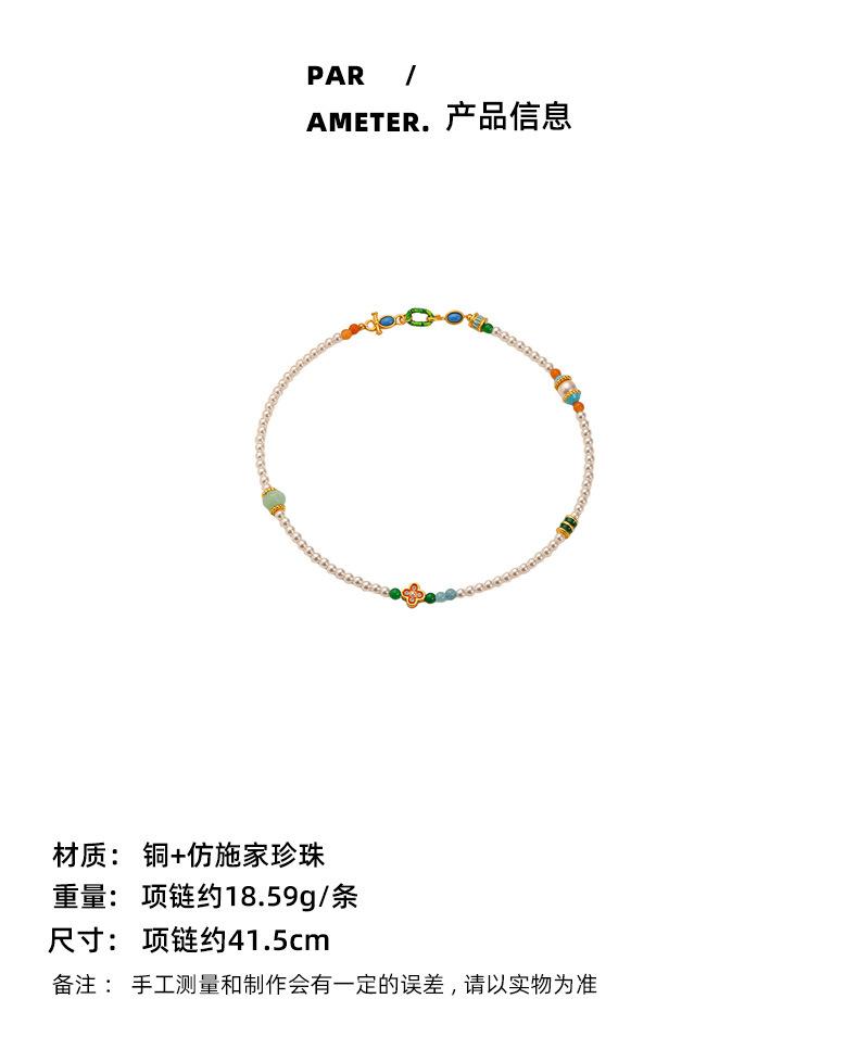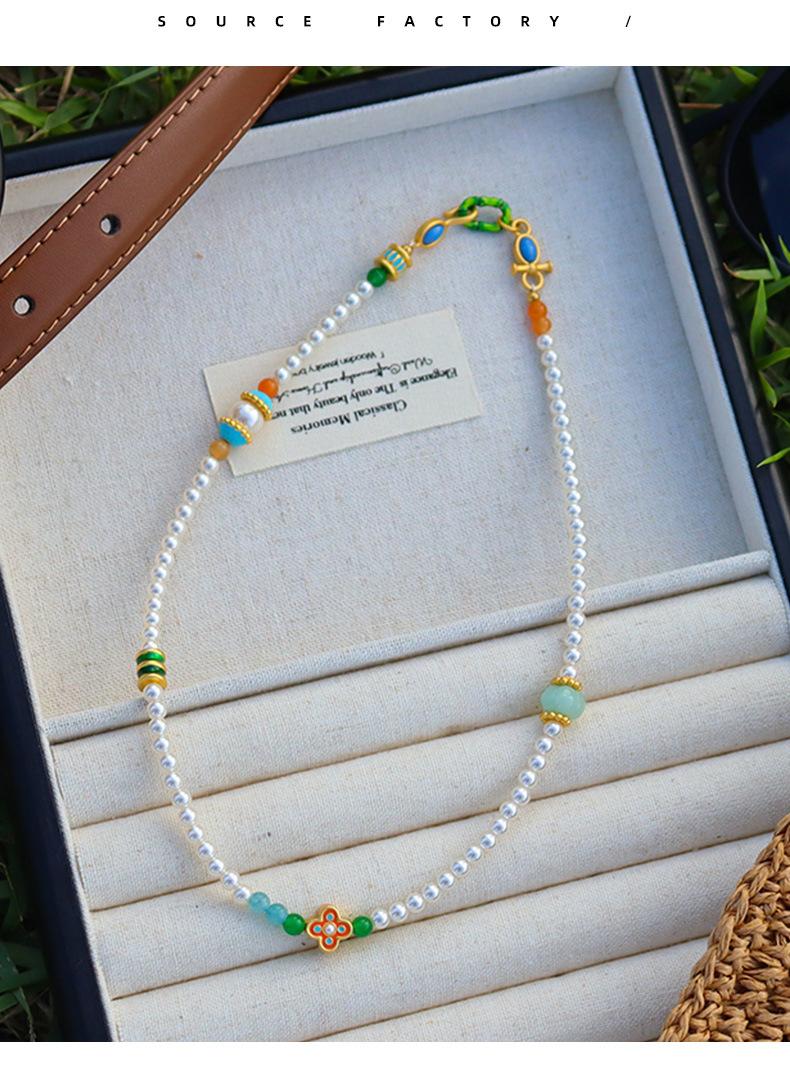Compra Collar original nuevo de estilo chino con trébol de cuatro hojas y perlas, con esmalte colorido y gotas de aceite, para mujer, estilo retro, ligero, de lujo, versátil, con cadena para clavícula. al por mayor en Joom.pro