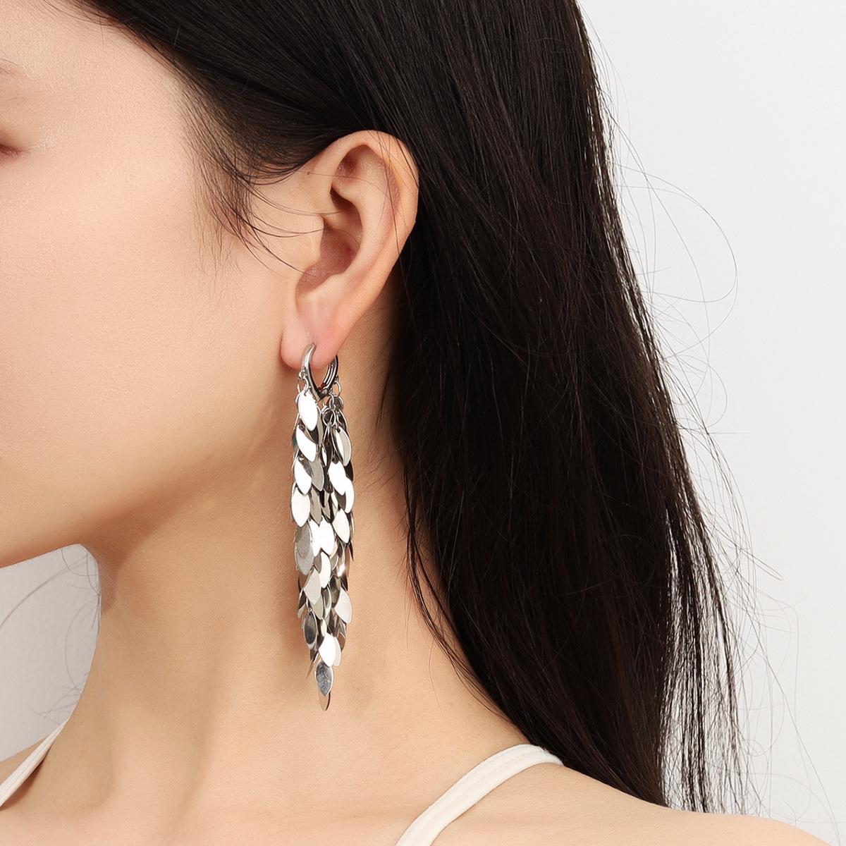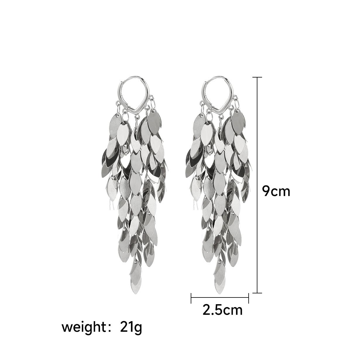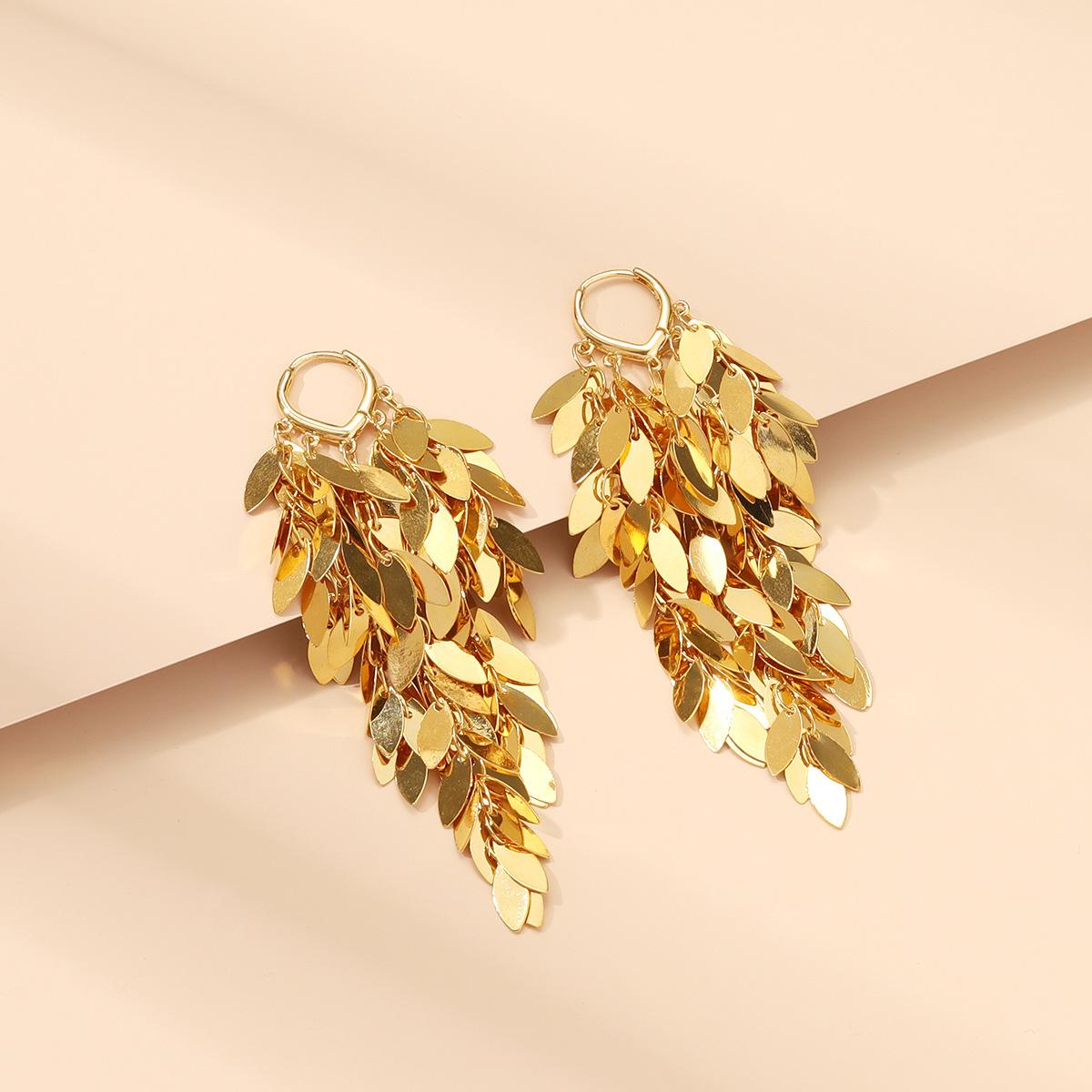 Pendientes vintage con forma de hoja de nicho, pendientes con borlas y lentejuelas exageradas de temperamento de moda europea y americana
