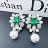 Pendientes de calidad bañados en oro, cristal transparente, perlas de agua dulce,