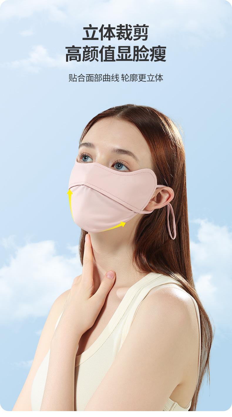 Mascarilla de nailon con protección solar para mujer, transpirable, ligera, de seda helada, anti-UV, para el verano, con protección para las orejas.