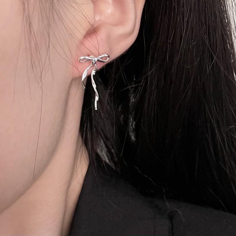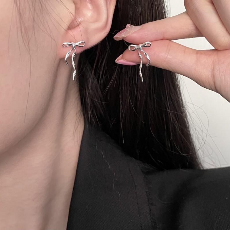 Pendientes de lazo de cinta exquisitos y ligeros de lujo para mujer, nuevos y elegantes, con diseño de nicho de alta gama, accesorios para las orejas.
