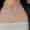 Collar de perlas con lazo de verano para mujer, sencillo, elegante, ligero, de lujo, de alta gama, collar de cadena, clásico, combina con todo.