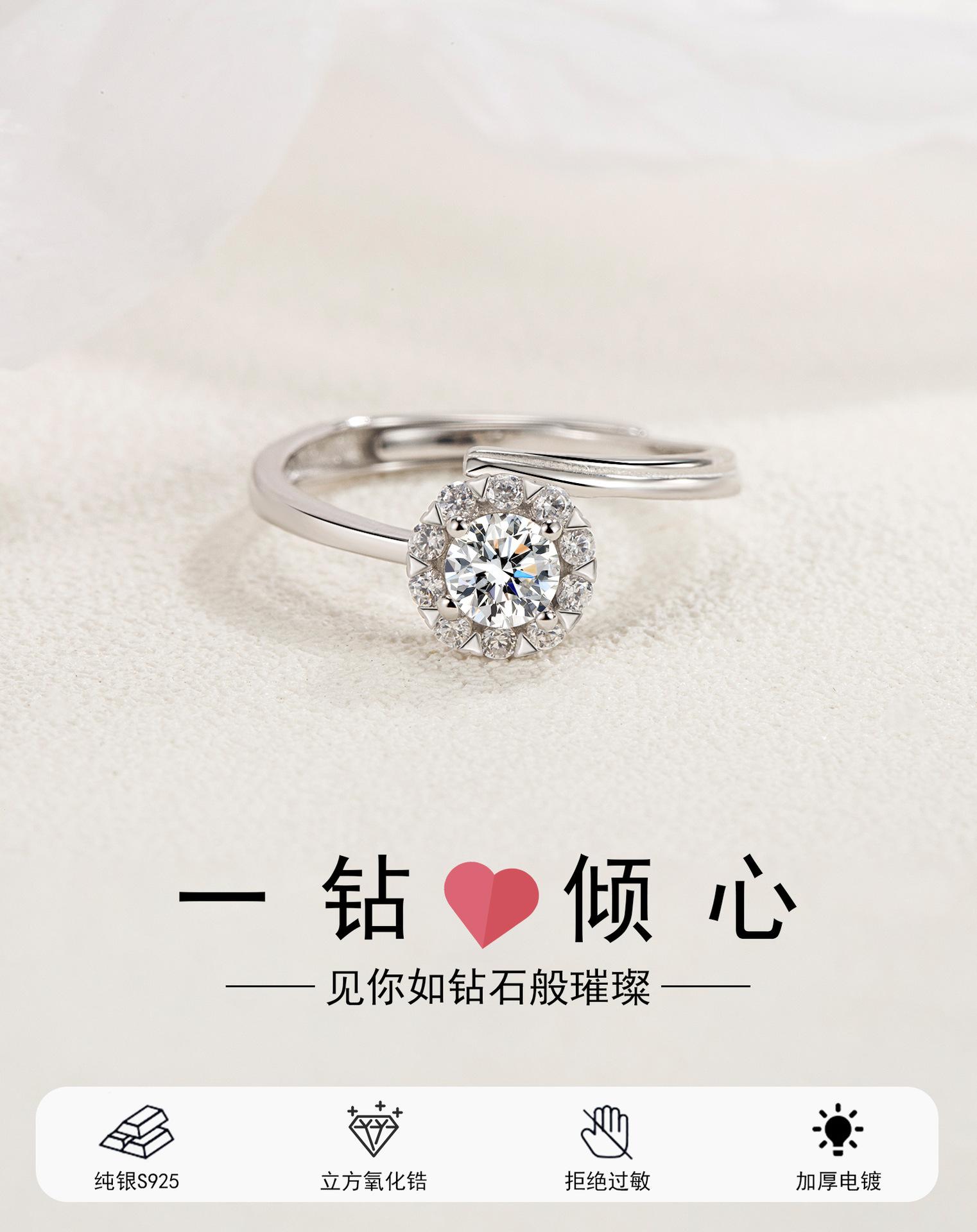 Anillo de circonita de plata esterlina S925, diseño femenino, nicho, anillo de flores de alto sentido, anillo de plata, regalo para pareja, una generación de cabello