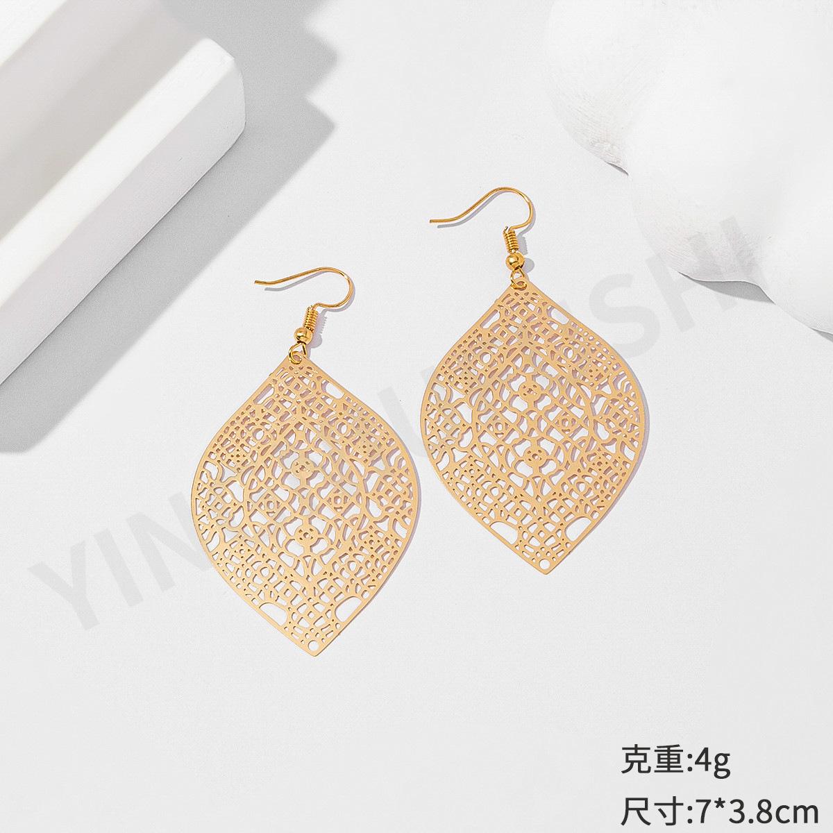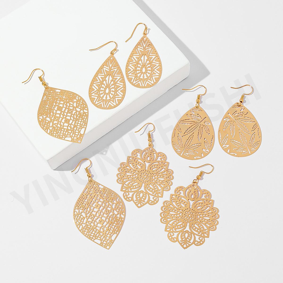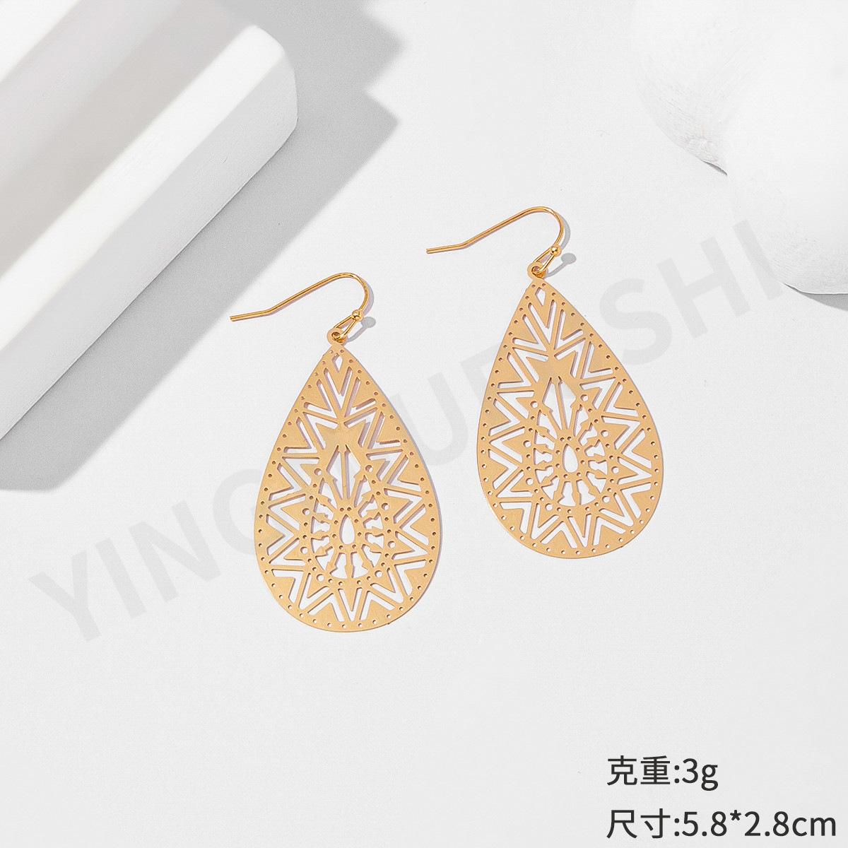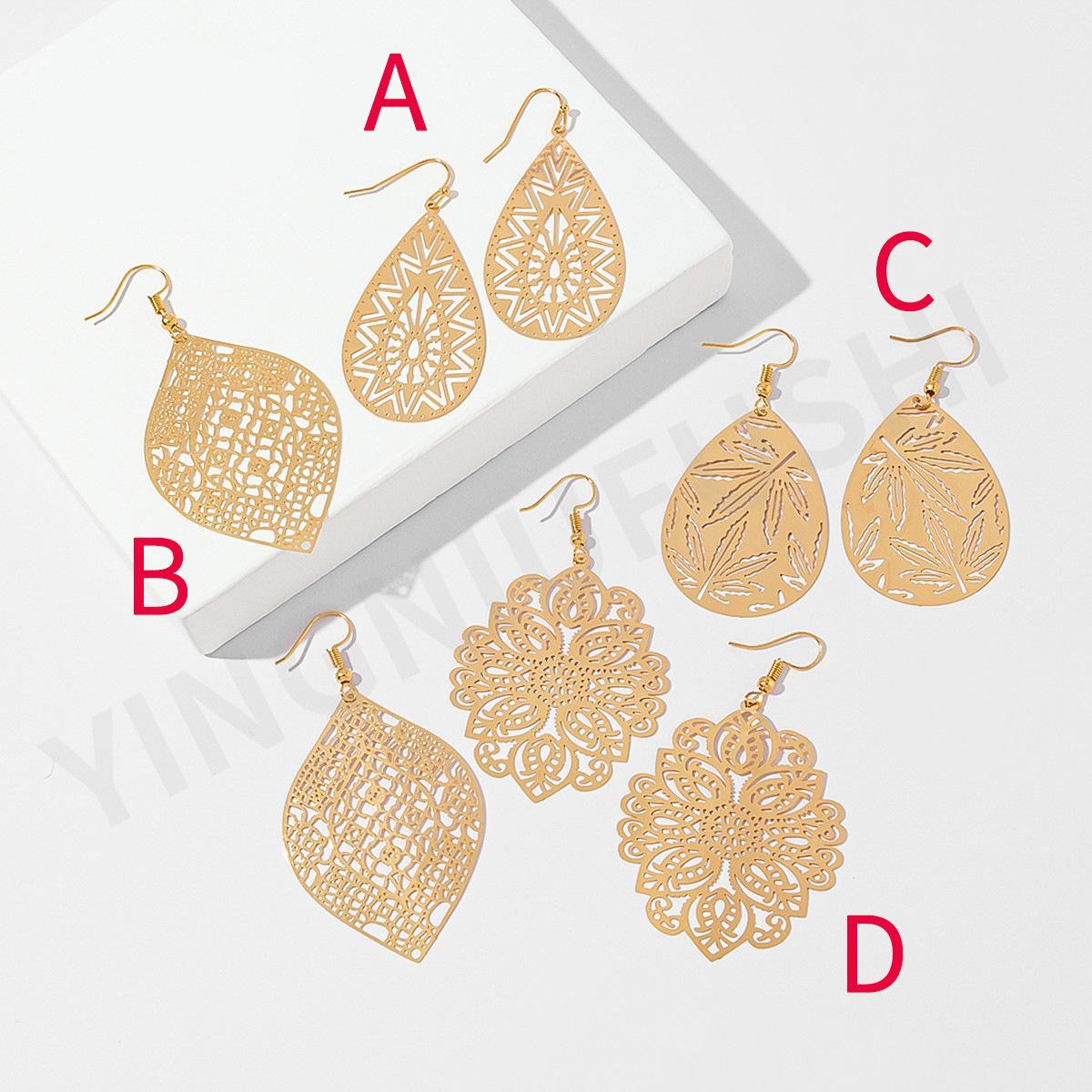 Nueva serie creativa de pendientes huecos dorados para mujer, moda retro, red roja con fabricantes de joyas para las orejas, venta al por mayor