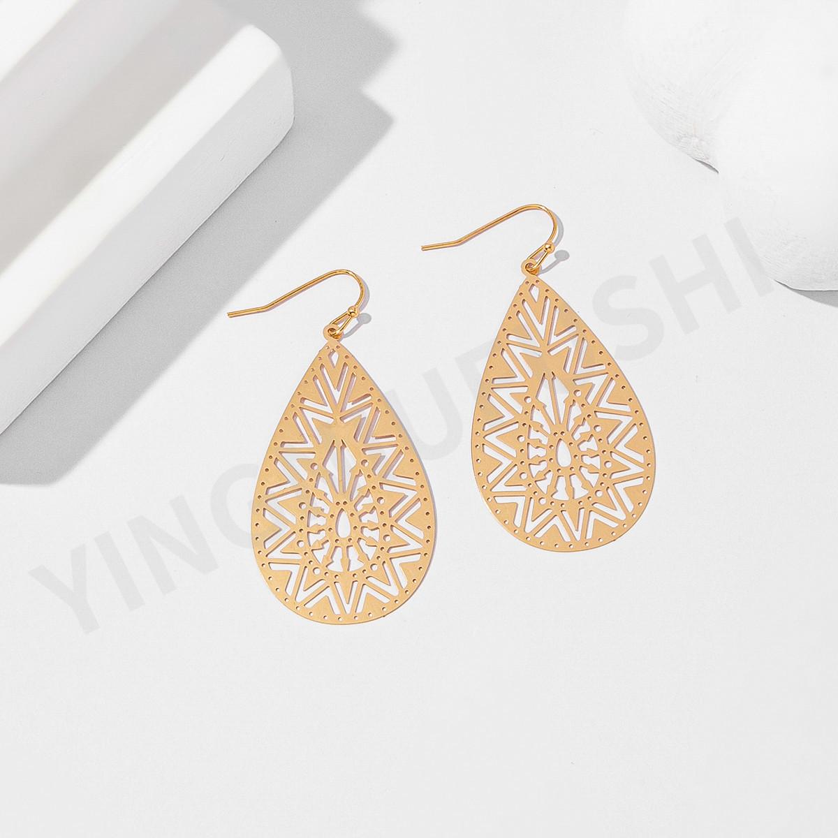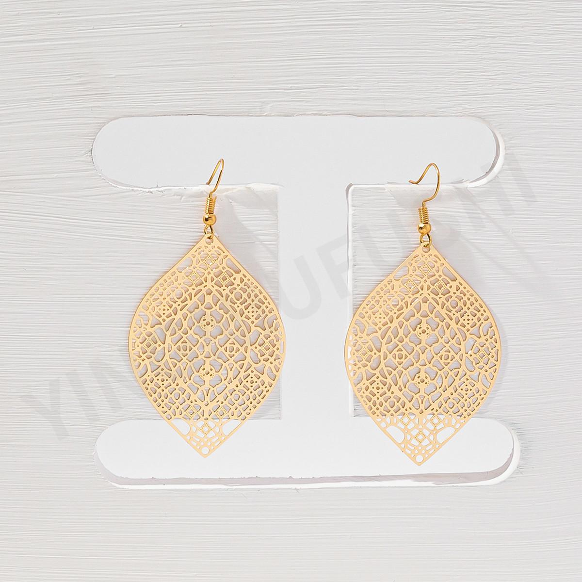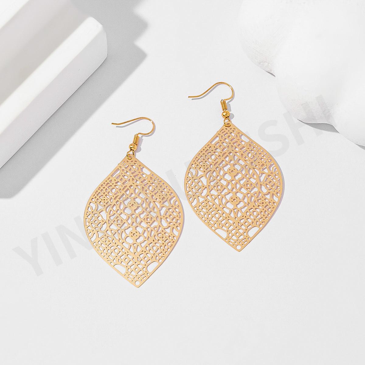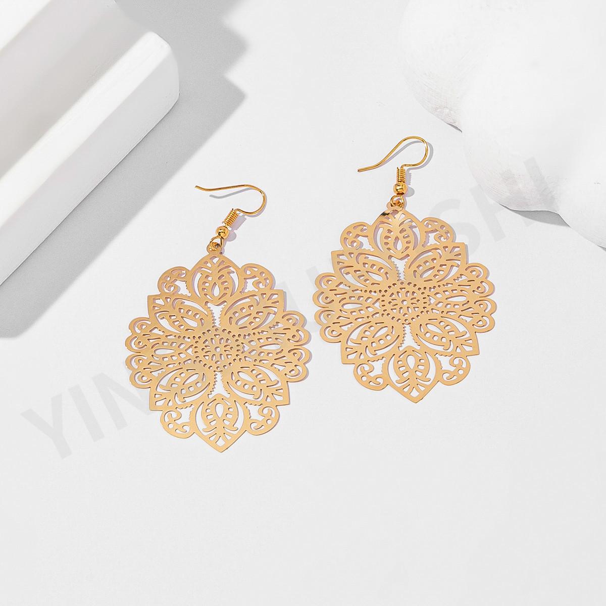 Nueva serie creativa de pendientes huecos dorados para mujer, moda retro, red roja con fabricantes de joyas para las orejas, venta al por mayor