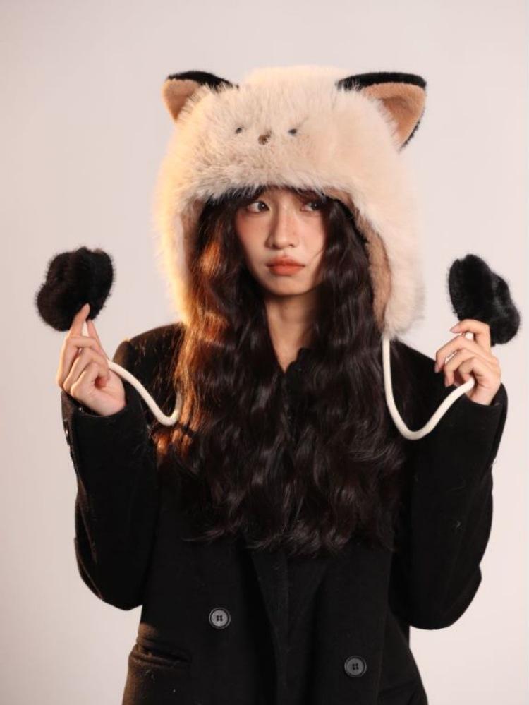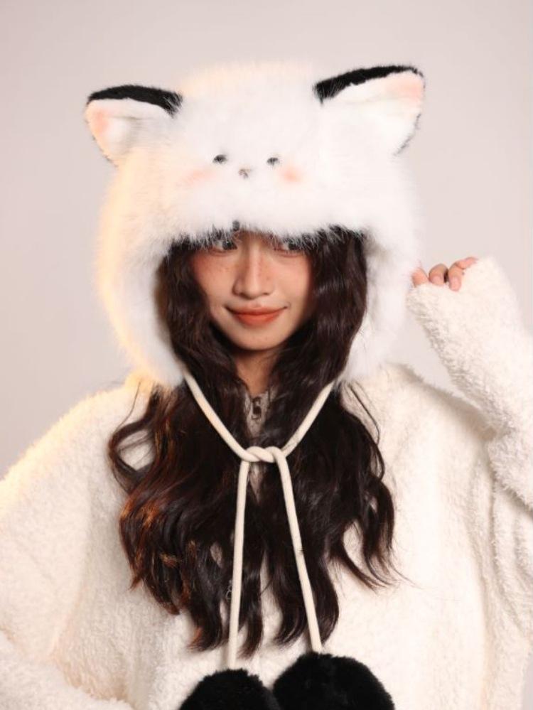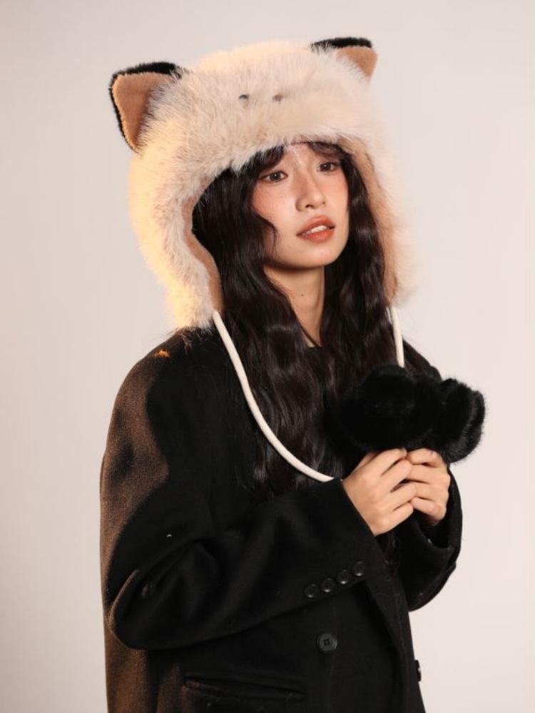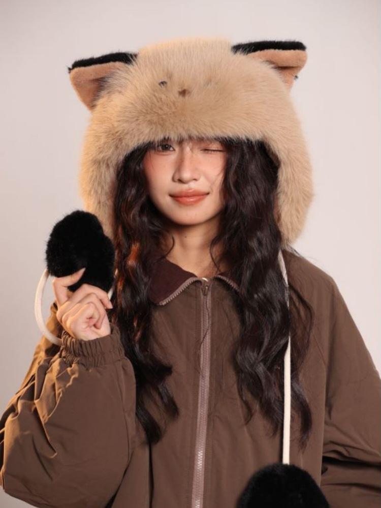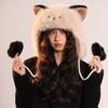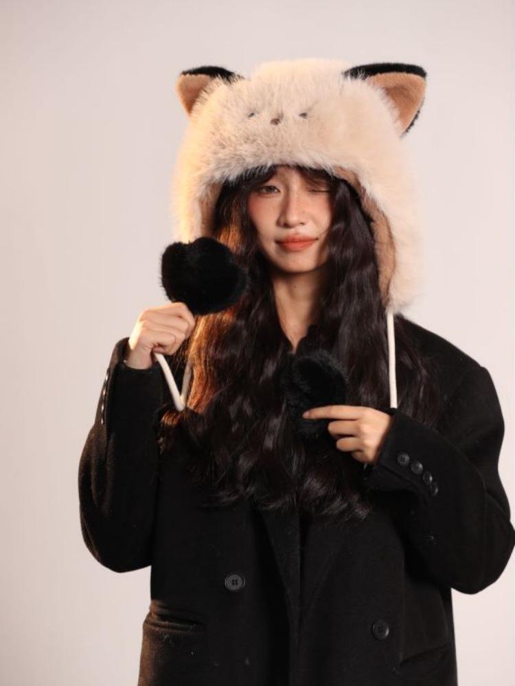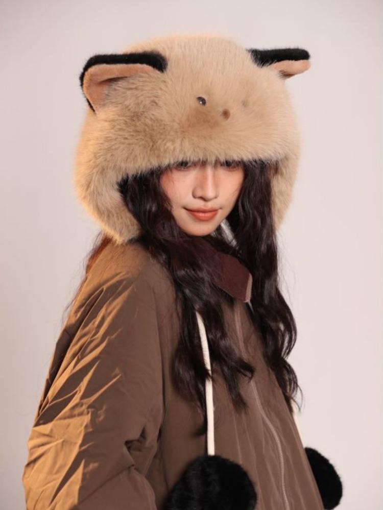 Bonito gorro de Lei Feng de peluche con dibujos animados para mujer, para otoño e invierno, grueso y cálido, con protección para las orejas, para estudiantes, pequeño gorro de montar a prueba de viento.