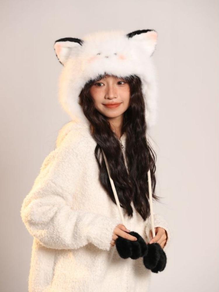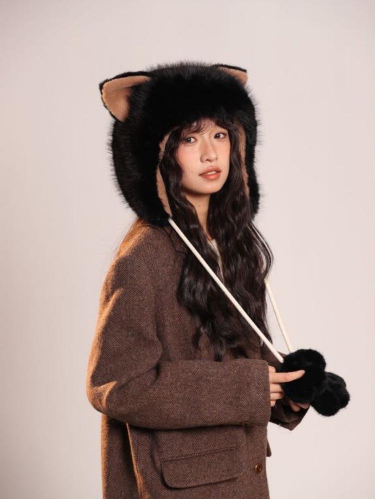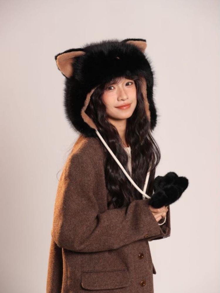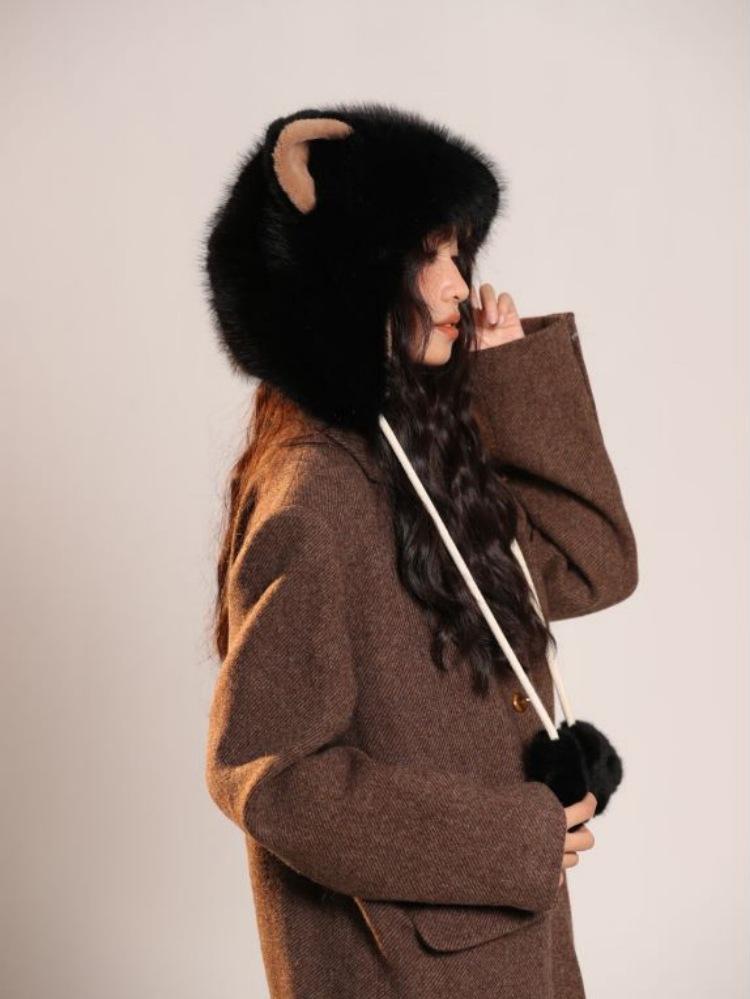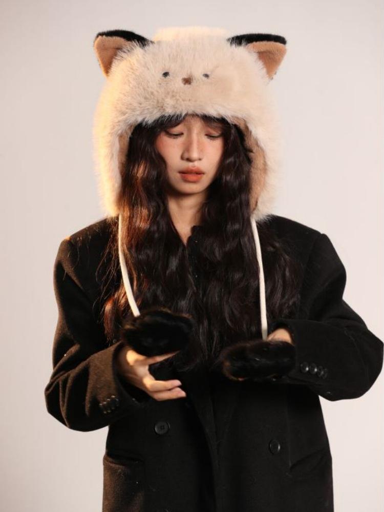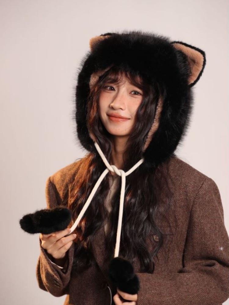 Bonito gorro de Lei Feng de peluche con dibujos animados para mujer, para otoño e invierno, grueso y cálido, con protección para las orejas, para estudiantes, pequeño gorro de montar a prueba de viento.