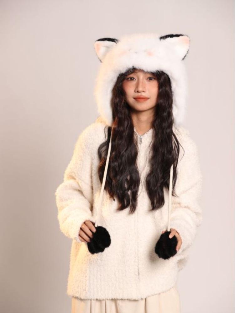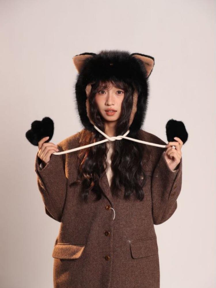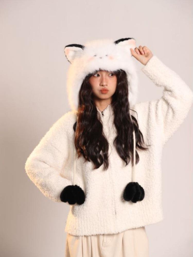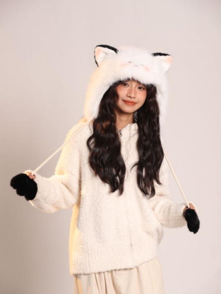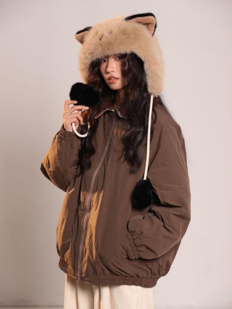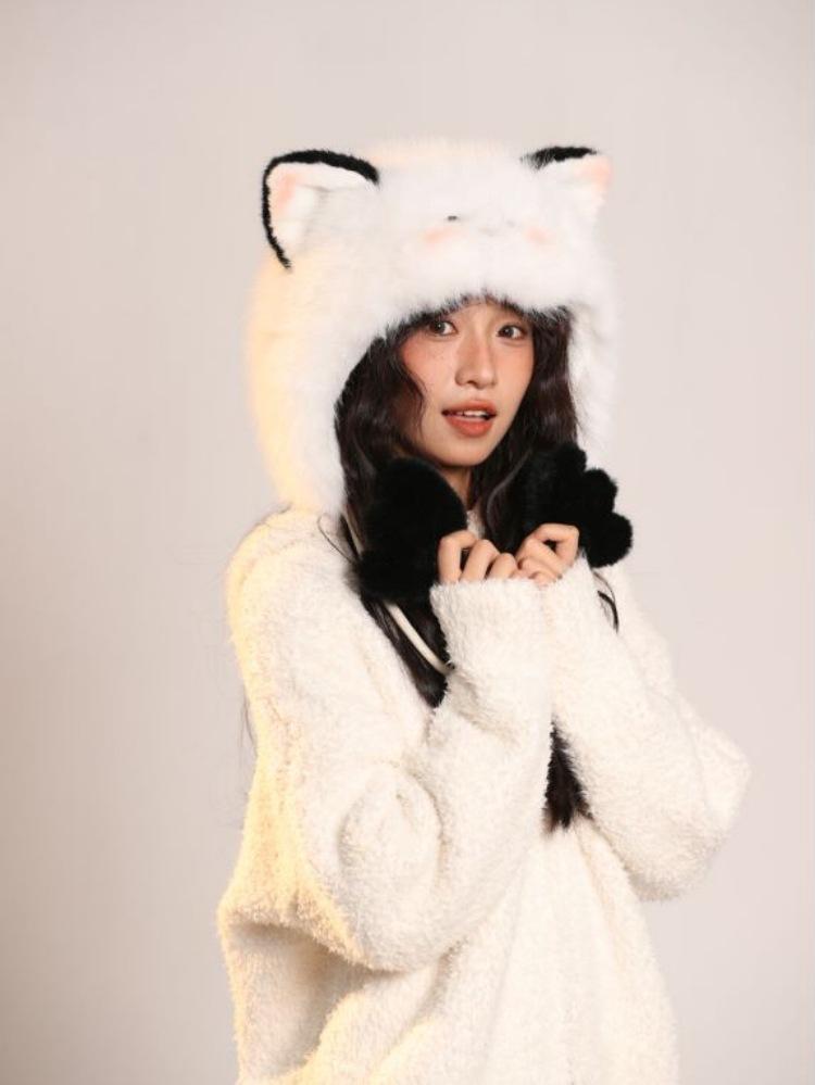 Bonito gorro de Lei Feng de peluche con dibujos animados para mujer, para otoño e invierno, grueso y cálido, con protección para las orejas, para estudiantes, pequeño gorro de montar a prueba de viento.