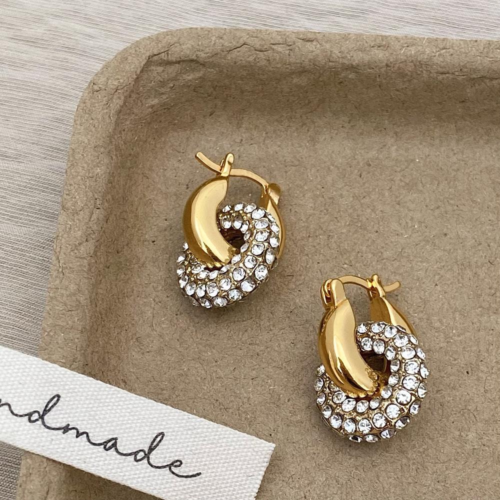 Aretes de Aro Redondos Geométricos Retro Franceses con Circonita para Mujer, Simples y Versátiles, Aretes Elegantes de Nicho, Aretes, Estilo Cool
