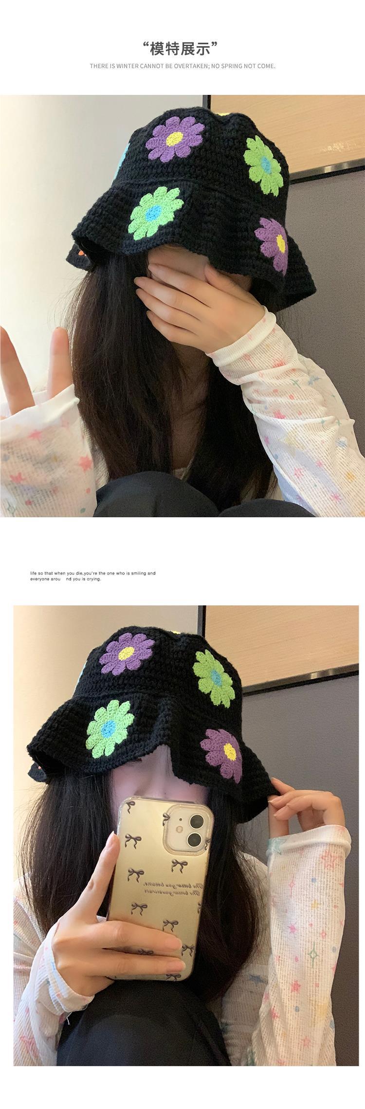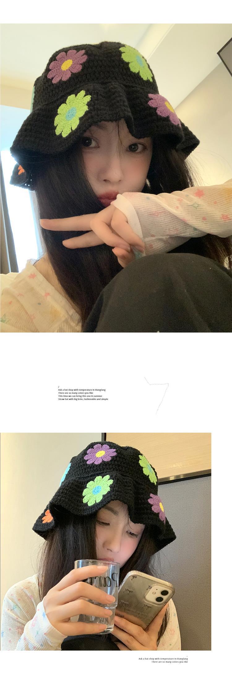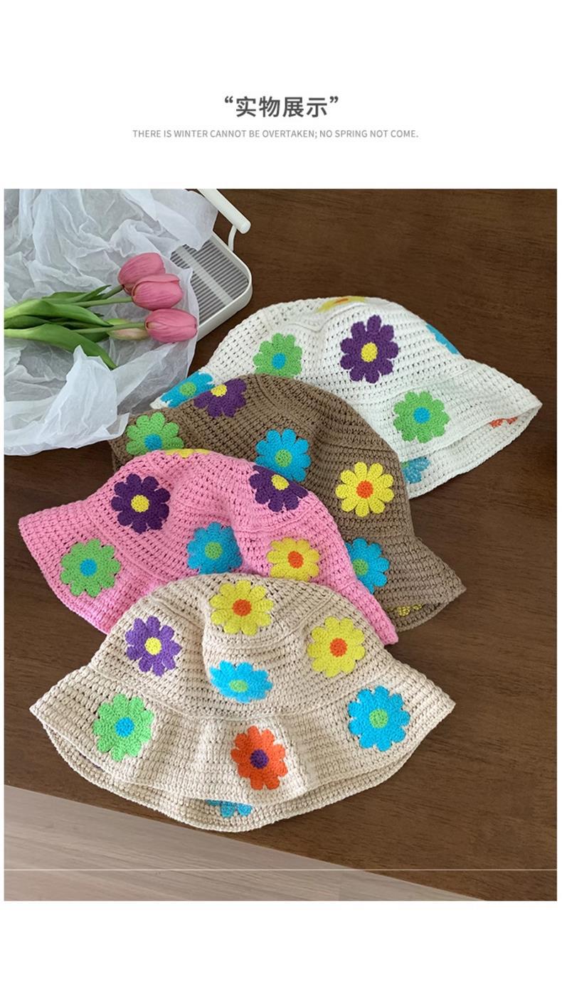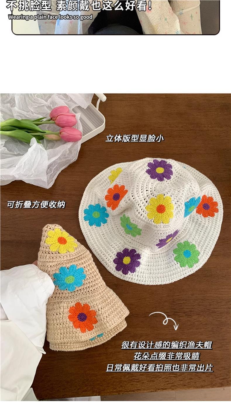 Compra Sombrero de Pescador Tejido a Mano con Flores Coloridas de Estilo Japonés para Mujer, Versátil, Dulce y Favorecedor, Sombrero de Cubeta de Lana Fina con Pequeño Calado al por mayor en Joom.pro