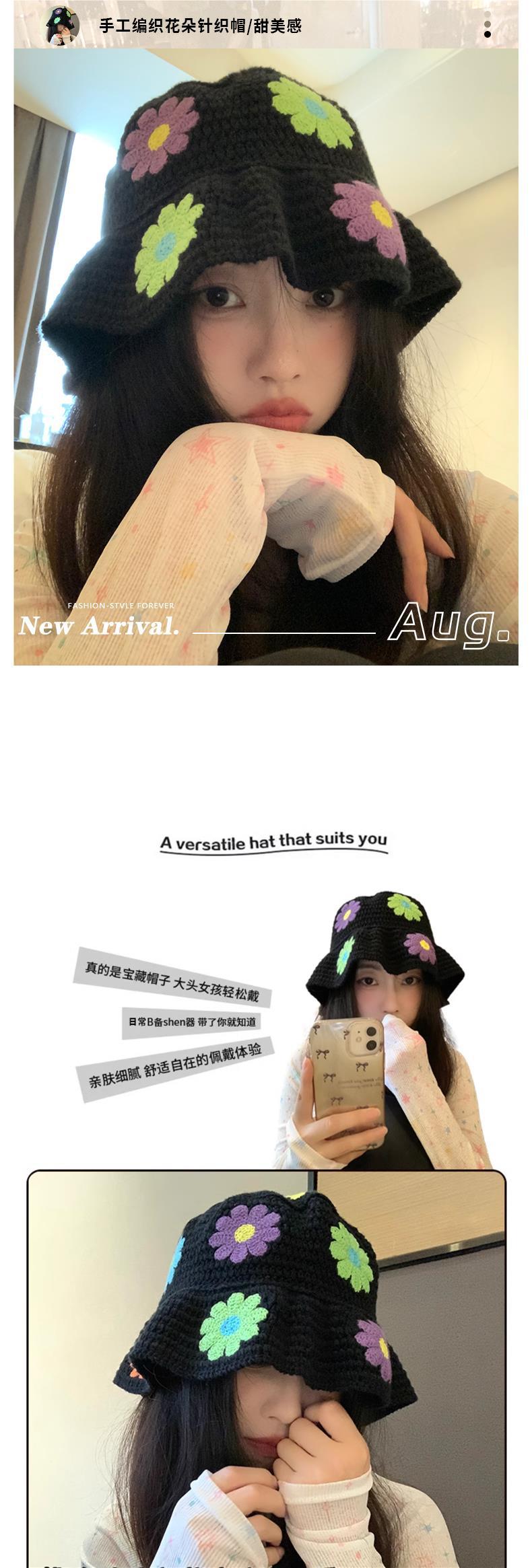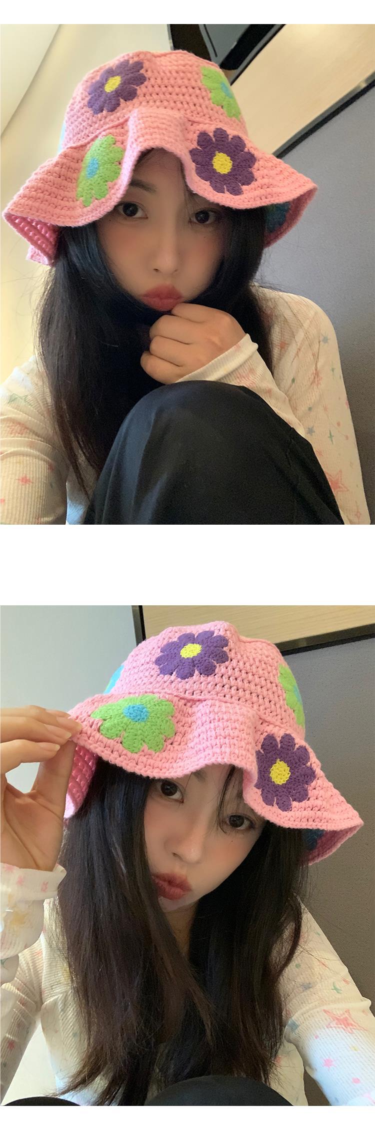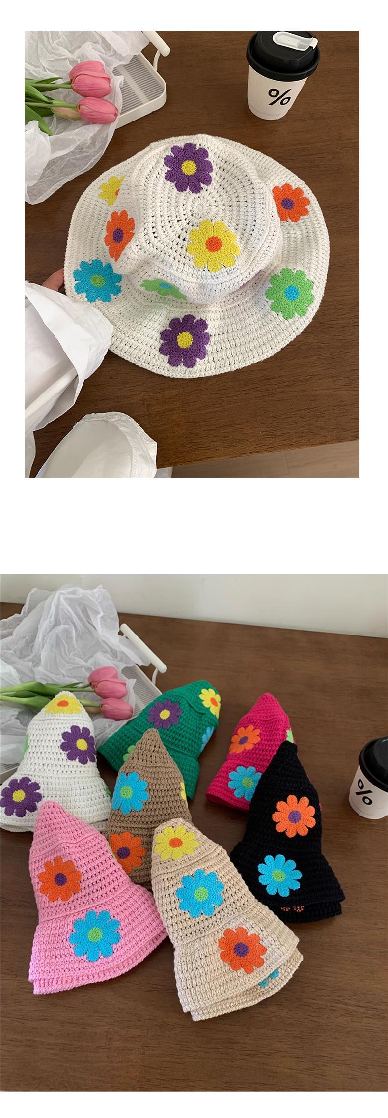 Compra Sombrero de Pescador Tejido a Mano con Flores Coloridas de Estilo Japonés para Mujer, Versátil, Dulce y Favorecedor, Sombrero de Cubeta de Lana Fina con Pequeño Calado al por mayor en Joom.pro