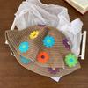 Sombrero de Pescador Tejido a Mano con Flores Coloridas de Estilo Japonés para Mujer, Versátil, Dulce y Favorecedor, Sombrero de Cubeta de Lana Fina con Pequeño Calado