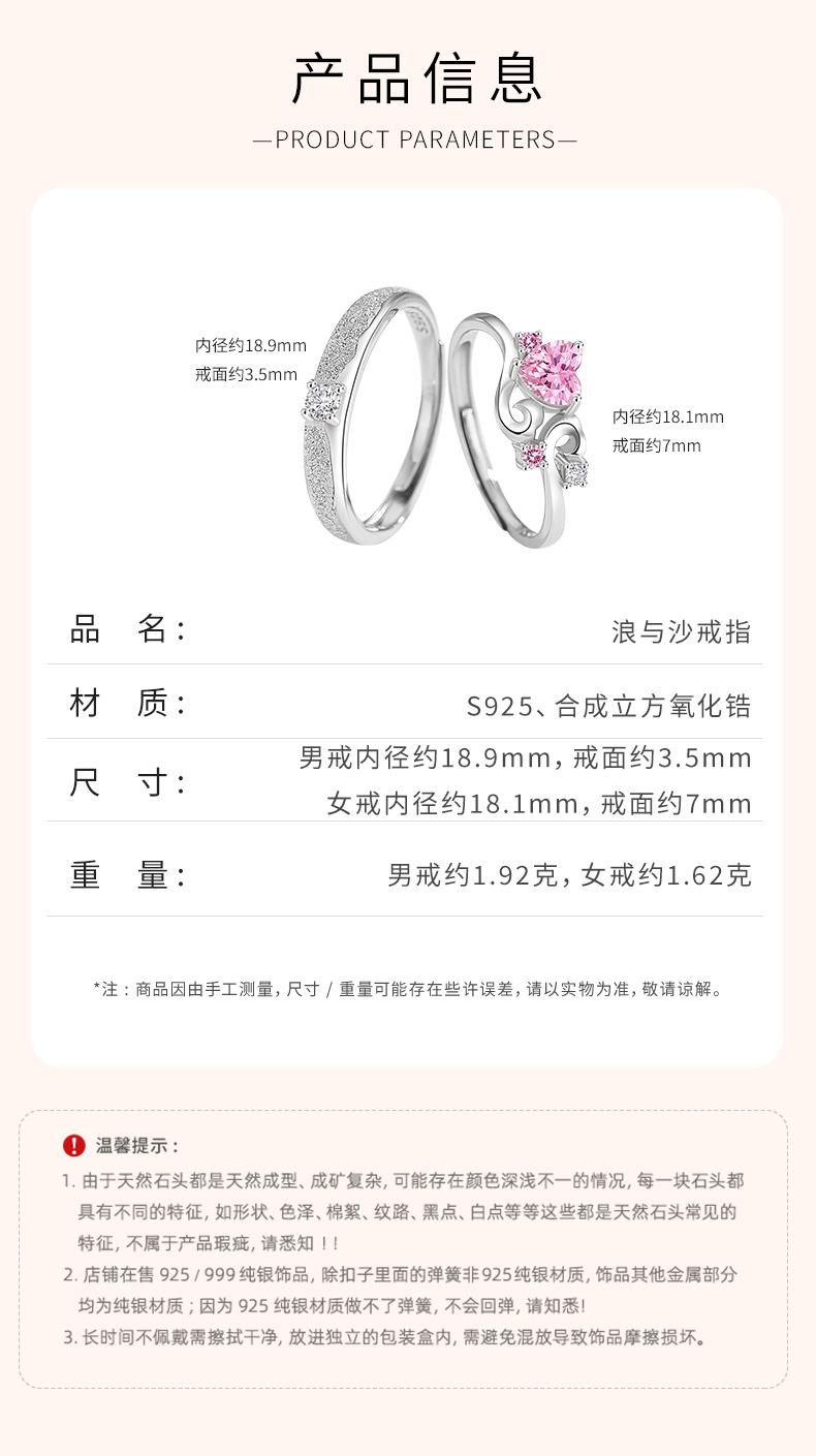 Anillo de pareja Tachia Original Wave and Sand en plata de ley S925 con nicho de amor avanzado, regalo de San Valentín