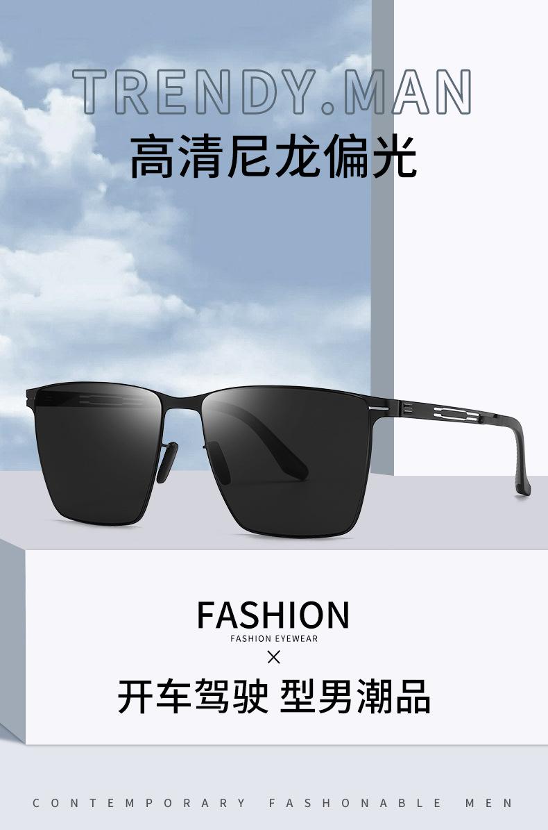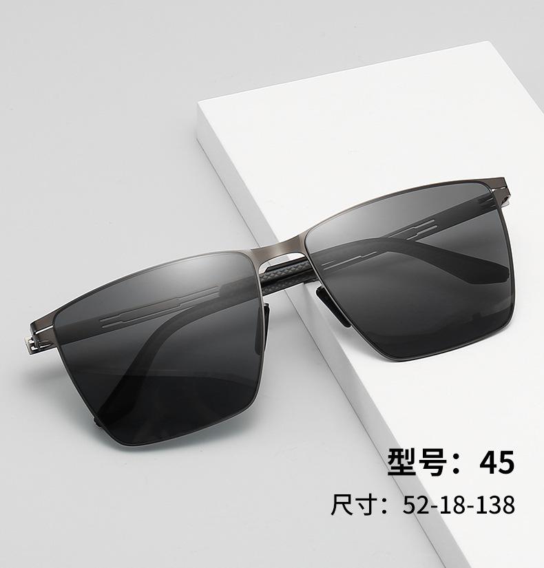 45 Verano Nuevo Estilo Gafas de Sol de Nailon para Hombre, Gafas de Sol Cuadradas de Montura Grande Coreanas para Conducir, Gafas de Sol Metálicas