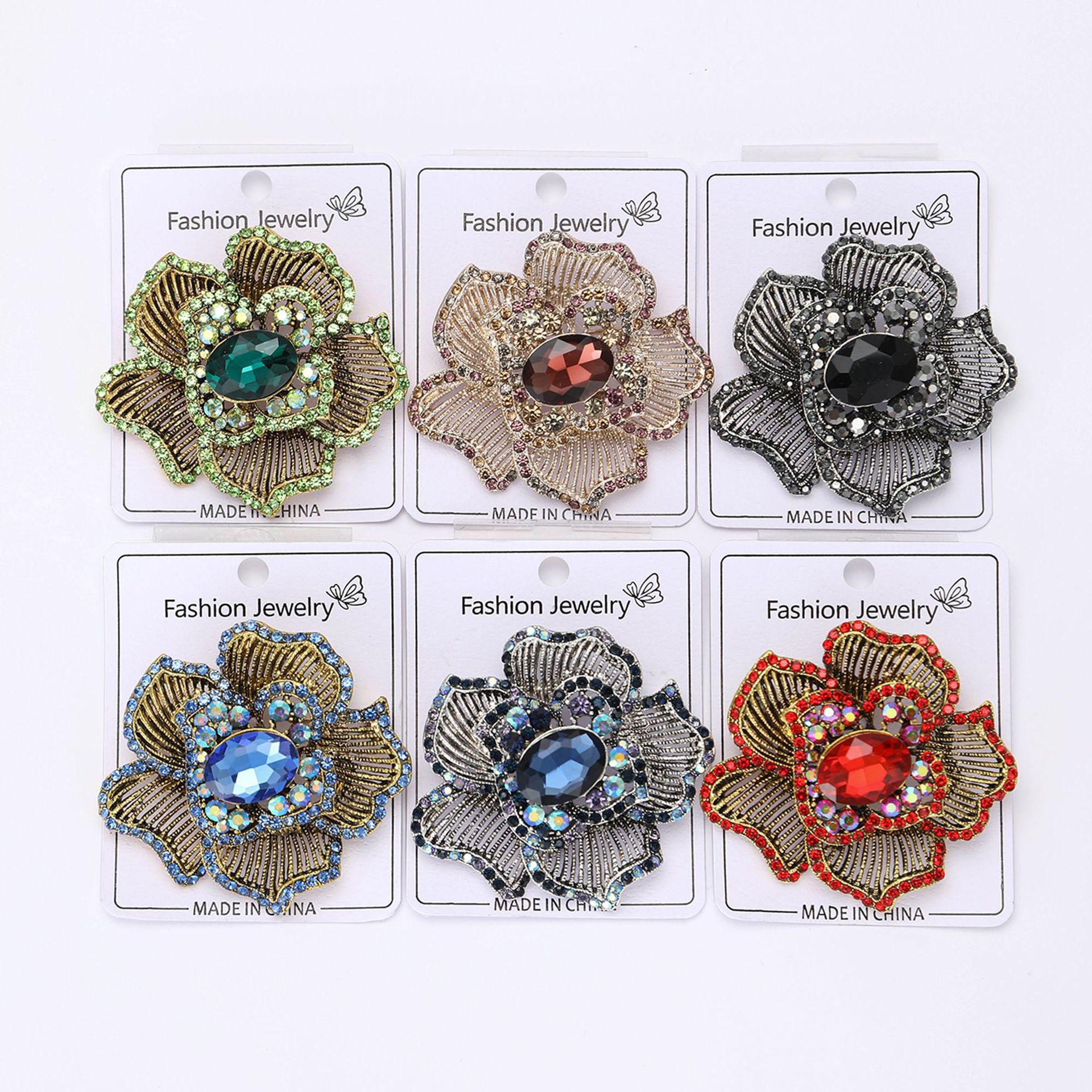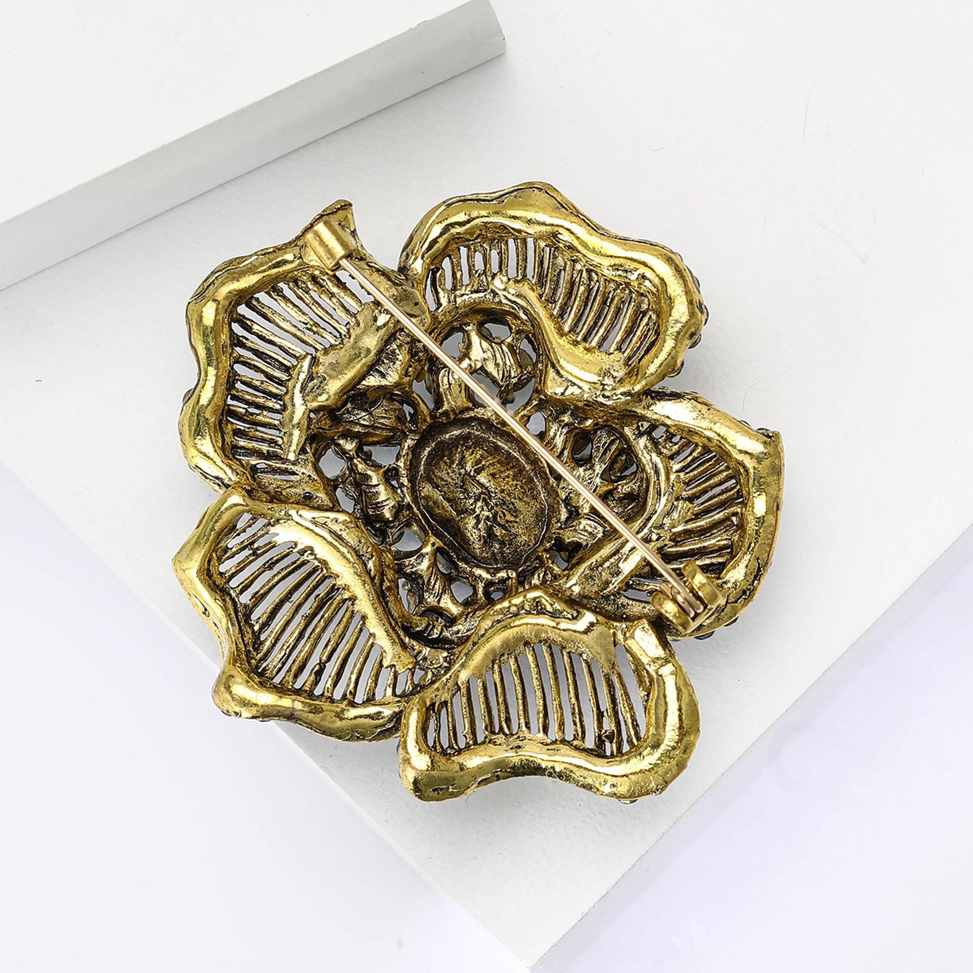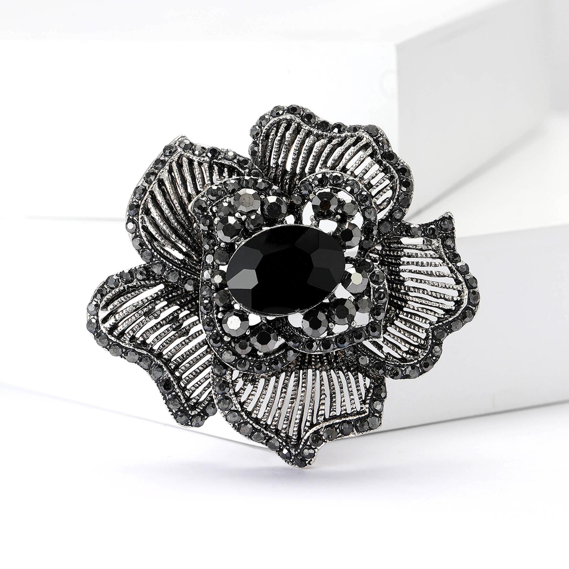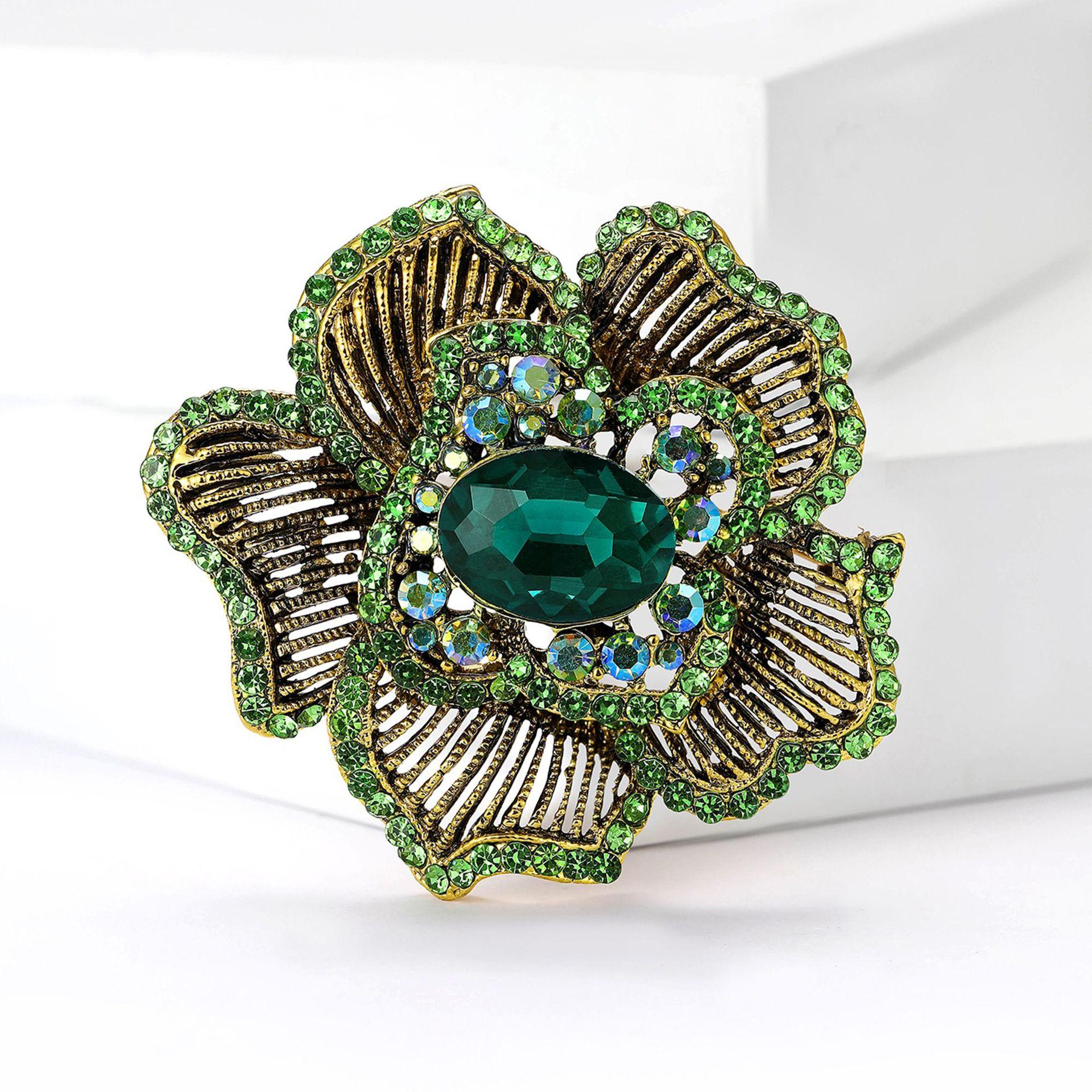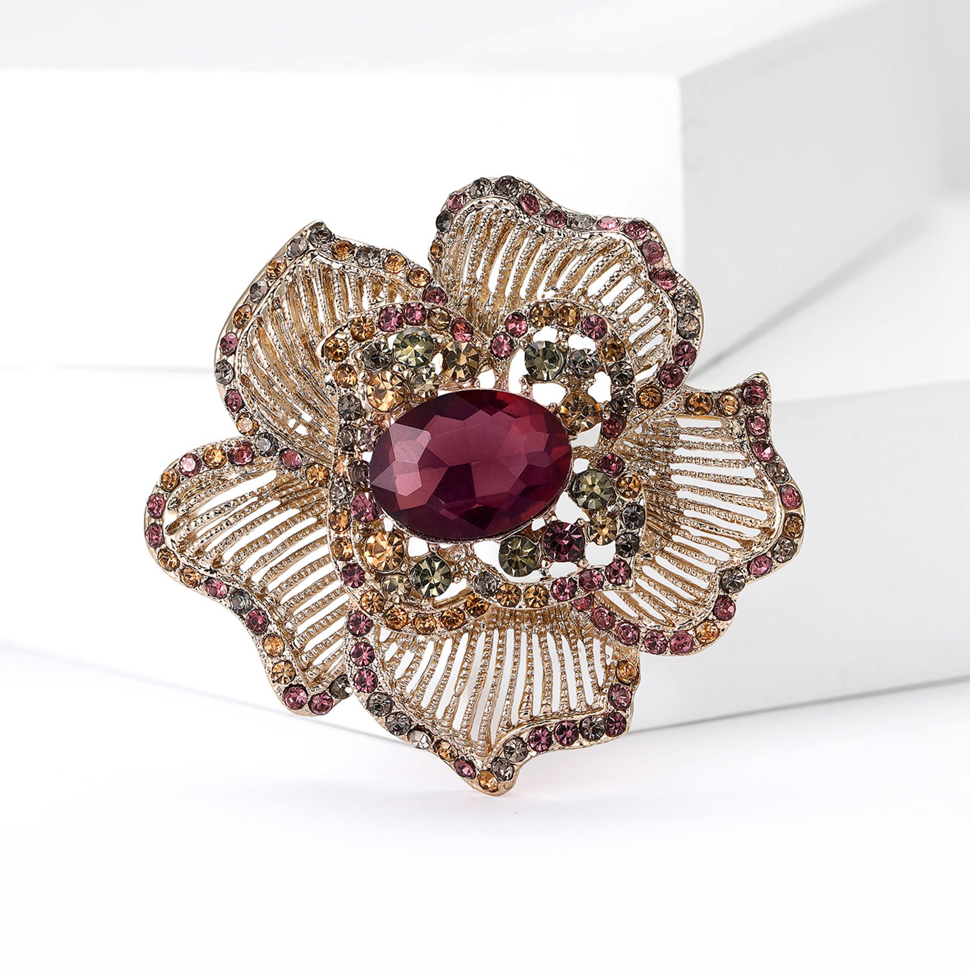Nuevo broche de flores a rayas con diamantes de imitación de aleación industrial retro, broche creativo de alta gama para mujer, broche de joyería con ramillete