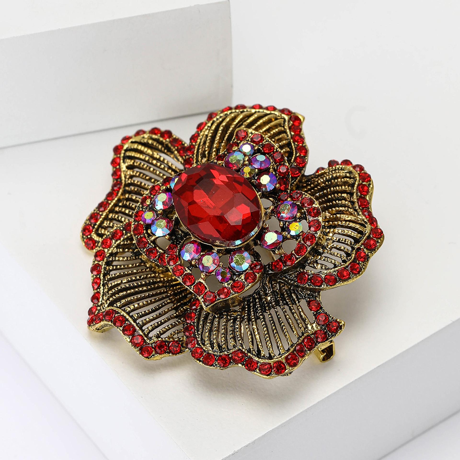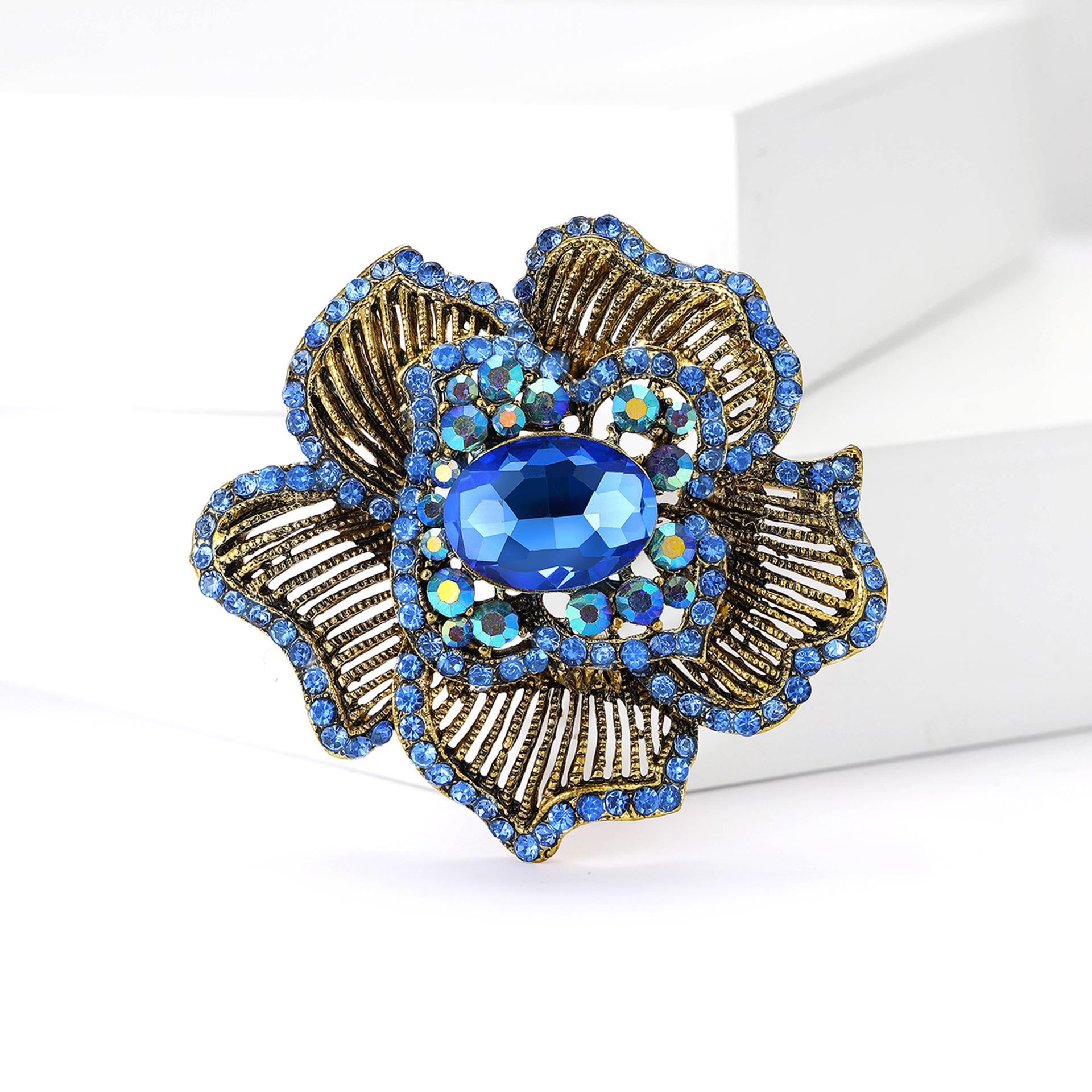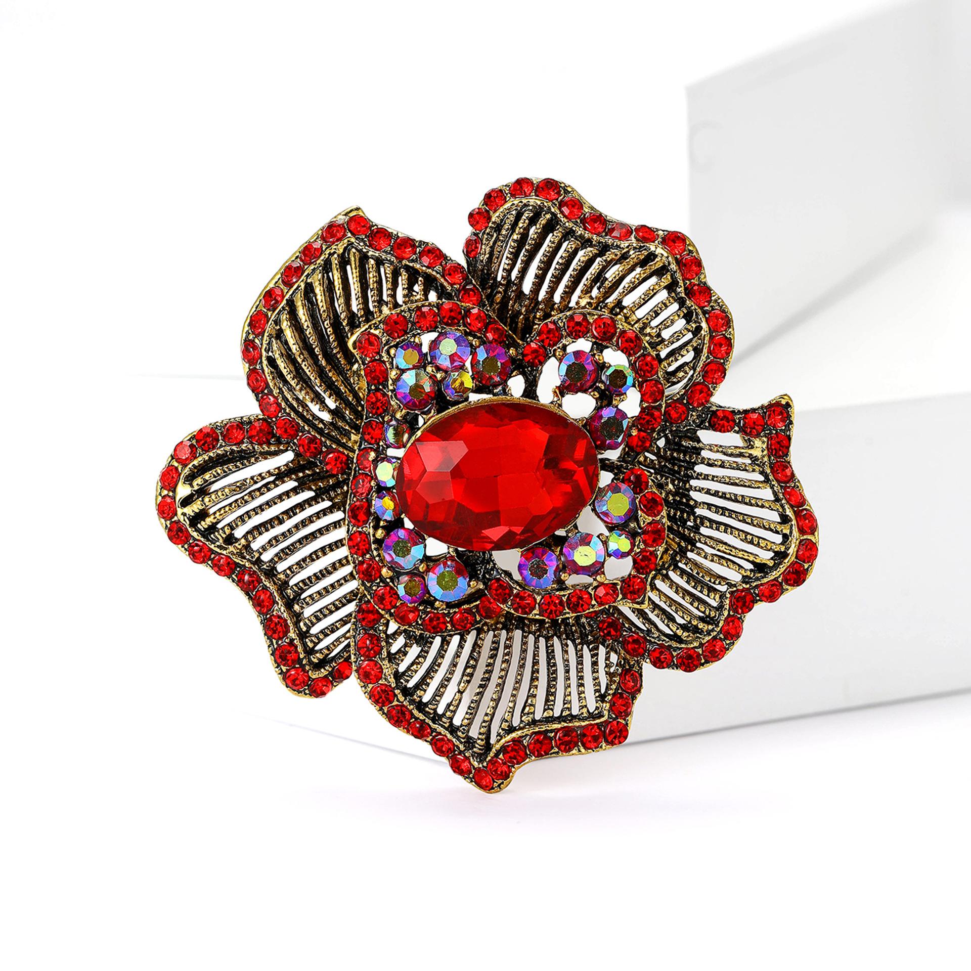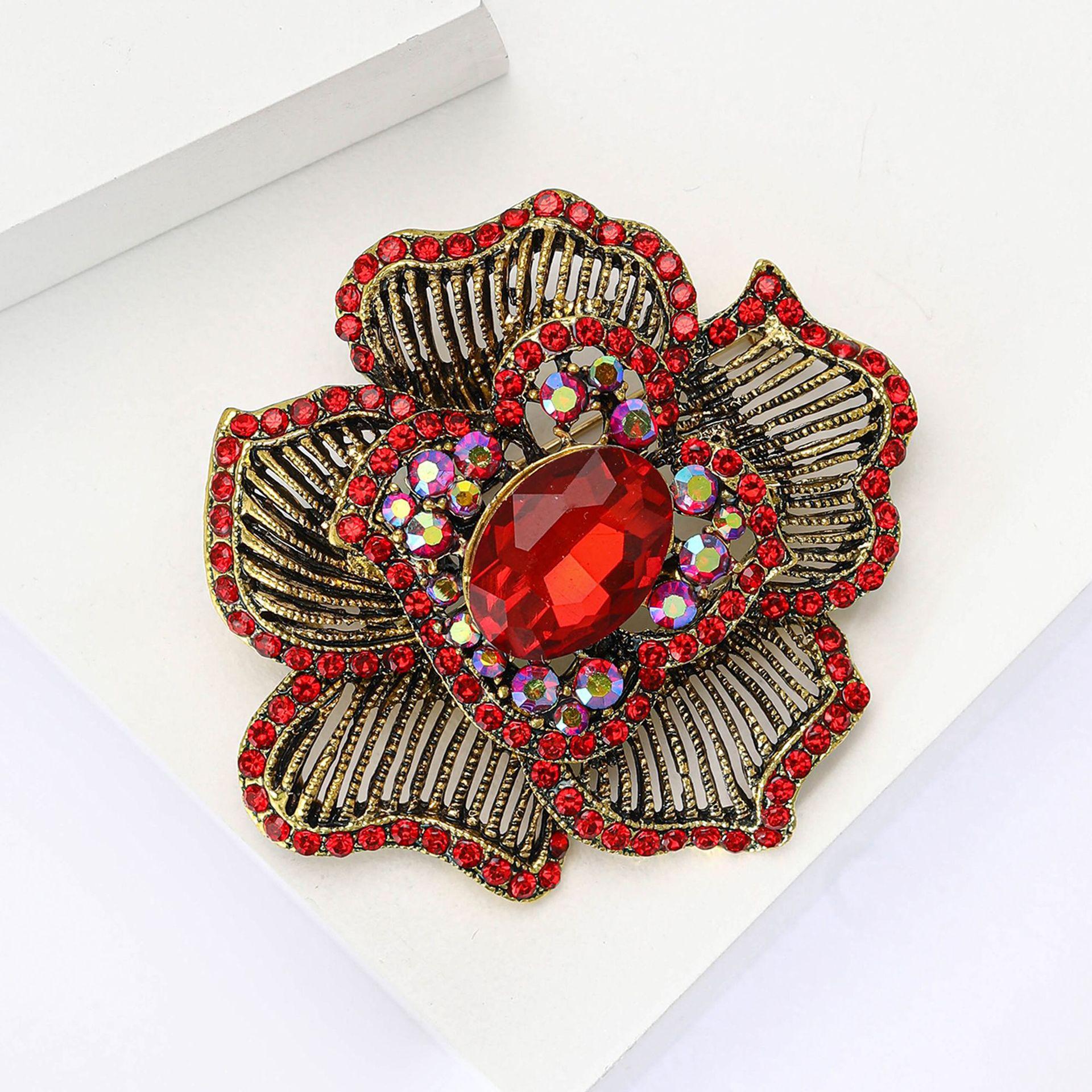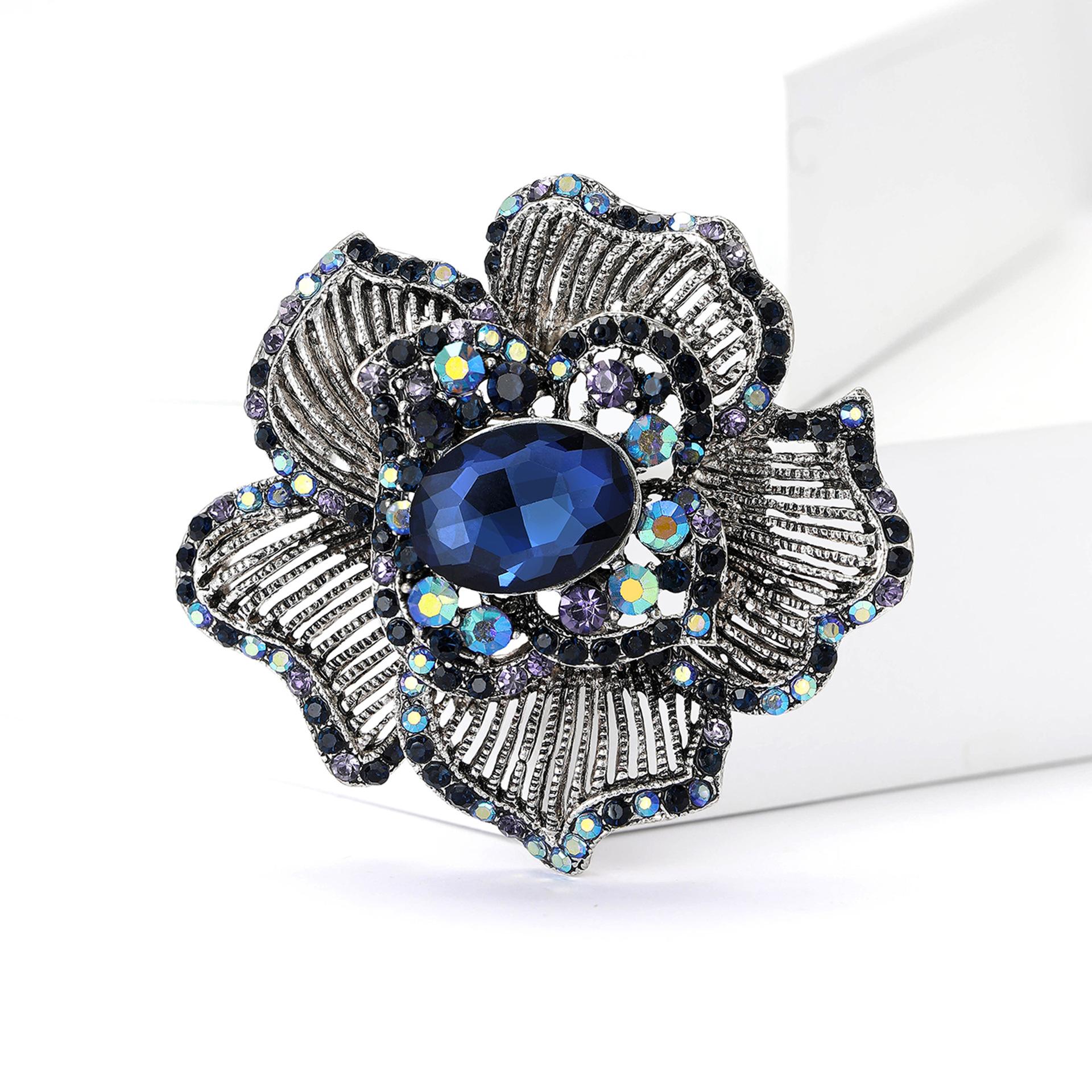 Nuevo broche de flores a rayas con diamantes de imitación de aleación industrial retro, broche creativo de alta gama para mujer, broche de joyería con ramillete