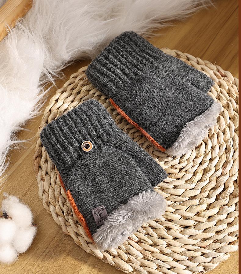 Guantes de invierno para hombre, cálidos, resistentes al frío, para estudiantes, escritura, estilo coreano, de moda, con forro polar, de lana gruesa, de medio corte, con dedos abiertos.