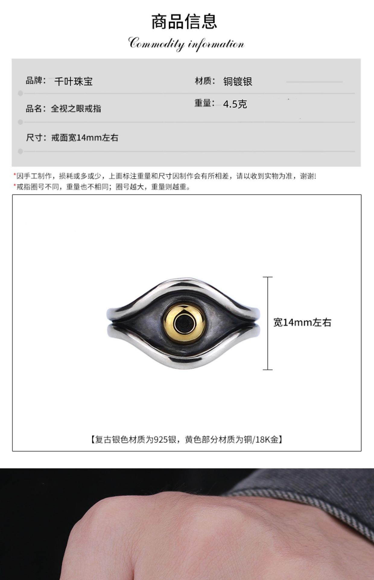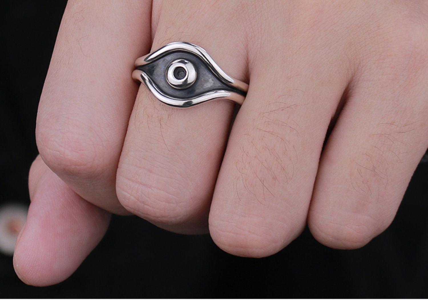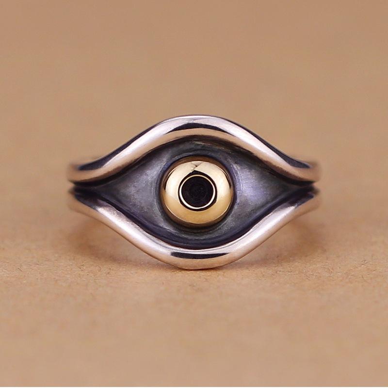 Anillo Ojo de la Visión Retro Chiba Plata Tailandesa Retro Ojo de Dios Decoración Moda para Hombre Anillo Ojo Mágico