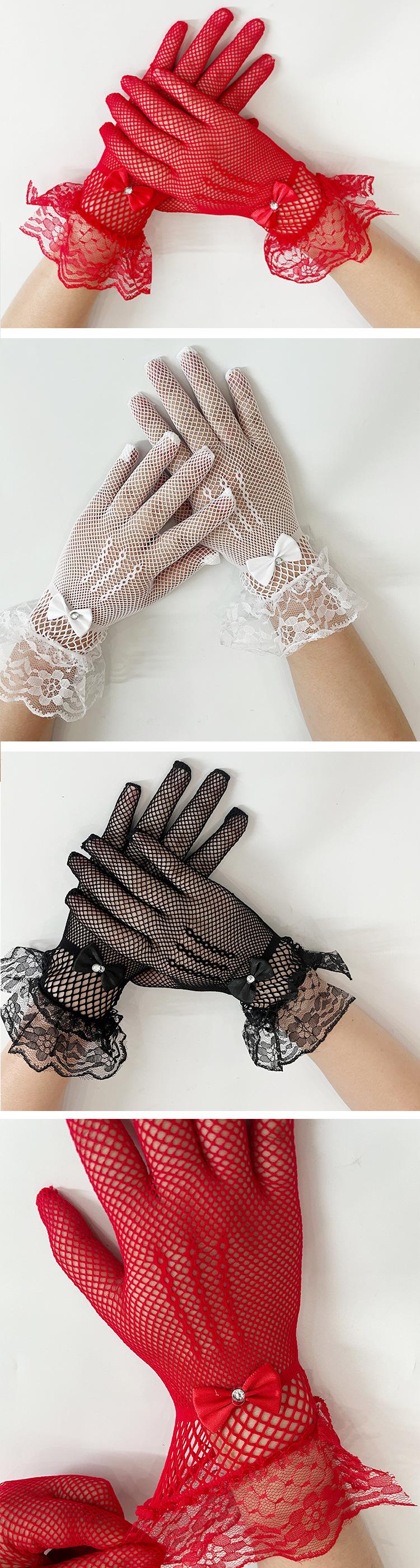 Guantes Cortos de Encaje Guantes Transparentes para Boda Guantes de Boda Sexy con Lazo Guantes Blancos Lolita