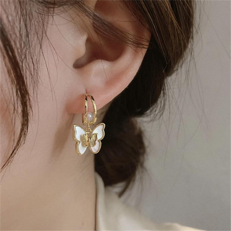 Pendientes de mariposa tridimensionales de doble capa con aguja de plata s925, 2023. Nuevos pendientes de lujo ligeros de alta gama, pequeños y exquisitos para mujer.