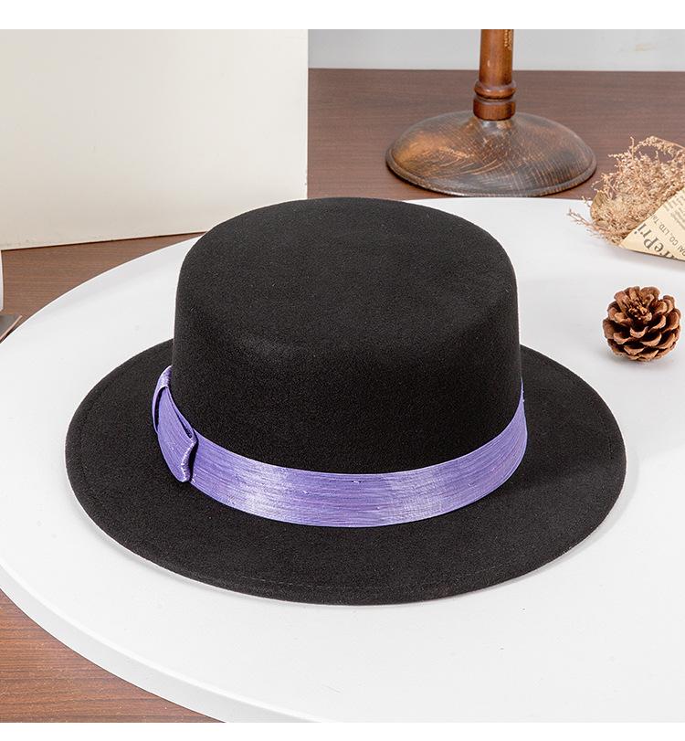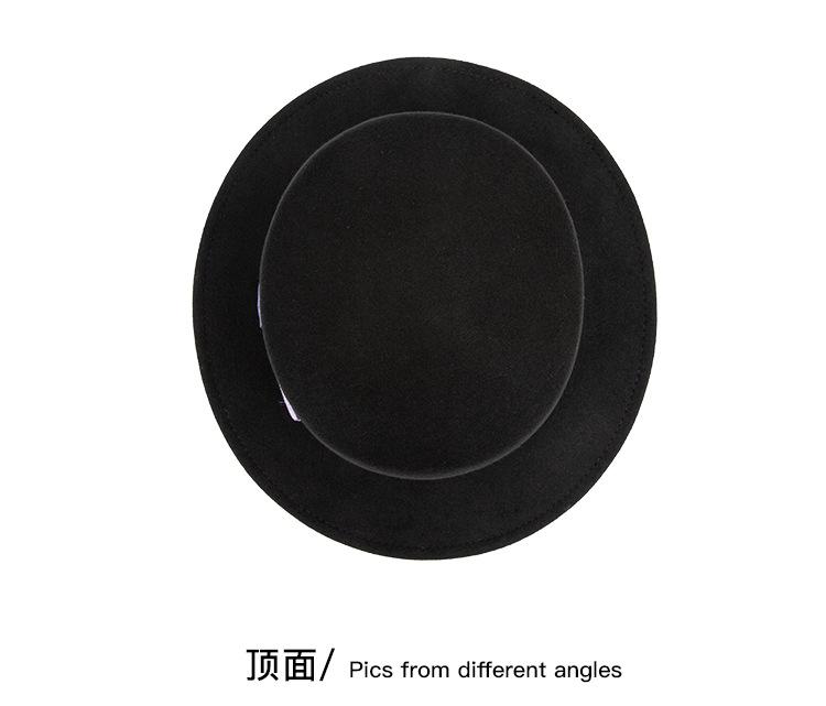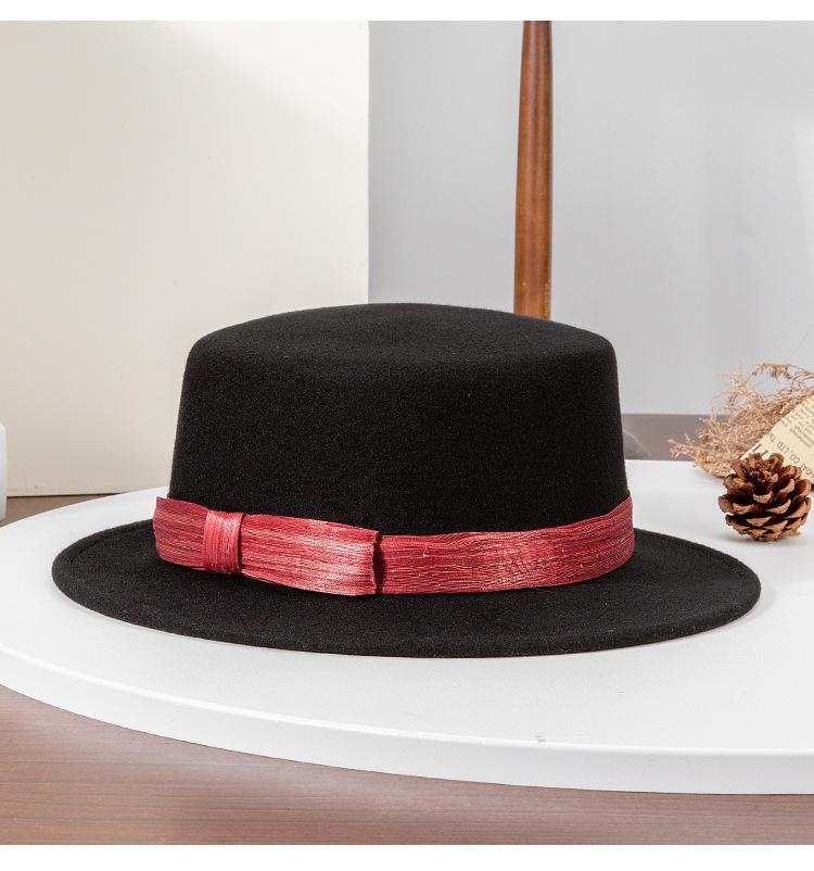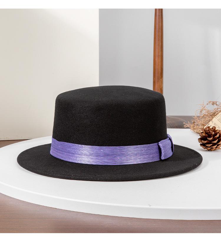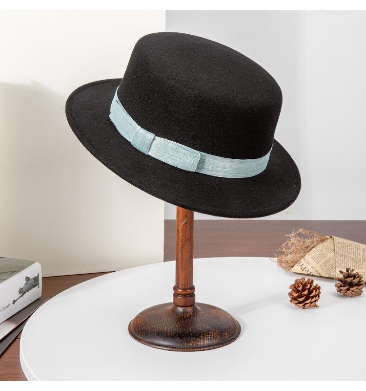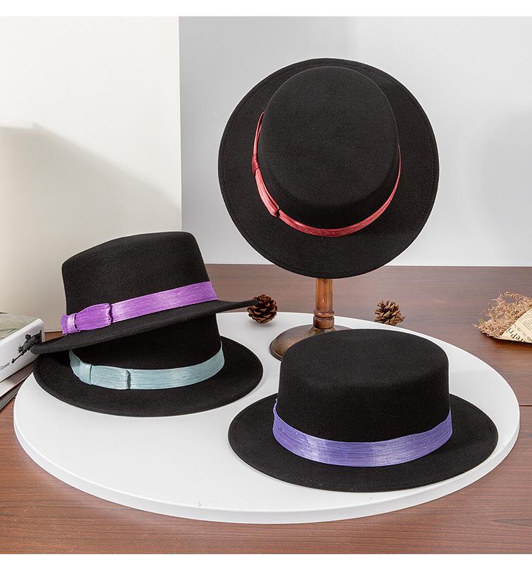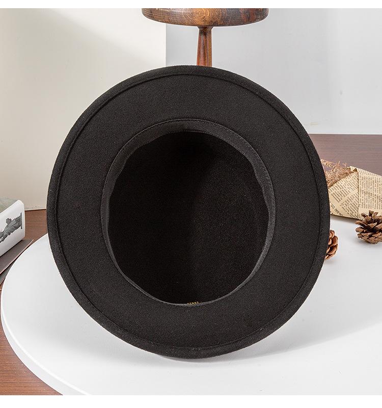 2025 Nuevo Otoño e Invierno Sombrero de Lana Retro Europeo y Americano Sombrero de Fieltro Decorativo de Seda y Lino de Copa Plana Británico Sombrero de Escenario