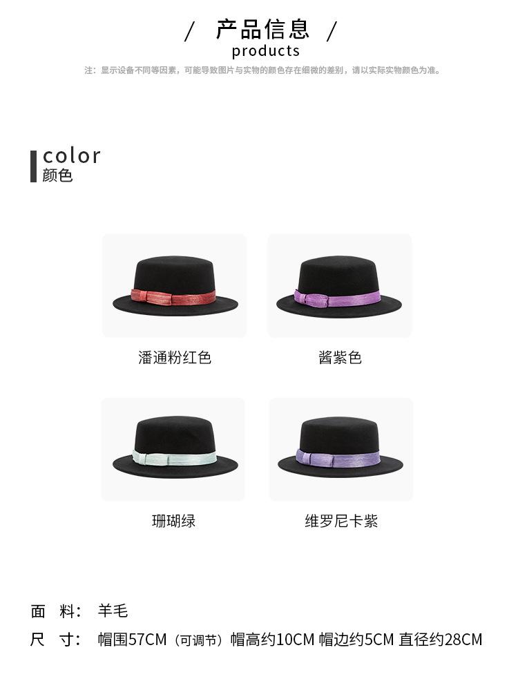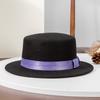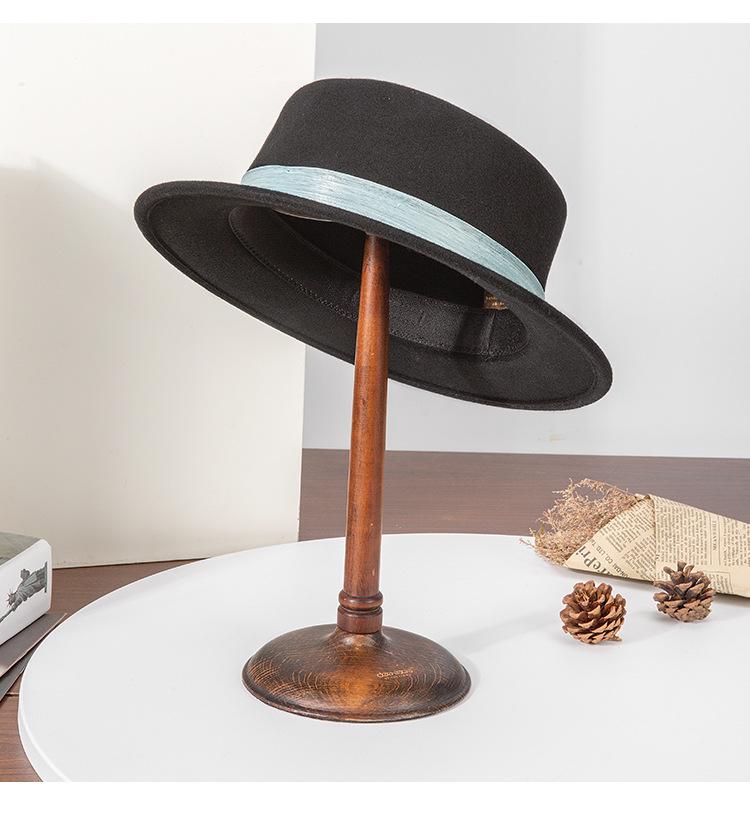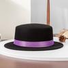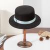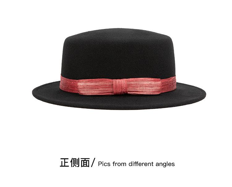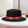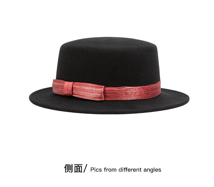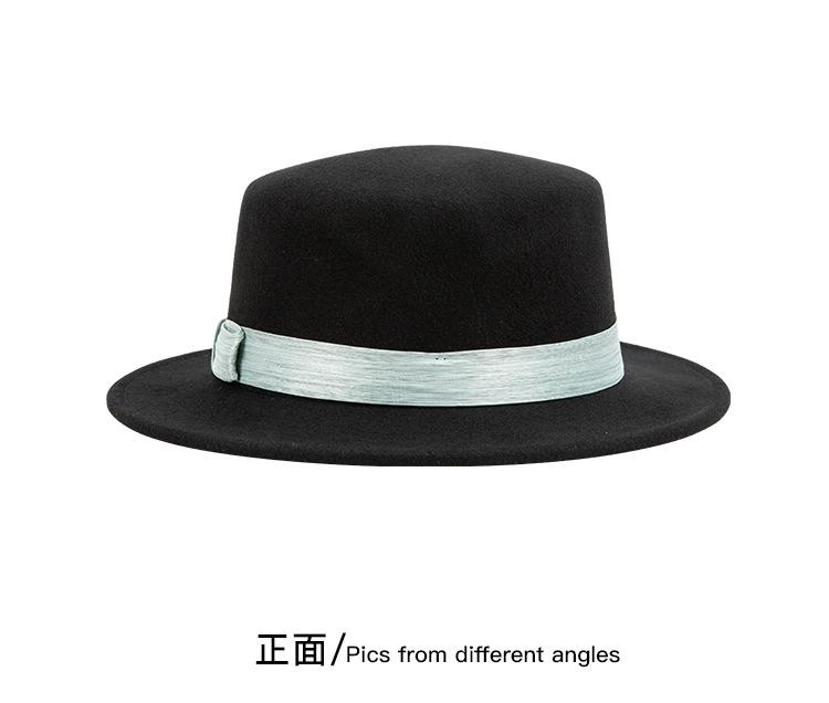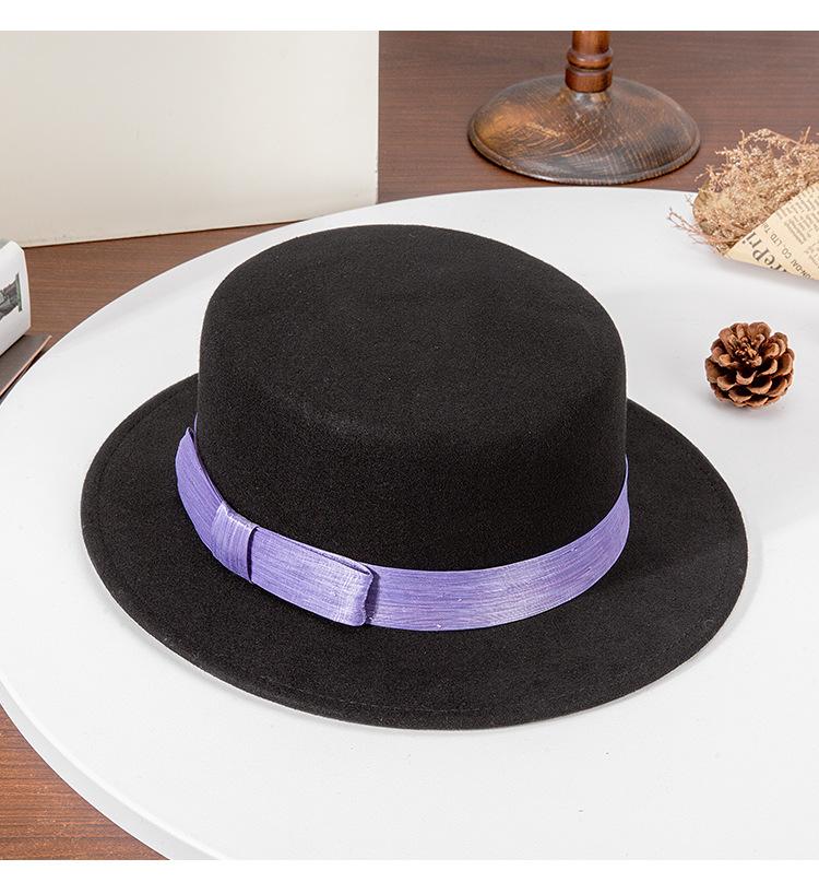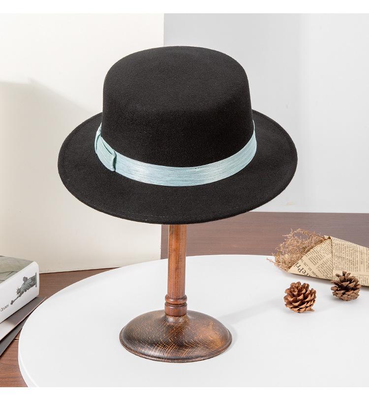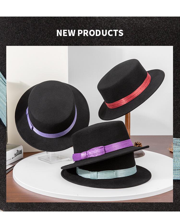 2025 Nuevo Otoño e Invierno Sombrero de Lana Retro Europeo y Americano Sombrero de Fieltro Decorativo de Seda y Lino de Copa Plana Británico Sombrero de Escenario