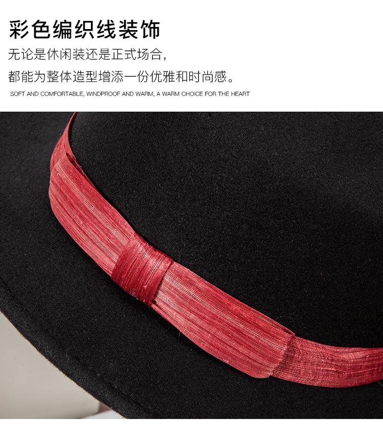 Linglong 2024 Otoño e Invierno Nuevo sombrero de jazz británico para damas, sombrero de caballero de ala enrollada de lana, sombrero de fieltro de ala ancha retro