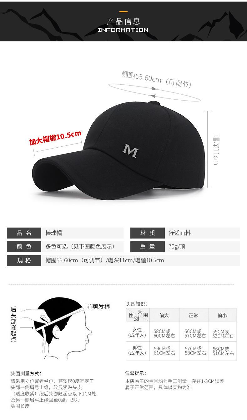 Gorra de béisbol de ala larga nueva para primavera y verano 2024 Protección solar para exteriores Sombrero de lona para hombre Sombrero casual de moda