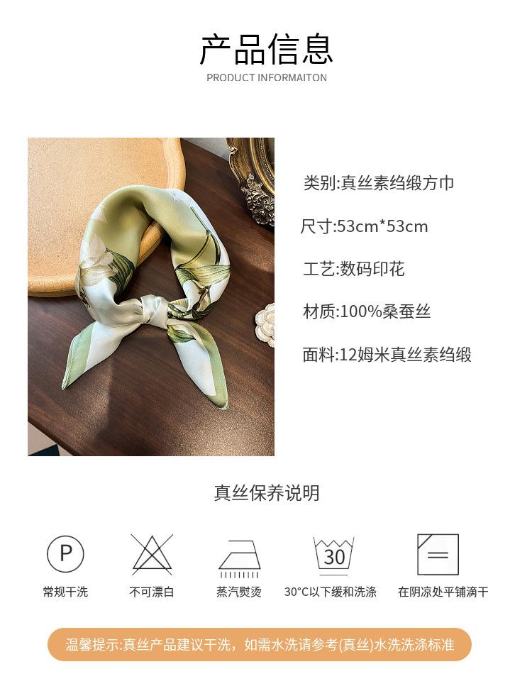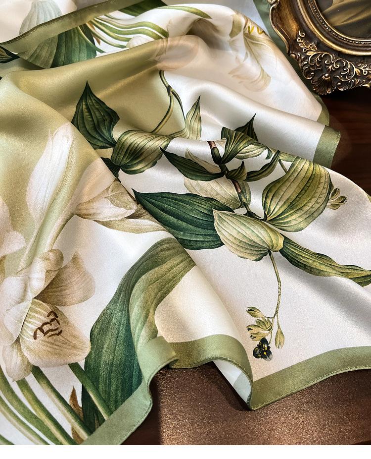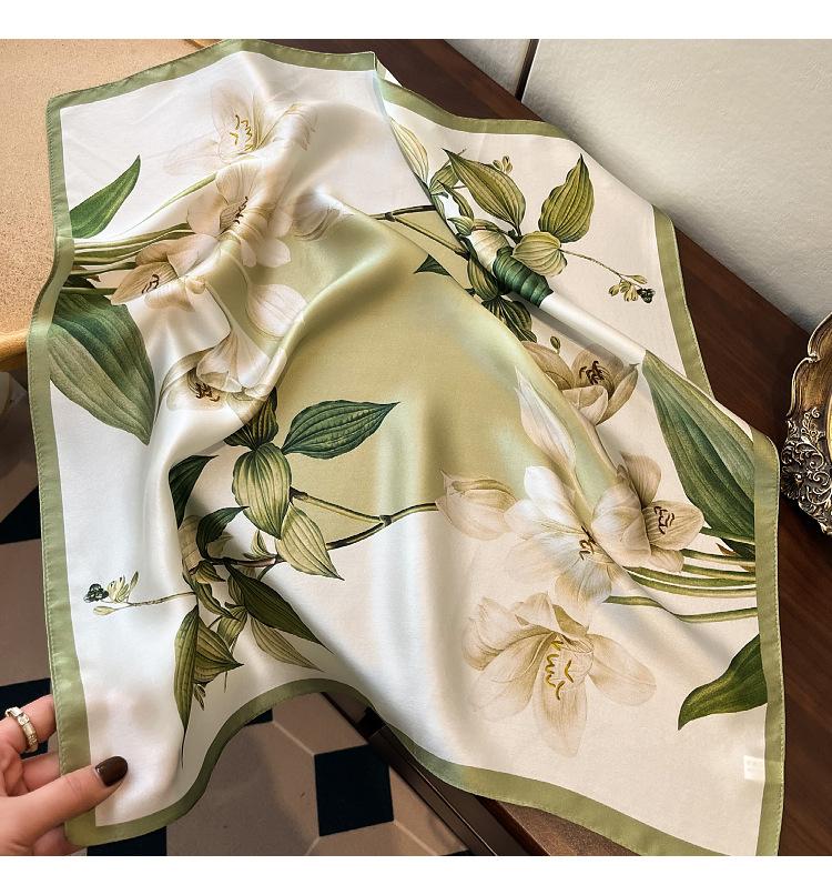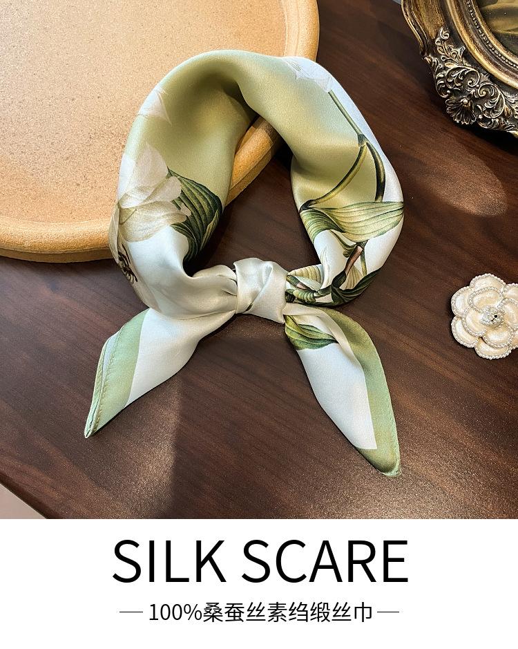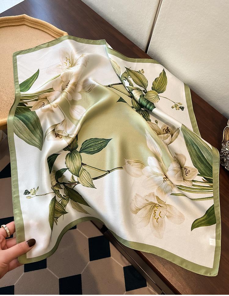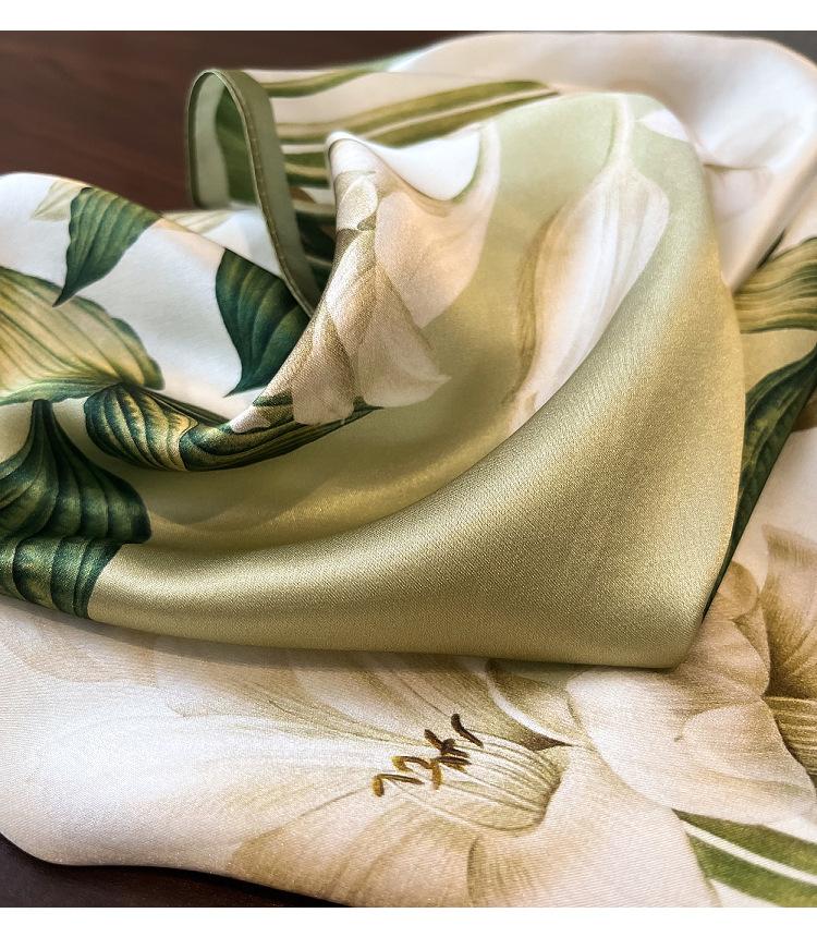 Pañuelo de seda 100% para mujer nuevo primavera y verano Elegante Lirio seda de morera pañuelo cuadrado moda viajero simple 53 pañuelo pequeño