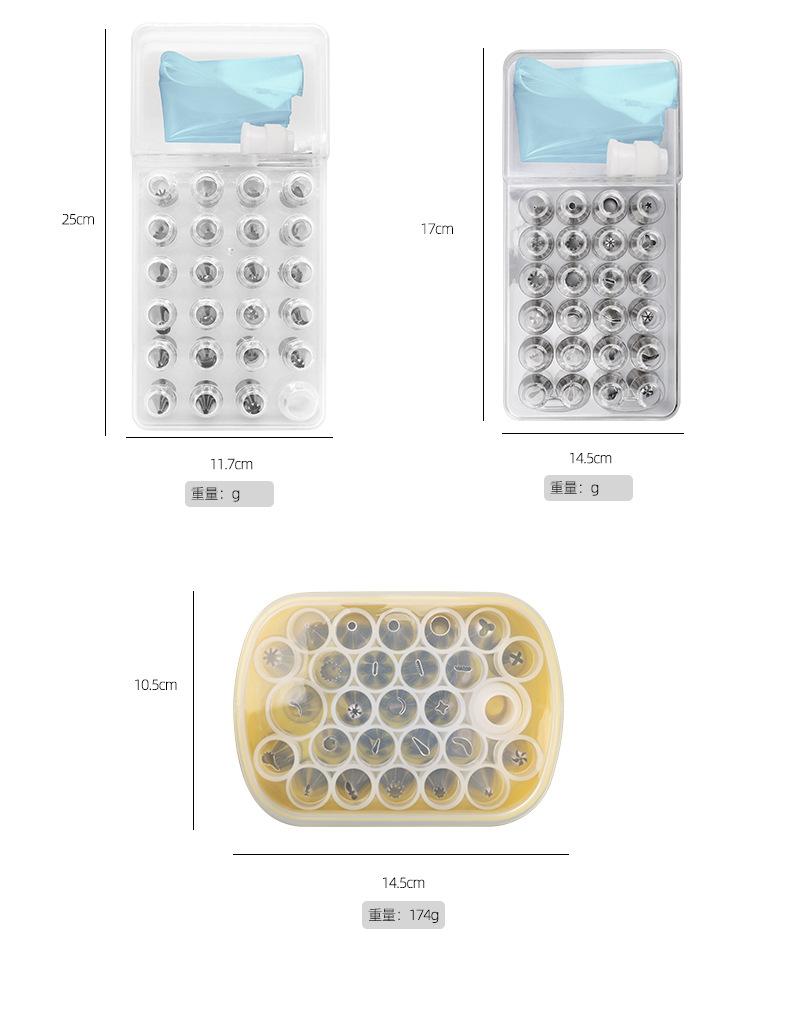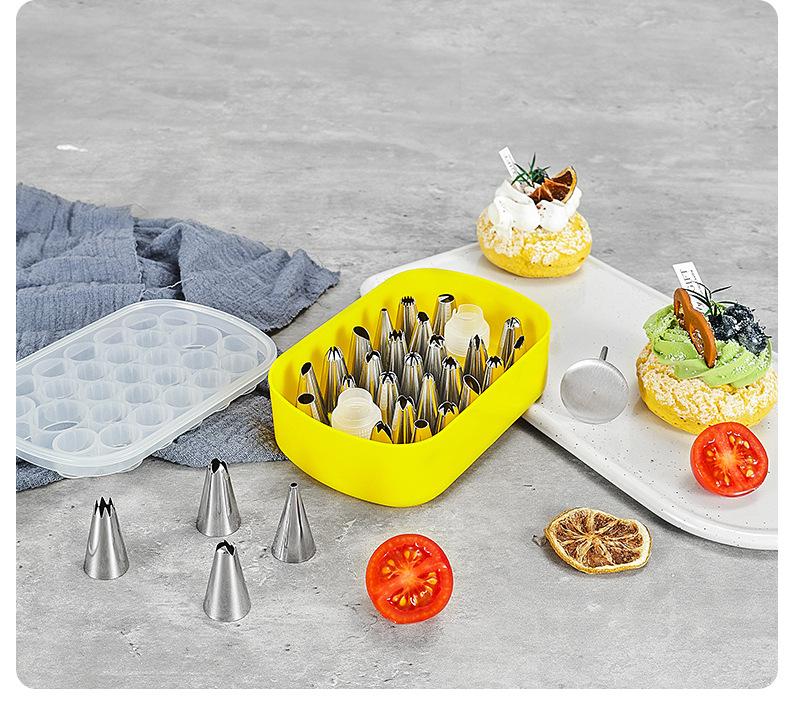 Boquilla de acero inoxidable 430 de 25 cabezales en caja para repostería, ideal para galletas, crema de soja soluble, herramientas para hornear.