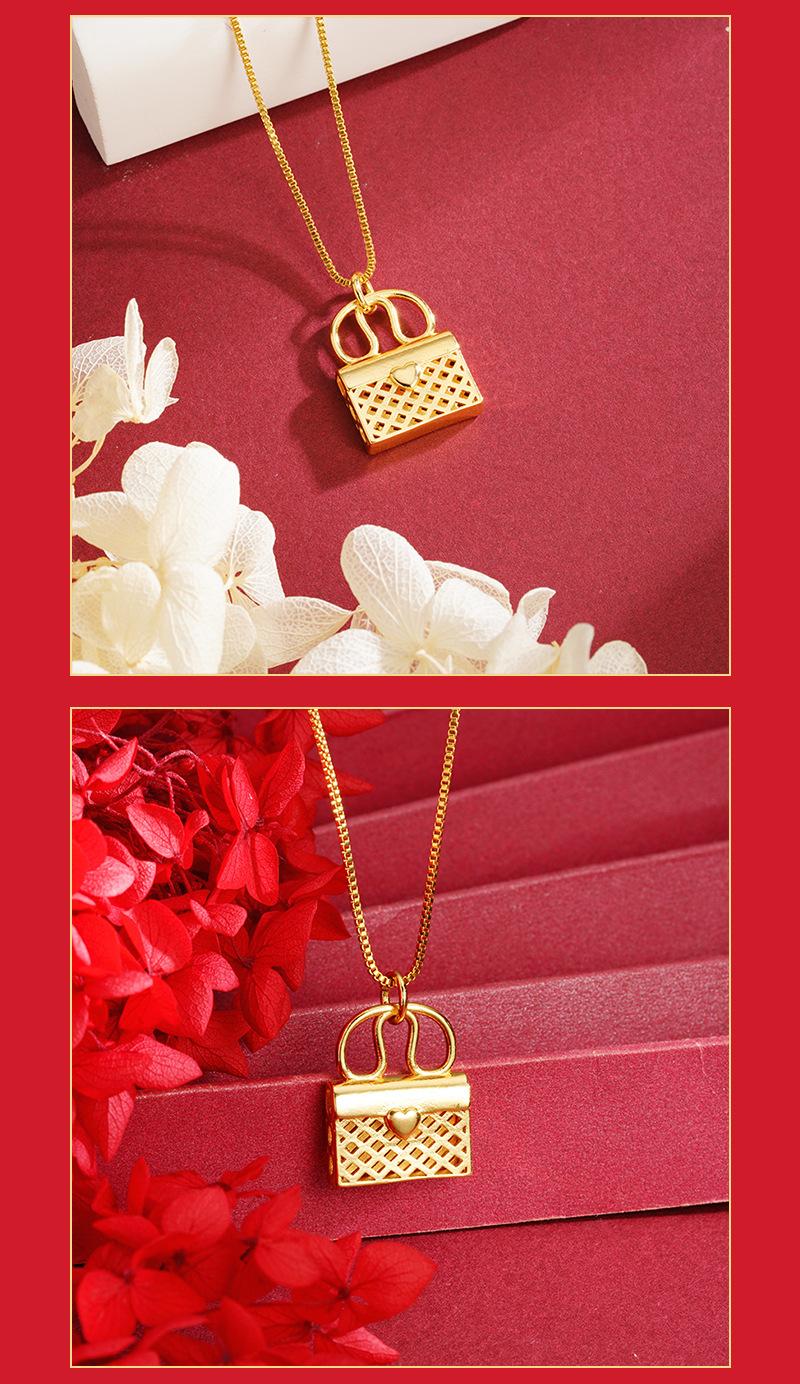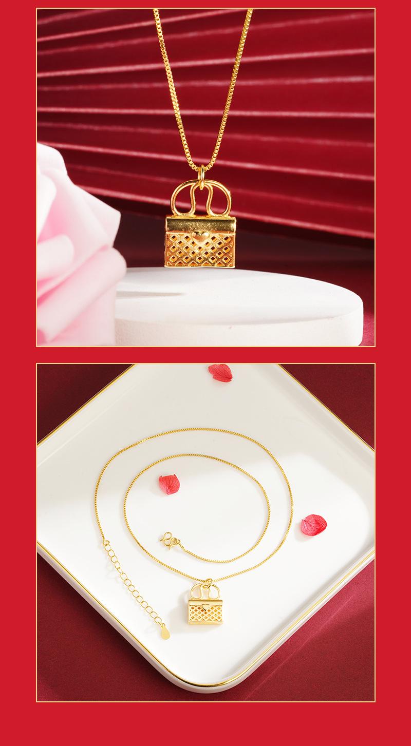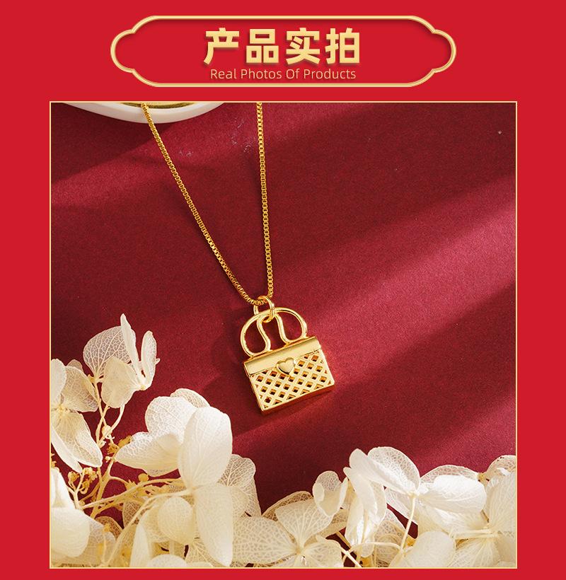 Collar con colgante de bolsa de amor hueco dorado para mujer, joyería ligera de lujo a juego, joyería de gran sentido, accesorios Yiwu al por mayor