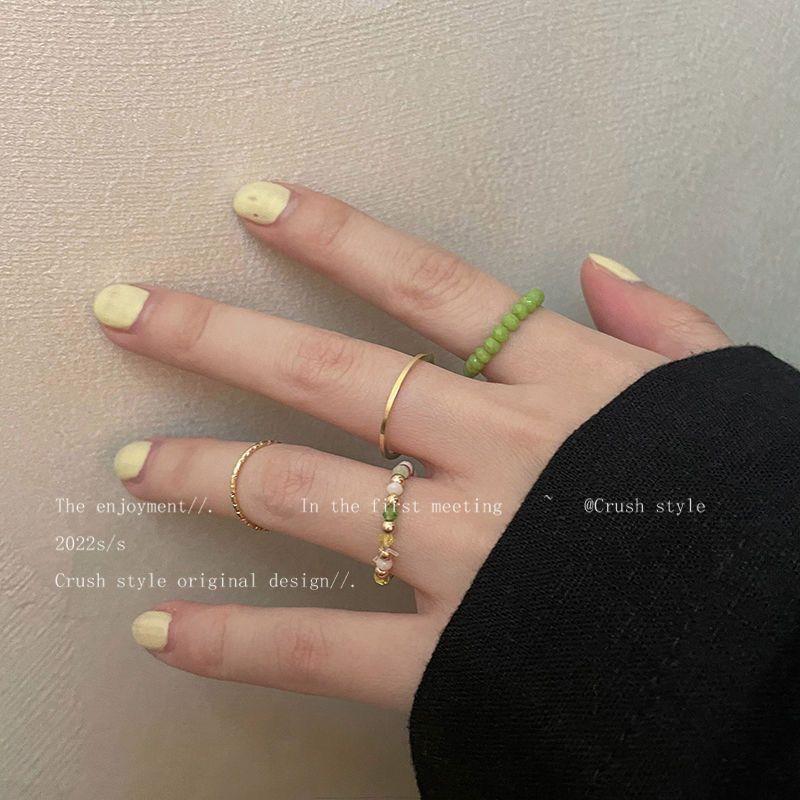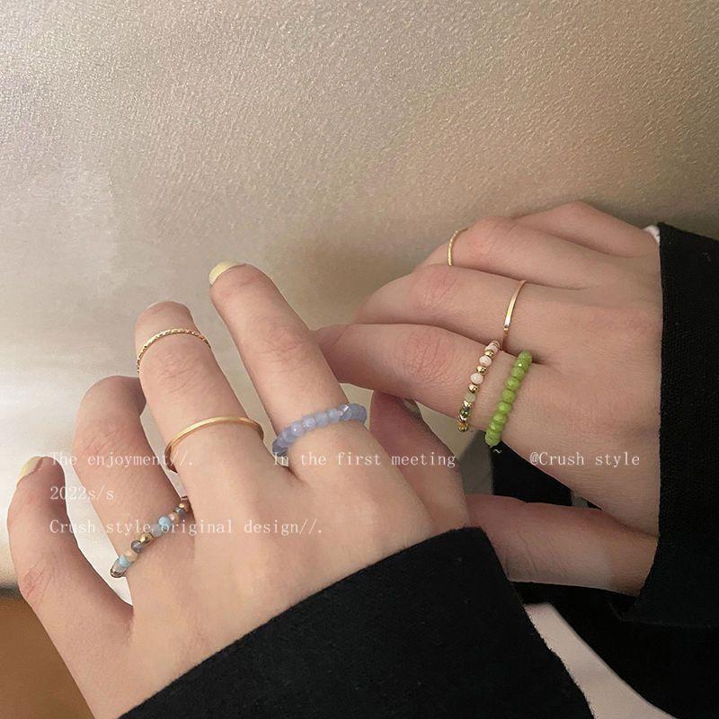 Anillo liso colorido con cuentas, anillo de traje, diseño de nicho ins, sentido simple, anillo para el dedo índice, anillo de cuerda elástica, anillo para mujer