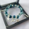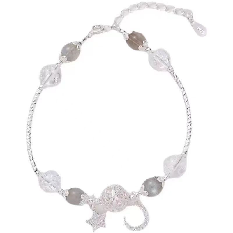 ¡Amor de cabeza de corazón rojo de internet! Librito Rojo con Pulsera Elegante Nueva de Cuentas Hechas a Mano de Luna Estrella de Hielo Gris
